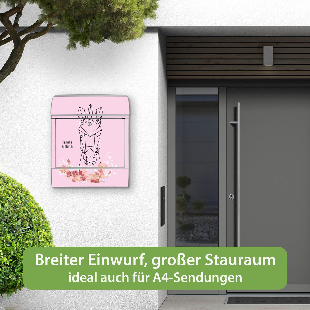 Großer Stahl Briefkasten Motiv Einhorn Poygon