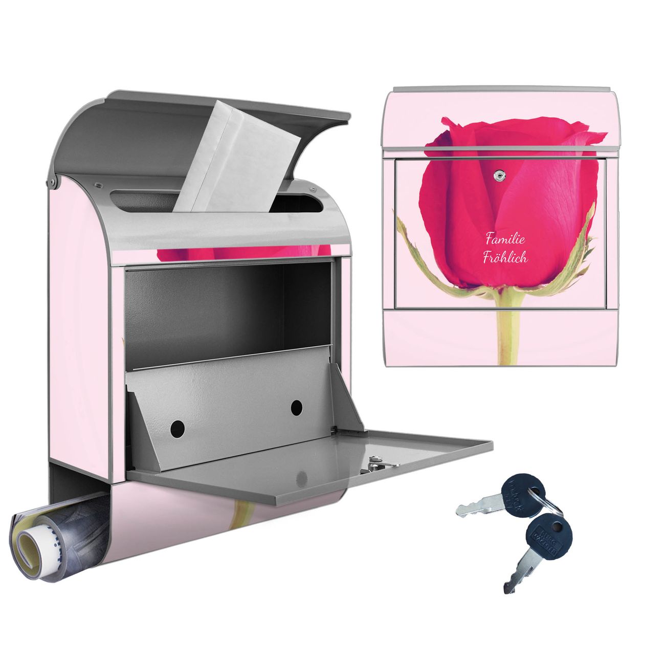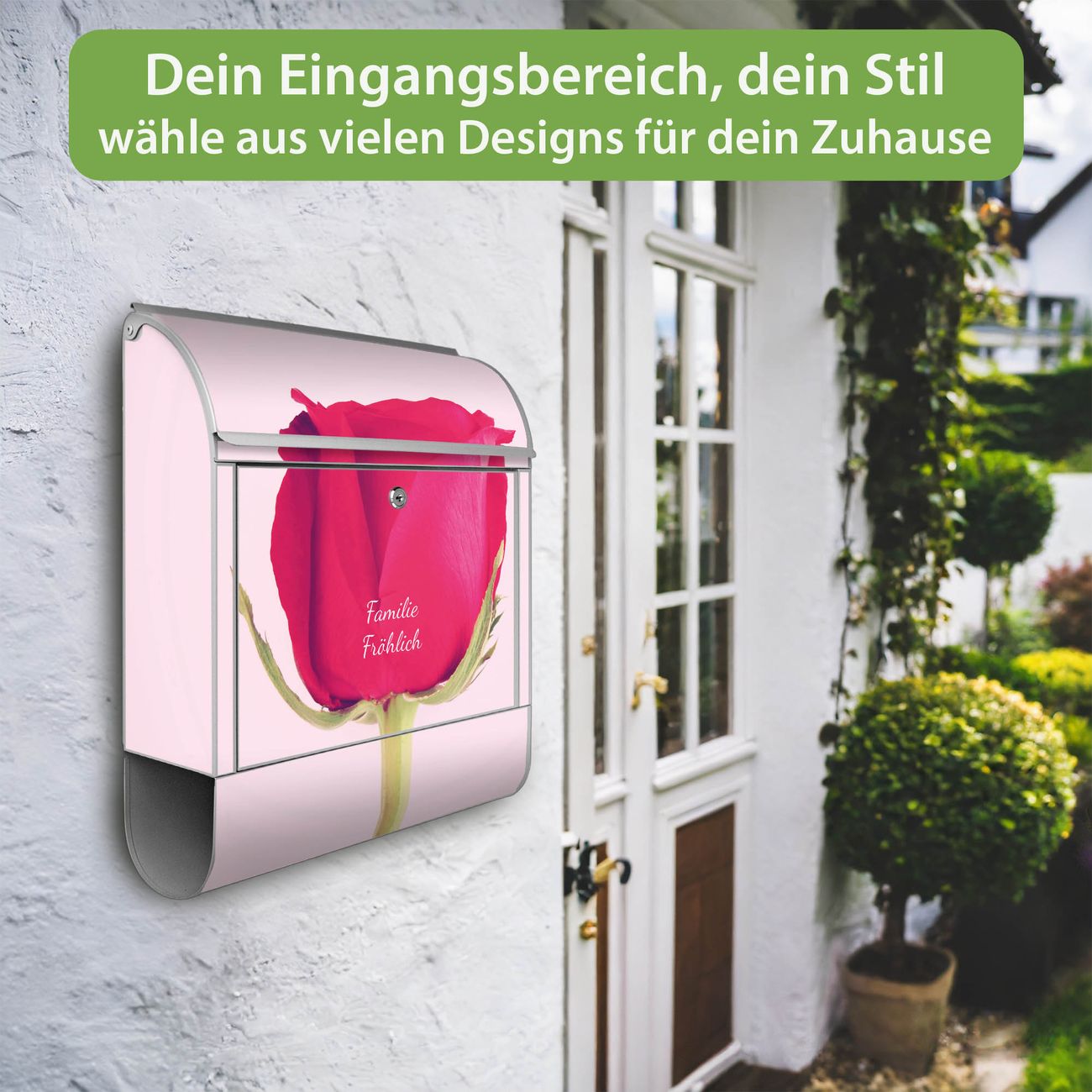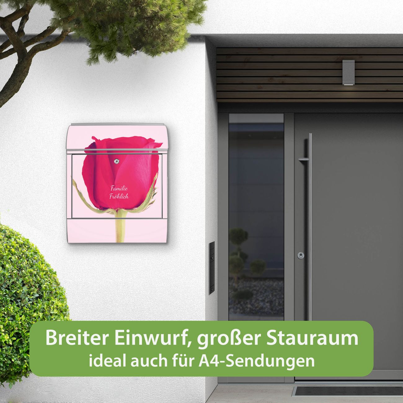 Großer Stahl Briefkasten Motiv Einzelne Rose