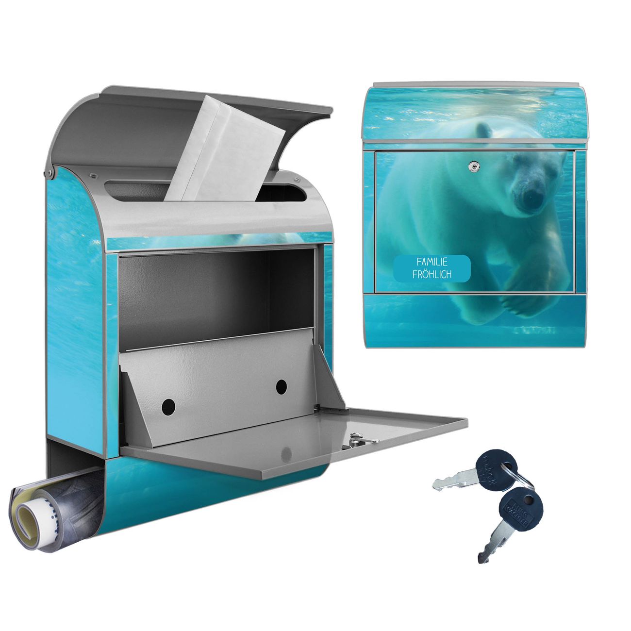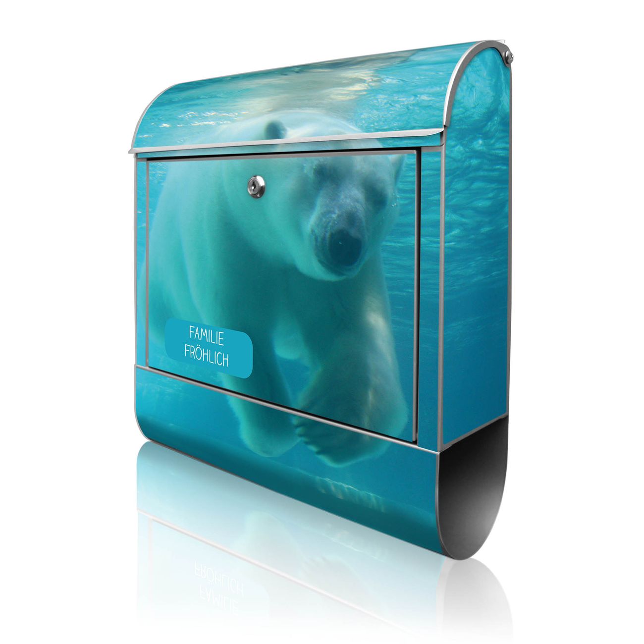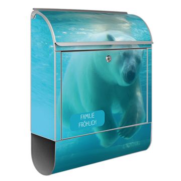 Großer Stahl Briefkasten Motiv Eisbär unter Wasser