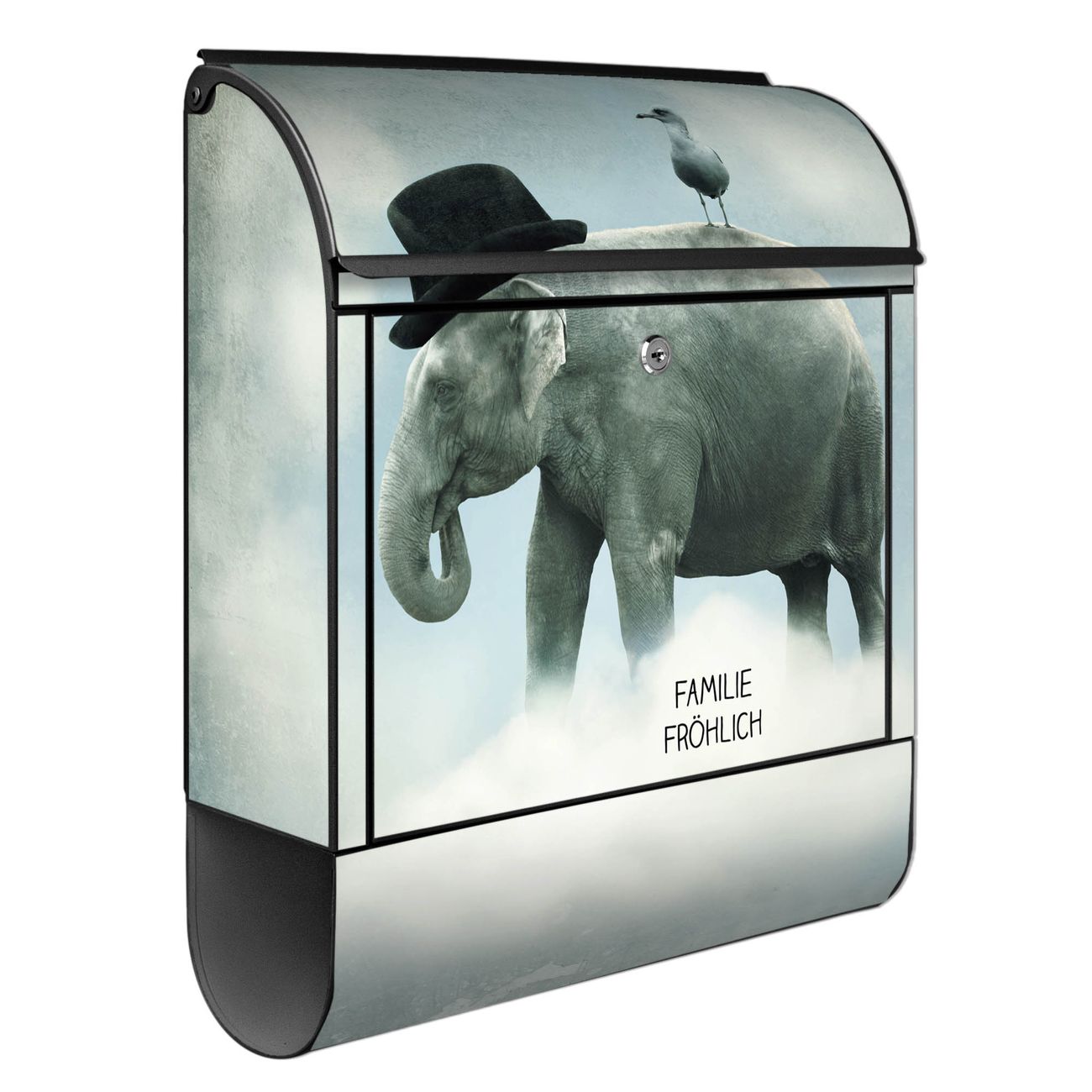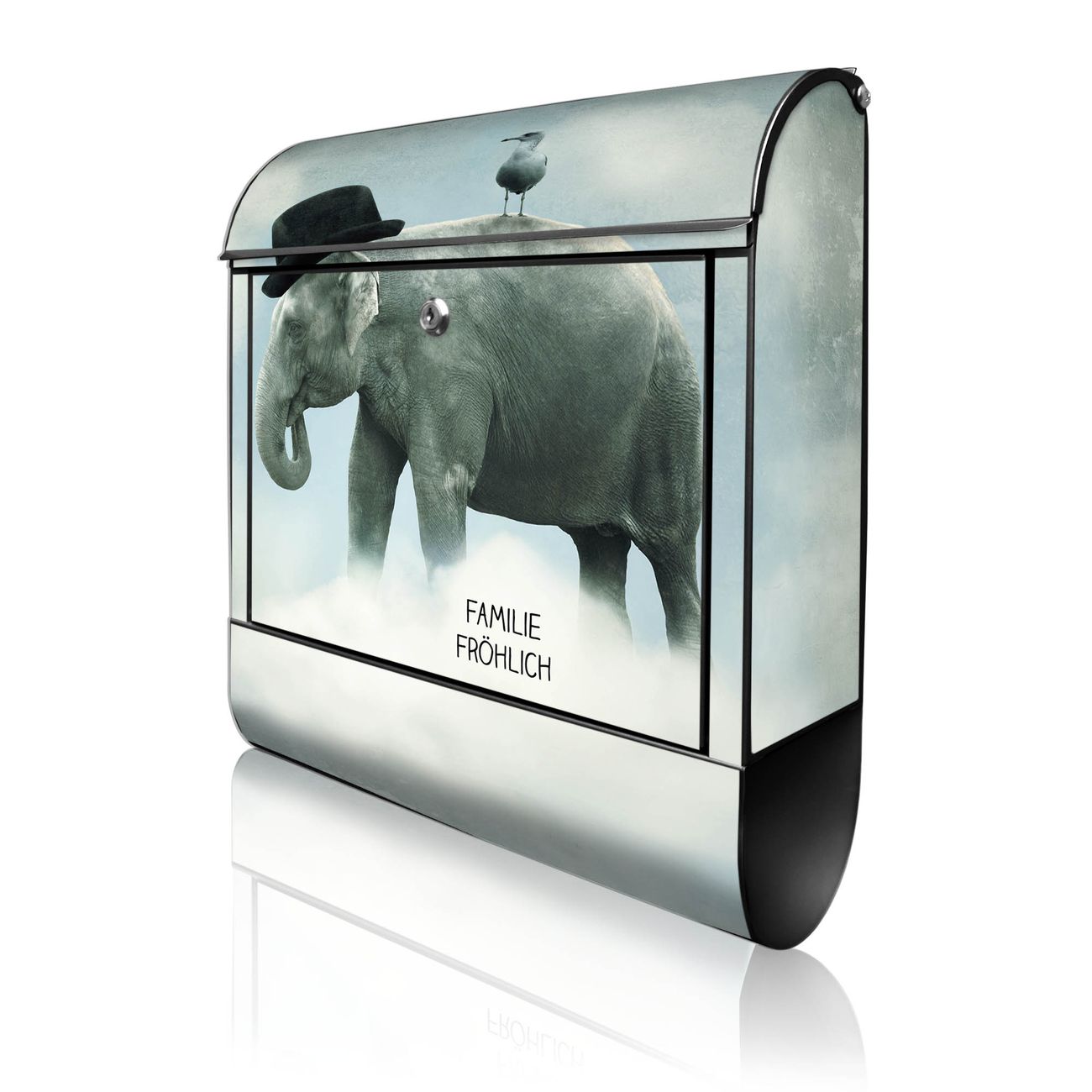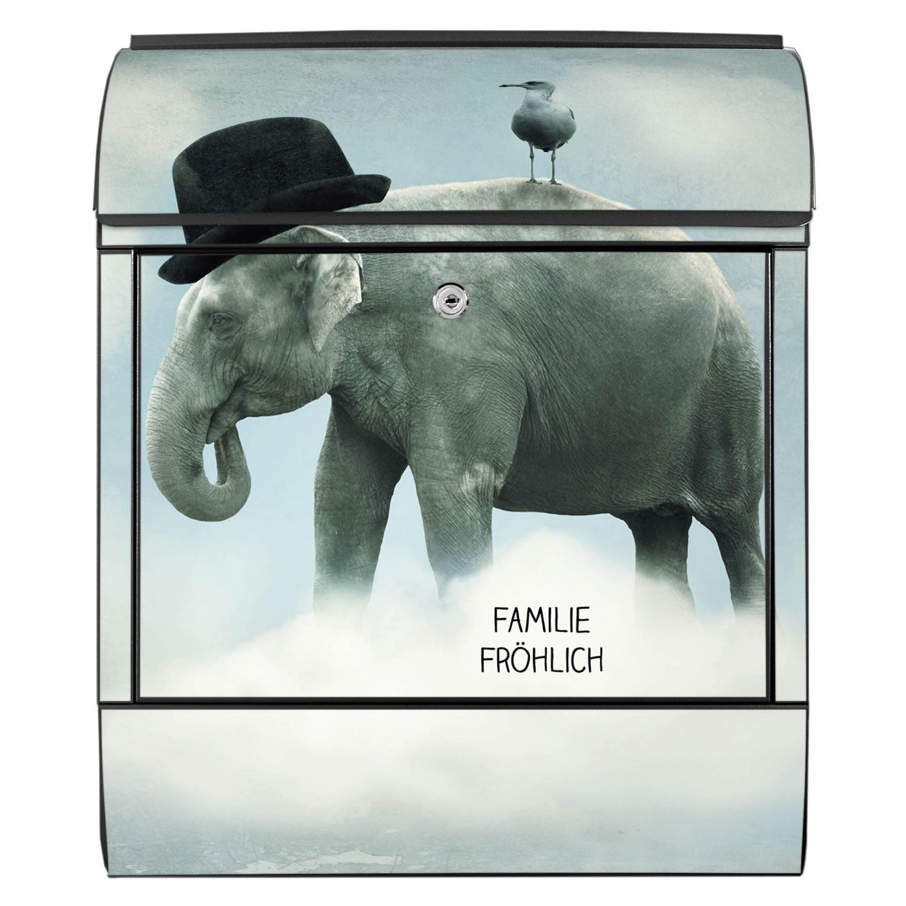 Großer Stahl Briefkasten Motiv Elefant und Möwe