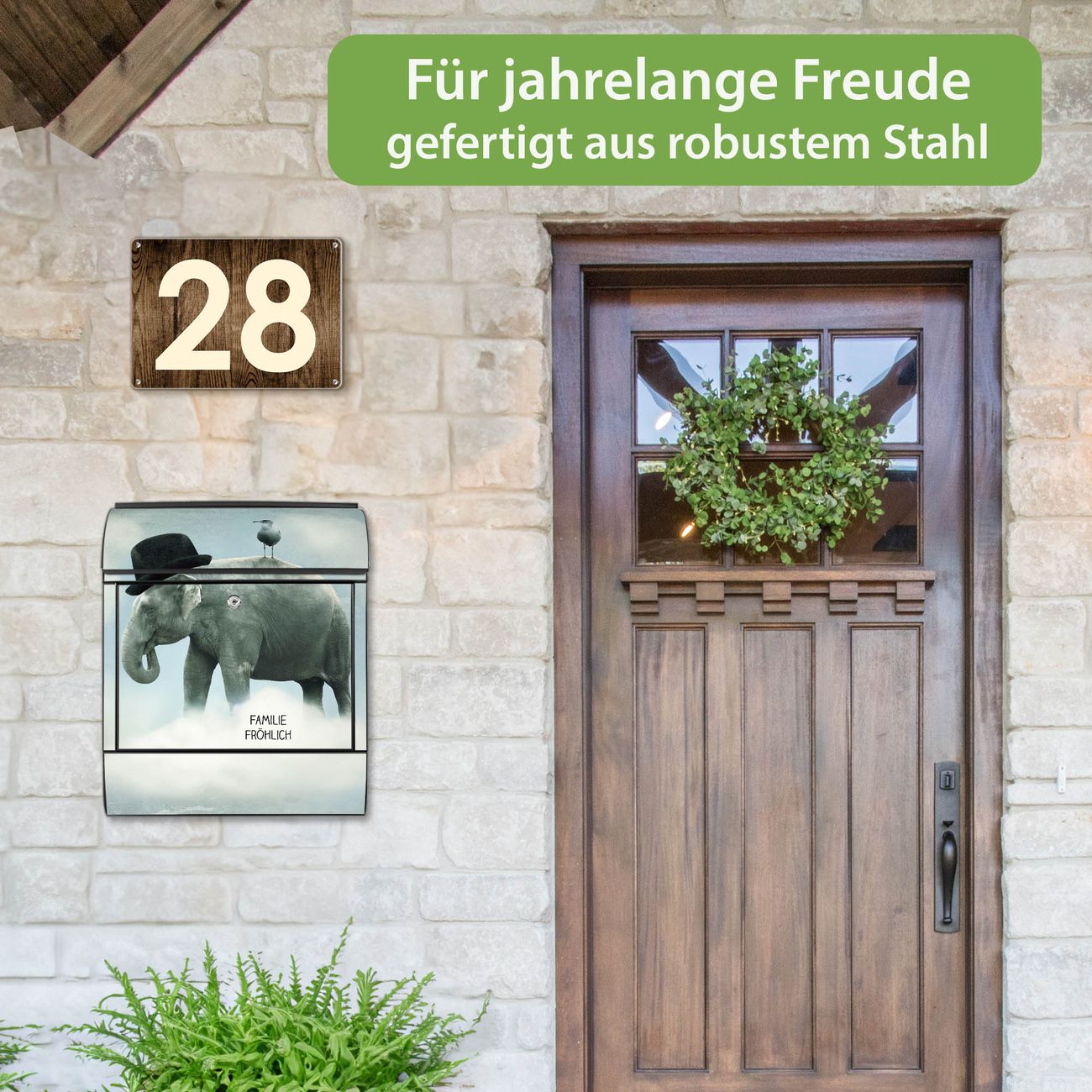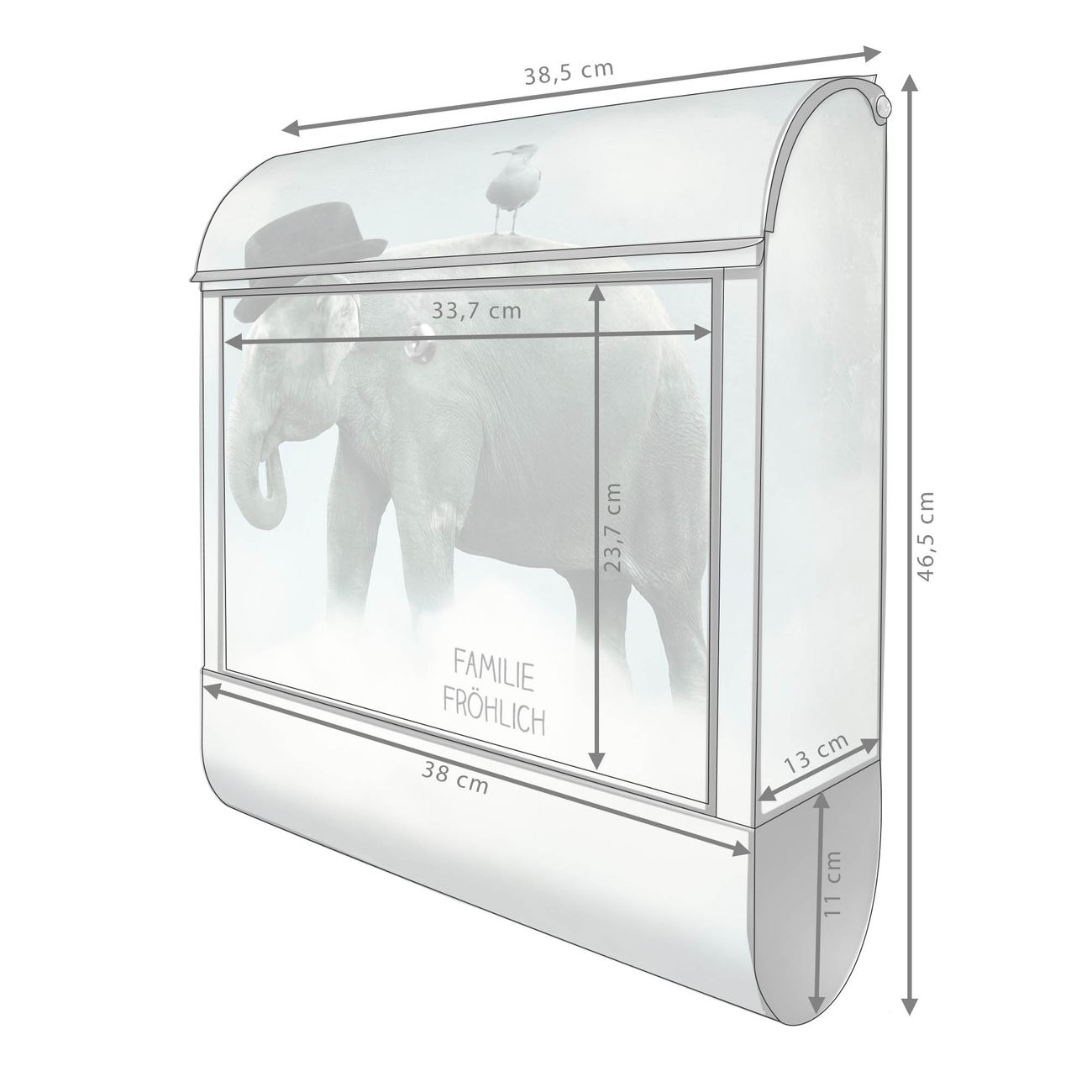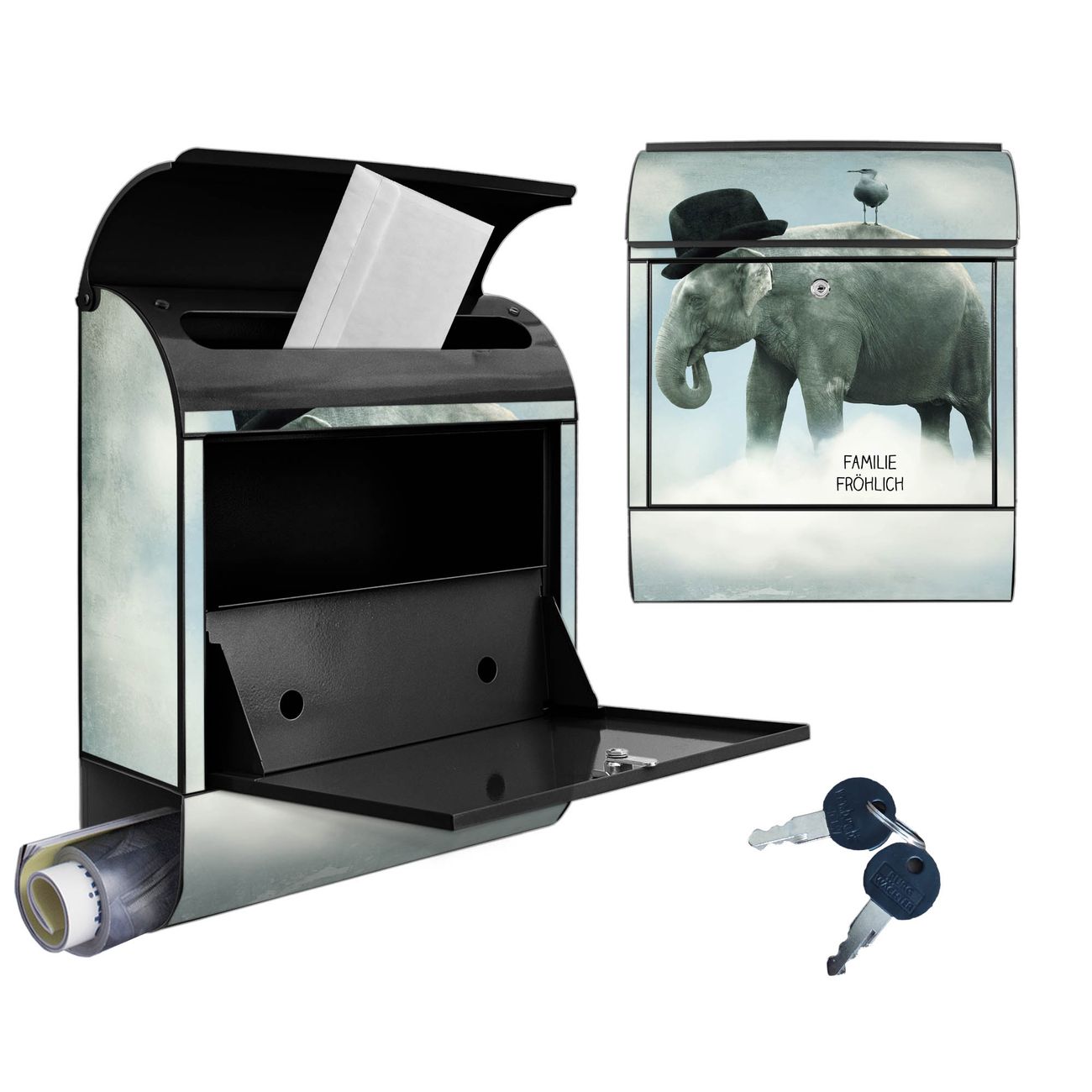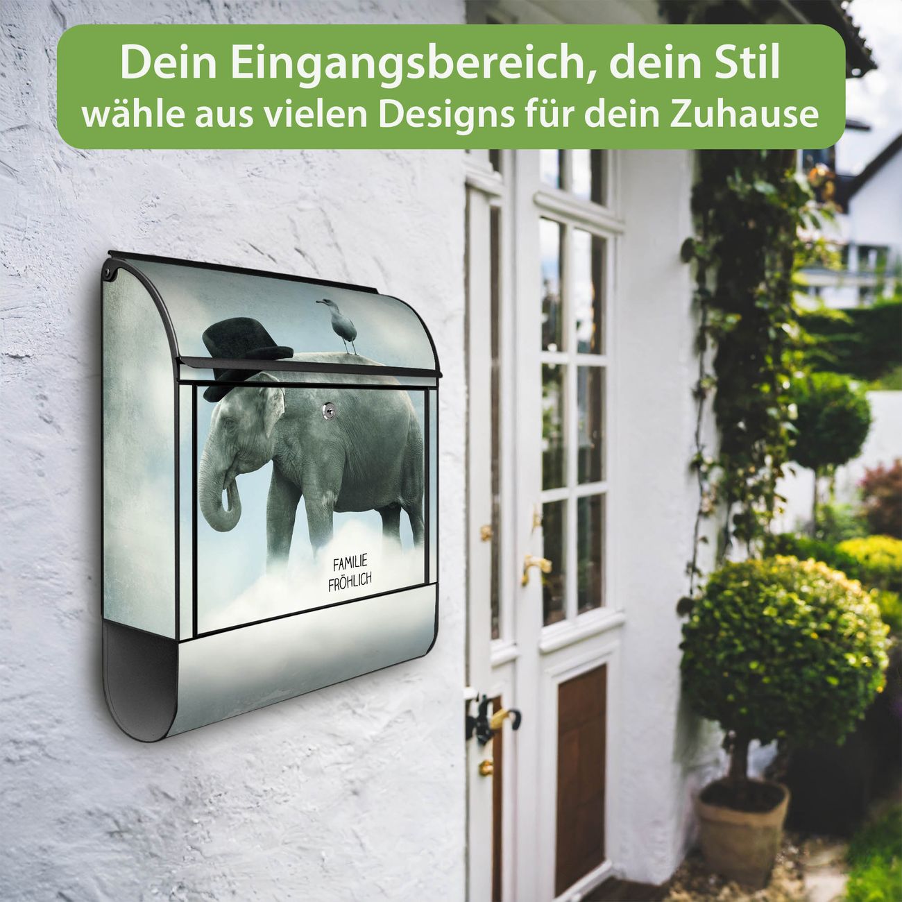 Großer Stahl Briefkasten Motiv Elefant und Möwe