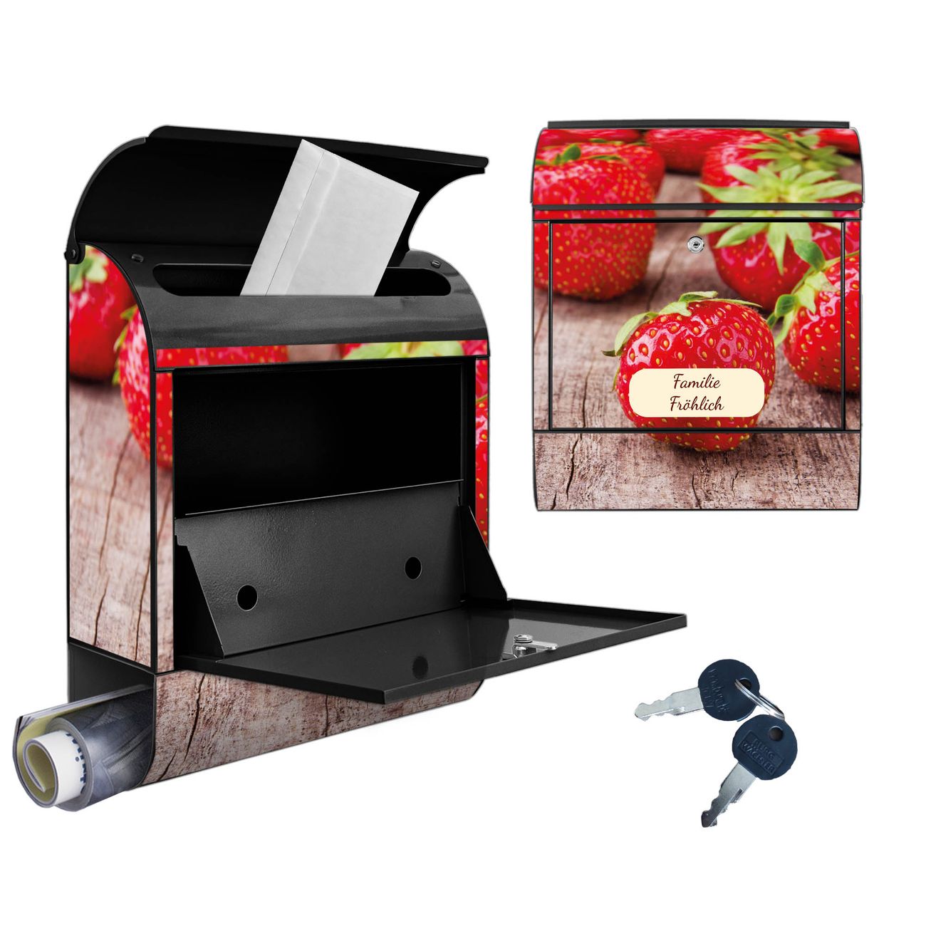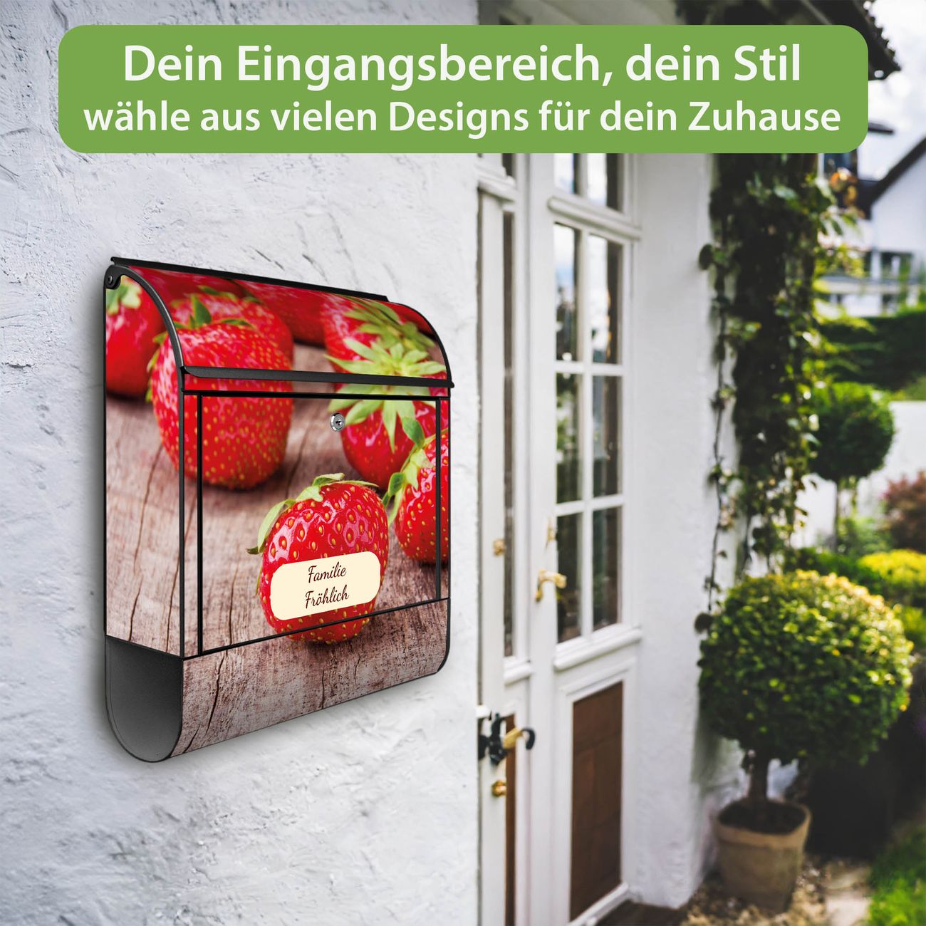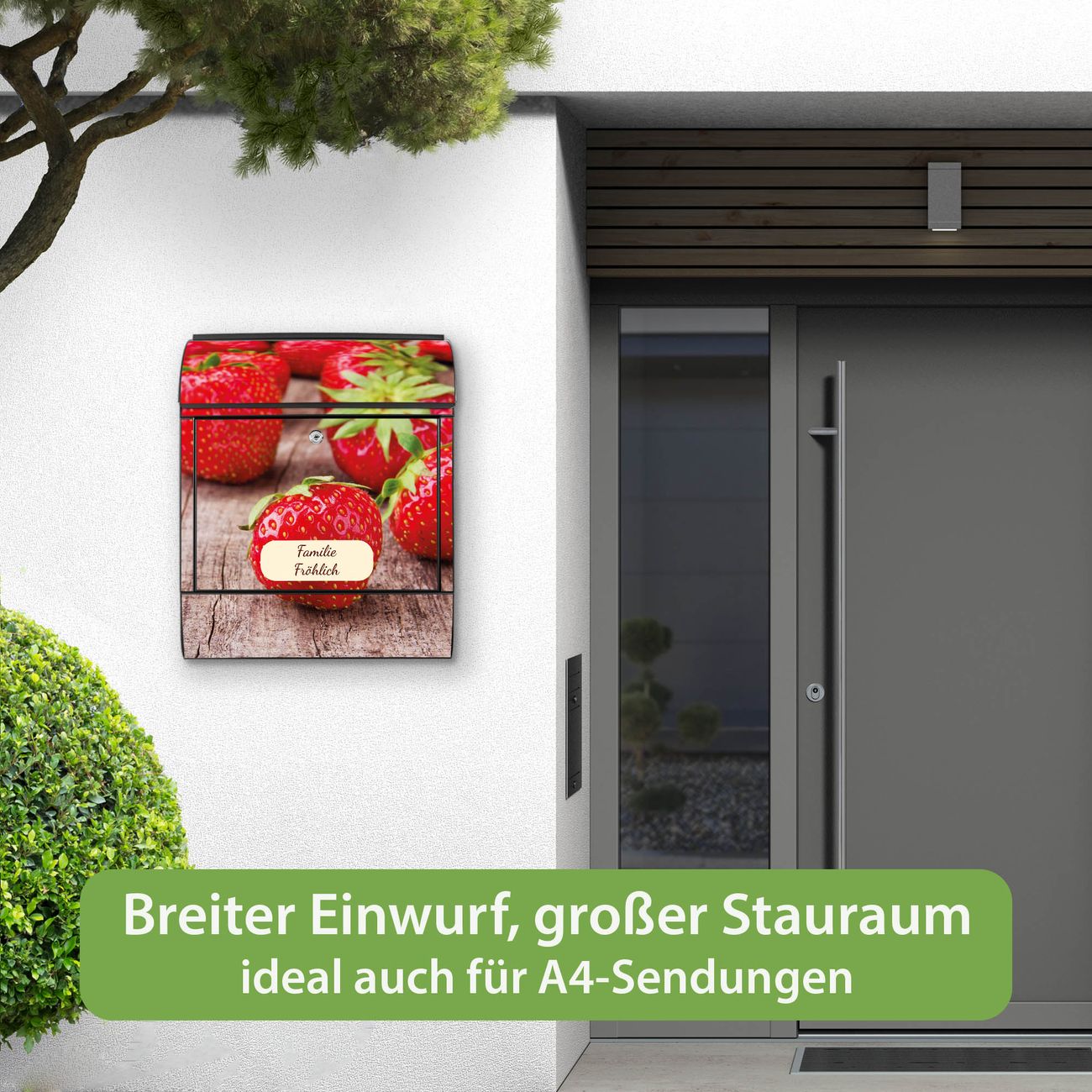 Großer Stahl Briefkasten Motiv Erdbeeren