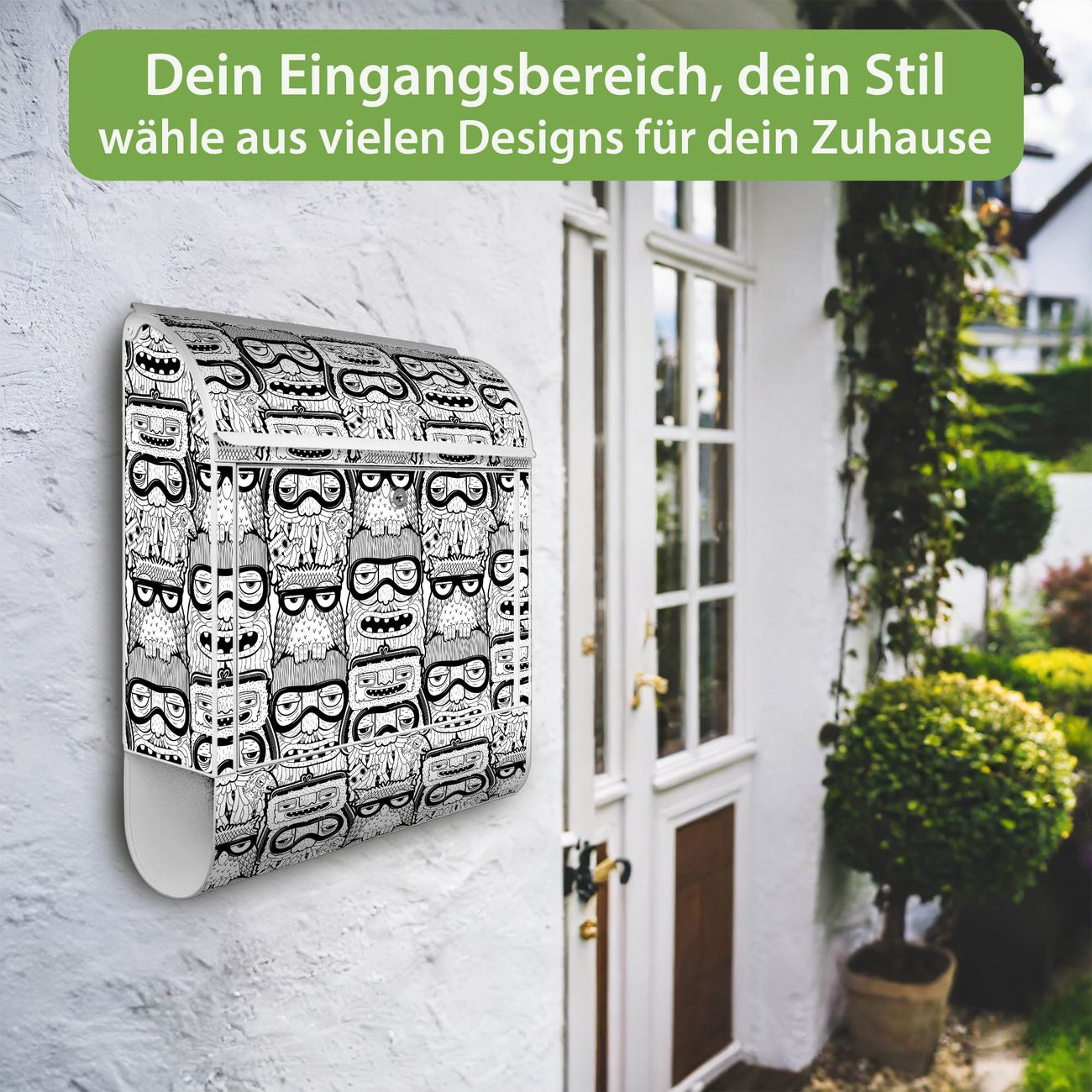 DESIGN: Der Postkasten mit Motiv Motiv Eule und Olaf hat ein sehr ansprechendes und ausgefallenes Design, damit entlocken Sie Ihren Nachbarn und dem Postboten ein Lächeln. Heben Sie Sich von der tristen grauen Masse ab, ohne auf Funktionalität zu verzichten. DETAILS: Der Postkasten besteht aus pulverbeschichtetem Stahl. Er ist 38x46x12,5cm groß. Das Motiv besteht aus einer wetter- und UV-resistenten Folie, die mit einem Schutzlaminat überzogen ist, sodass der Briefkasten zusätzlich vor Kratzern geschützt ist. Der Briefkasten wird mit Montagematerial, zusätzlich zwei Schlüssel sowie einer Bohrschablone geliefert. NUTZEN: Sie können diesen Briefkasten sowohl als Wandbriefkasten montieren oder einen passenden Ständer kaufen und als Standbriefkasten einbetonieren. Die Größe bietet genügend Platz für Sendungen aller Art, der Einwurf fasst auch größere A4 Sendungen. BANJADO: Ihr Briefkasten wird in Sachsen in einer kleinen Manufaktur von Hand veredelt. Die Motivfolie ist lösungsmittelfrei und schutzlaminiert für einen langen Halt. Wir legen großen Wert auf die Verbindung von Funktionalität und Design. Sie erhalten Handarbeit aus Sachsen.