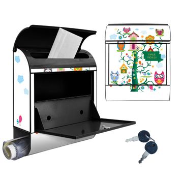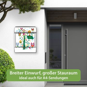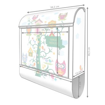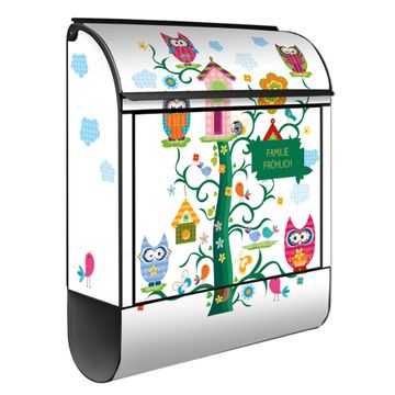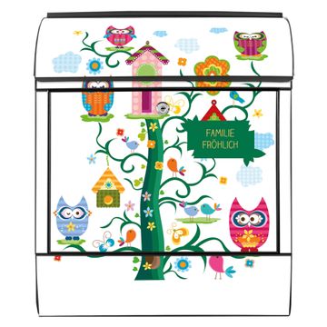 Großer Stahl Briefkasten Motiv Eulenfamilie