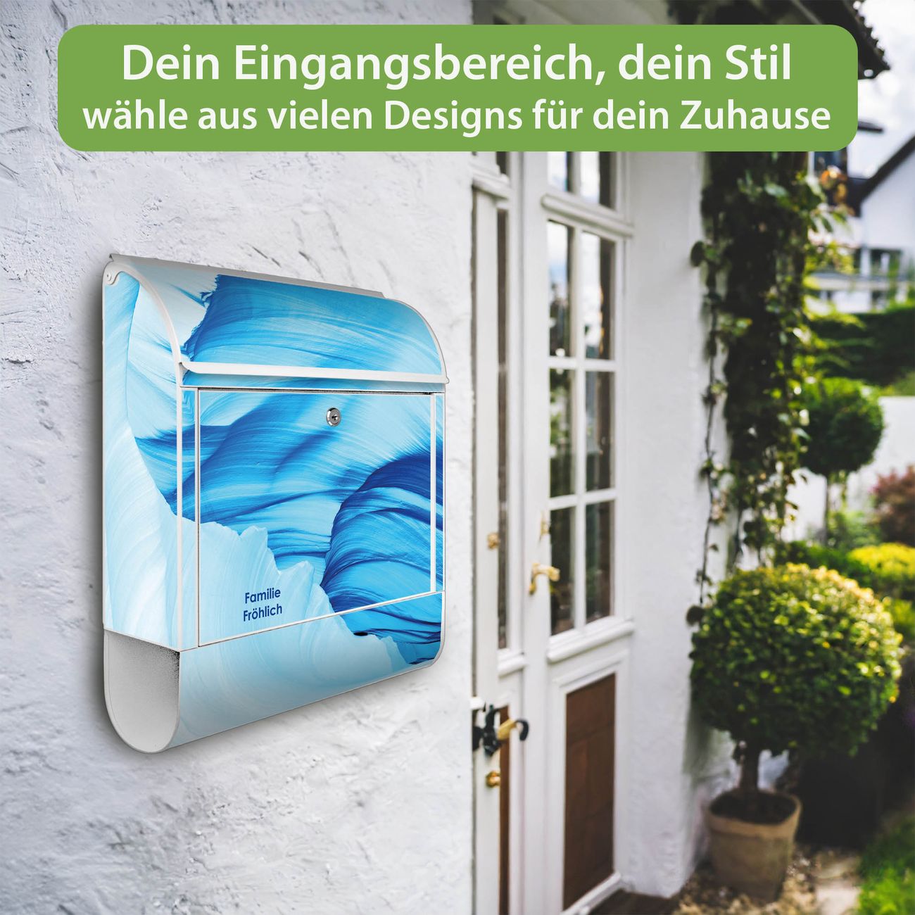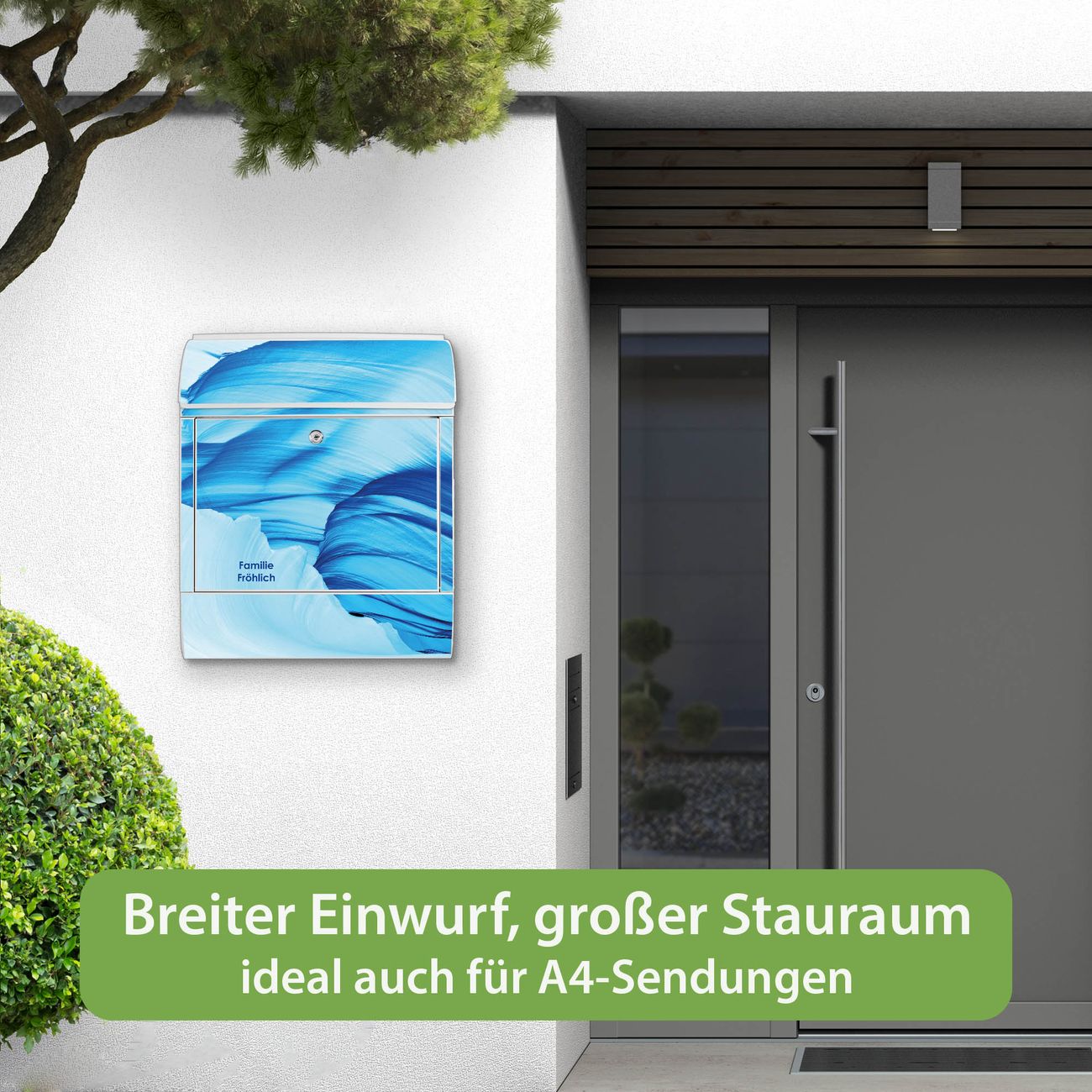 Der Vorschau-Text Familie Fröhlich wird durch Ihren persönlichen Wunschtext ersetzt. Die Schriftart und Farbe bleiben gleich wie in der Vorschau.