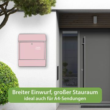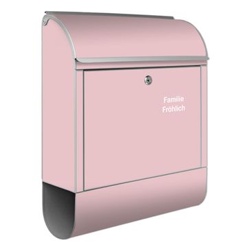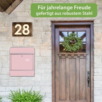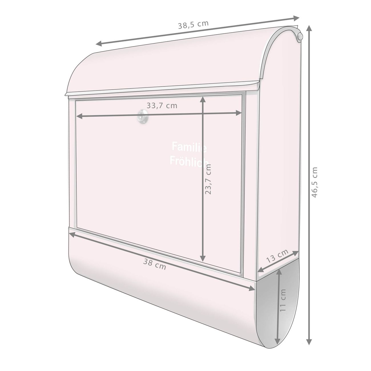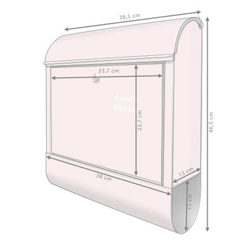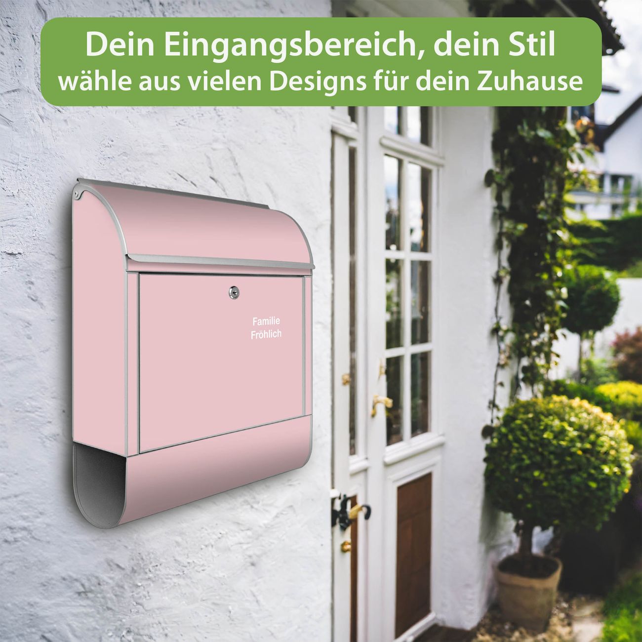 DESIGN: Der Postkasten mit Motiv Farbe Altrosa hat ein sehr ansprechendes und ausgefallenes Design, damit entlocken Sie Ihren Nachbarn und dem Postboten ein Lächeln. Heben Sie Sich von der tristen grauen Masse ab, ohne auf Funktionalität zu verzichten. DETAILS: Der Postkasten besteht aus pulverbeschichtetem Stahl. Er ist 38x46x12,5cm groß. Das Motiv besteht aus einer wetter- und UV-resistenten Folie, die mit einem Schutzlaminat überzogen ist, sodass der Briefkasten zusätzlich vor Kratzern geschützt ist. Der Briefkasten wird mit Montagematerial, zusätzlich zwei Schlüssel sowie einer Bohrschablone geliefert. NUTZEN: Sie können diesen Briefkasten sowohl als Wandbriefkasten montieren oder einen passenden Ständer kaufen und als Standbriefkasten einbetonieren. Die Größe bietet genügend Platz für Sendungen aller Art, der Einwurf fasst auch größere A4 Sendungen. BANJADO: Ihr Briefkasten wird in Sachsen in einer kleinen Manufaktur von Hand veredelt. Die Motivfolie ist lösungsmittelfrei und schutzlaminiert für einen langen Halt. Wir legen großen Wert auf die Verbindung von Funktionalität und Design. Sie erhalten Handarbeit aus Sachsen.