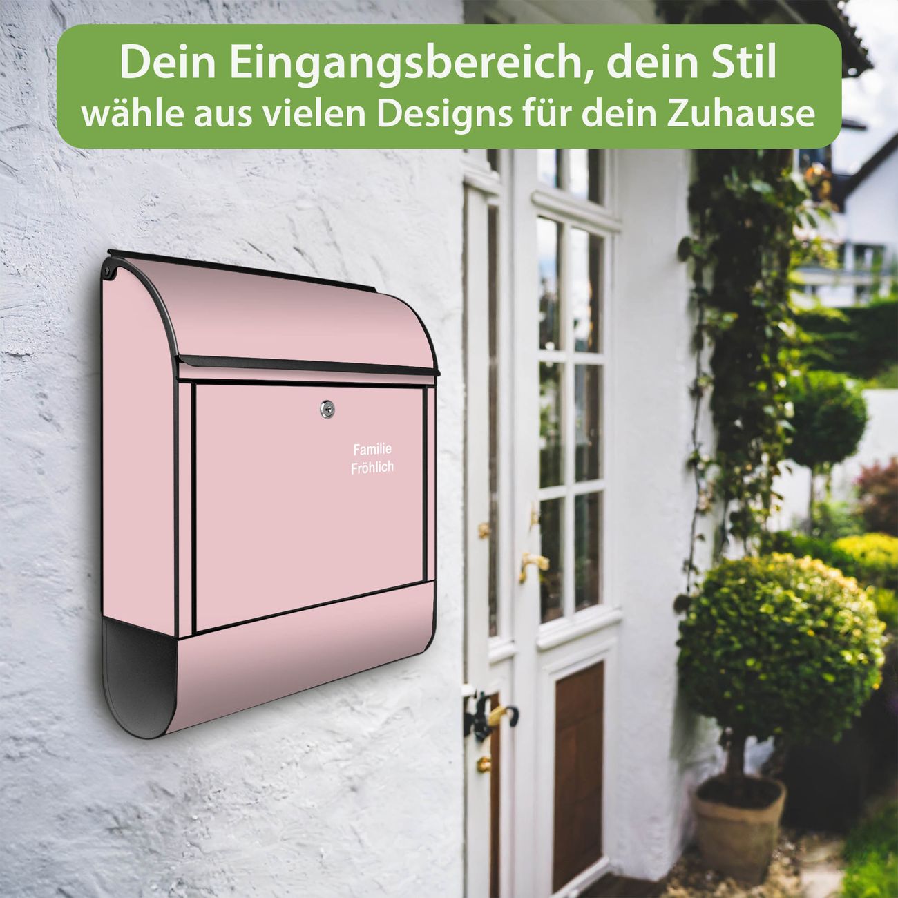 DESIGN: Der Postkasten mit Motiv Farbe Altrosa hat ein sehr ansprechendes und ausgefallenes Design, damit entlocken Sie Ihren Nachbarn und dem Postboten ein Lächeln. Heben Sie Sich von der tristen grauen Masse ab, ohne auf Funktionalität zu verzichten. DETAILS: Der Postkasten besteht aus pulverbeschichtetem Stahl. Er ist 38x46x12,5cm groß. Das Motiv besteht aus einer wetter- und UV-resistenten Folie, die mit einem Schutzlaminat überzogen ist, sodass der Briefkasten zusätzlich vor Kratzern geschützt ist. Der Briefkasten wird mit Montagematerial, zusätzlich zwei Schlüssel sowie einer Bohrschablone geliefert. NUTZEN: Sie können diesen Briefkasten sowohl als Wandbriefkasten montieren oder einen passenden Ständer kaufen und als Standbriefkasten einbetonieren. Die Größe bietet genügend Platz für Sendungen aller Art, der Einwurf fasst auch größere A4 Sendungen. BANJADO: Ihr Briefkasten wird in Sachsen in einer kleinen Manufaktur von Hand veredelt. Die Motivfolie ist lösungsmittelfrei und schutzlaminiert für einen langen Halt. Wir legen großen Wert auf die Verbindung von Funktionalität und Design. Sie erhalten Handarbeit aus Sachsen.