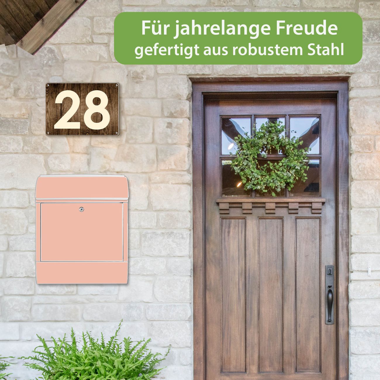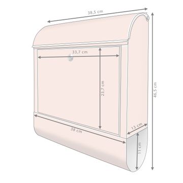 DESIGN: Der Postkasten mit Motiv Farbe Aprikot hat ein sehr ansprechendes und ausgefallenes Design, damit entlocken Sie Ihren Nachbarn und dem Postboten ein Lächeln. Heben Sie Sich von der tristen grauen Masse ab, ohne auf Funktionalität zu verzichten. DETAILS: Der Postkasten besteht aus pulverbeschichtetem Stahl. Er ist 38x46x12,5cm groß. Das Motiv besteht aus einer wetter- und UV-resistenten Folie, die mit einem Schutzlaminat überzogen ist, sodass der Briefkasten zusätzlich vor Kratzern geschützt ist. Der Briefkasten wird mit Montagematerial, zusätzlich zwei Schlüssel sowie einer Bohrschablone geliefert. NUTZEN: Sie können diesen Briefkasten sowohl als Wandbriefkasten montieren oder einen passenden Ständer kaufen und als Standbriefkasten einbetonieren. Die Größe bietet genügend Platz für Sendungen aller Art, der Einwurf fasst auch größere A4 Sendungen. BANJADO: Ihr Briefkasten wird in Sachsen in einer kleinen Manufaktur von Hand veredelt. Die Motivfolie ist lösungsmittelfrei und schutzlaminiert für einen langen Halt. Wir legen großen Wert auf die Verbindung von Funktionalität und Design. Sie erhalten Handarbeit aus Sachsen.