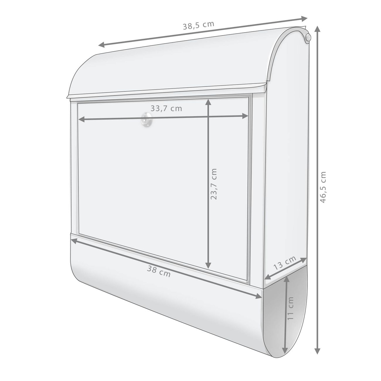 DESIGN: Der Postkasten mit Motiv Farbe Eisblau hat ein sehr ansprechendes und ausgefallenes Design, damit entlocken Sie Ihren Nachbarn und dem Postboten ein Lächeln. Heben Sie Sich von der tristen grauen Masse ab, ohne auf Funktionalität zu verzichten. DETAILS: Der Postkasten besteht aus pulverbeschichtetem Stahl. Er ist 38x46x12,5cm groß. Das Motiv besteht aus einer wetter- und UV-resistenten Folie, die mit einem Schutzlaminat überzogen ist, sodass der Briefkasten zusätzlich vor Kratzern geschützt ist. Der Briefkasten wird mit Montagematerial, zusätzlich zwei Schlüssel sowie einer Bohrschablone geliefert. NUTZEN: Sie können diesen Briefkasten sowohl als Wandbriefkasten montieren oder einen passenden Ständer kaufen und als Standbriefkasten einbetonieren. Die Größe bietet genügend Platz für Sendungen aller Art, der Einwurf fasst auch größere A4 Sendungen. BANJADO: Ihr Briefkasten wird in Sachsen in einer kleinen Manufaktur von Hand veredelt. Die Motivfolie ist lösungsmittelfrei und schutzlaminiert für einen langen Halt. Wir legen großen Wert auf die Verbindung von Funktionalität und Design. Sie erhalten Handarbeit aus Sachsen.