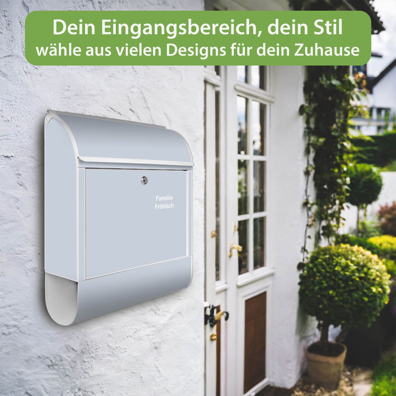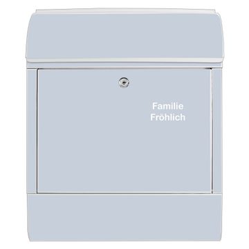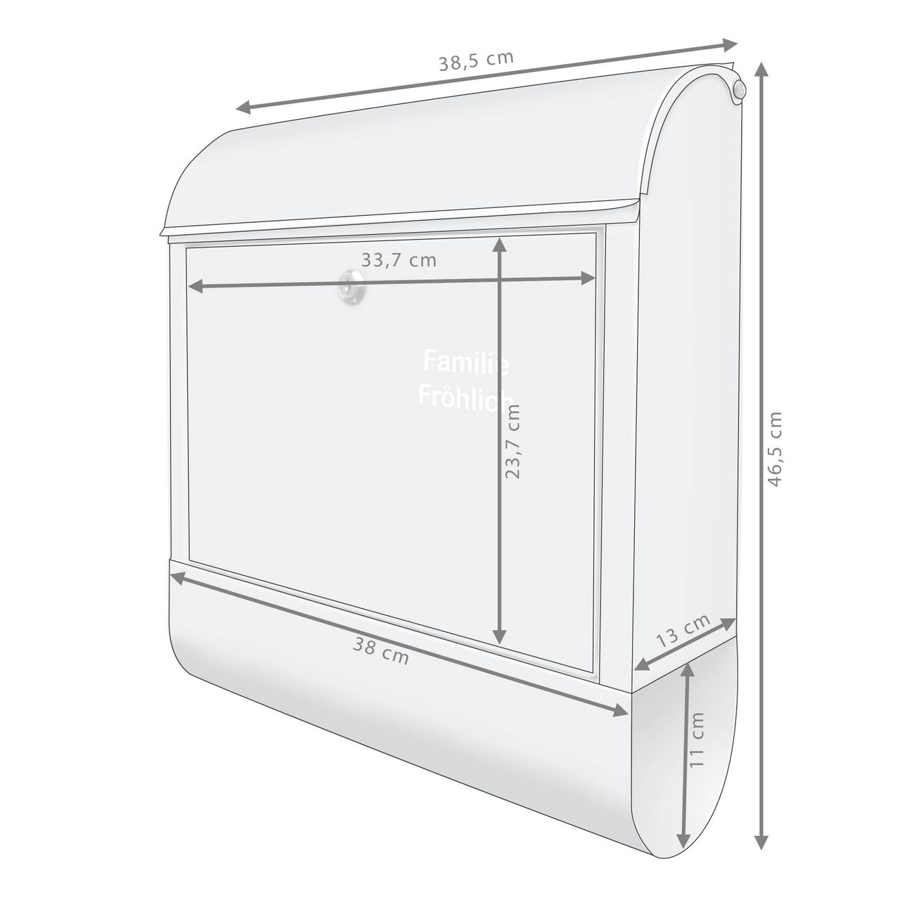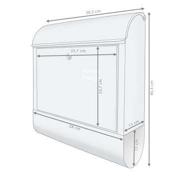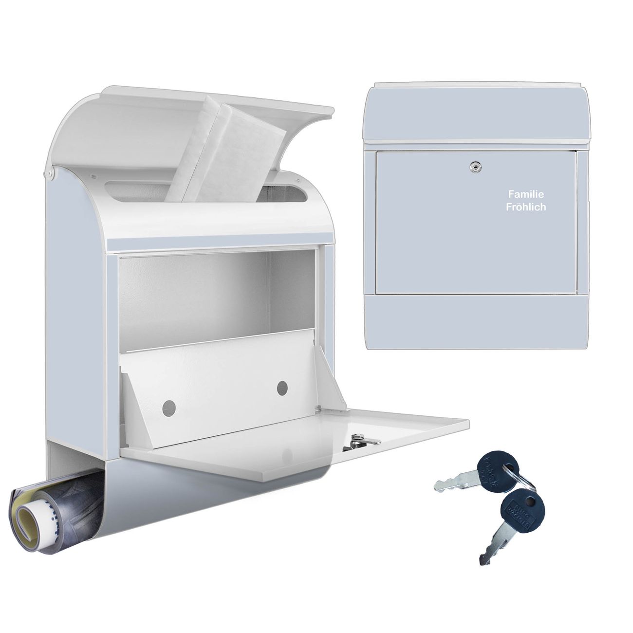 DESIGN: Der Postkasten mit Motiv Farbe Eisblau hat ein sehr ansprechendes und ausgefallenes Design, damit entlocken Sie Ihren Nachbarn und dem Postboten ein Lächeln. Heben Sie Sich von der tristen grauen Masse ab, ohne auf Funktionalität zu verzichten. DETAILS: Der Postkasten besteht aus pulverbeschichtetem Stahl. Er ist 38x46x12,5cm groß. Das Motiv besteht aus einer wetter- und UV-resistenten Folie, die mit einem Schutzlaminat überzogen ist, sodass der Briefkasten zusätzlich vor Kratzern geschützt ist. Der Briefkasten wird mit Montagematerial, zusätzlich zwei Schlüssel sowie einer Bohrschablone geliefert. NUTZEN: Sie können diesen Briefkasten sowohl als Wandbriefkasten montieren oder einen passenden Ständer kaufen und als Standbriefkasten einbetonieren. Die Größe bietet genügend Platz für Sendungen aller Art, der Einwurf fasst auch größere A4 Sendungen. BANJADO: Ihr Briefkasten wird in Sachsen in einer kleinen Manufaktur von Hand veredelt. Die Motivfolie ist lösungsmittelfrei und schutzlaminiert für einen langen Halt. Wir legen großen Wert auf die Verbindung von Funktionalität und Design. Sie erhalten Handarbeit aus Sachsen.