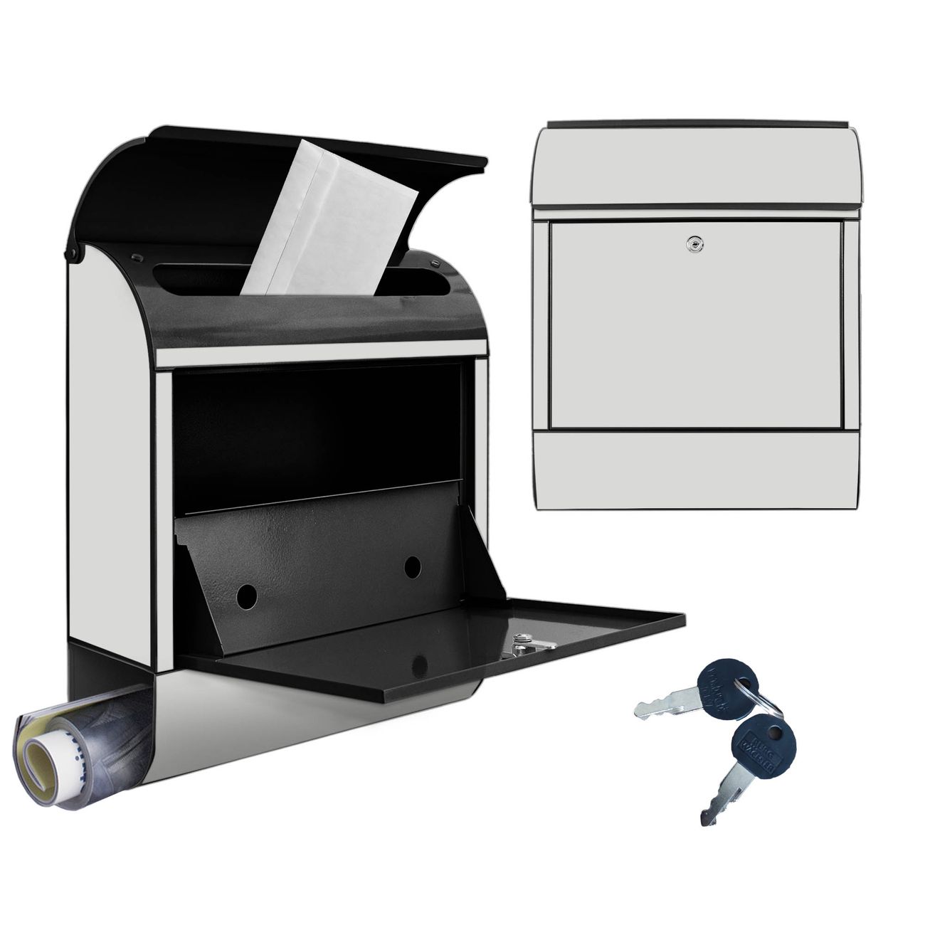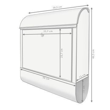 DESIGN: Der Postkasten mit Motiv Farbe Nebelgrau hat ein sehr ansprechendes und ausgefallenes Design, damit entlocken Sie Ihren Nachbarn und dem Postboten ein Lächeln. Heben Sie Sich von der tristen grauen Masse ab, ohne auf Funktionalität zu verzichten. DETAILS: Der Postkasten besteht aus pulverbeschichtetem Stahl. Er ist 38x46x12,5cm groß. Das Motiv besteht aus einer wetter- und UV-resistenten Folie, die mit einem Schutzlaminat überzogen ist, sodass der Briefkasten zusätzlich vor Kratzern geschützt ist. Der Briefkasten wird mit Montagematerial, zusätzlich zwei Schlüssel sowie einer Bohrschablone geliefert. NUTZEN: Sie können diesen Briefkasten sowohl als Wandbriefkasten montieren oder einen passenden Ständer kaufen und als Standbriefkasten einbetonieren. Die Größe bietet genügend Platz für Sendungen aller Art, der Einwurf fasst auch größere A4 Sendungen. BANJADO: Ihr Briefkasten wird in Sachsen in einer kleinen Manufaktur von Hand veredelt. Die Motivfolie ist lösungsmittelfrei und schutzlaminiert für einen langen Halt. Wir legen großen Wert auf die Verbindung von Funktionalität und Design. Sie erhalten Handarbeit aus Sachsen.
