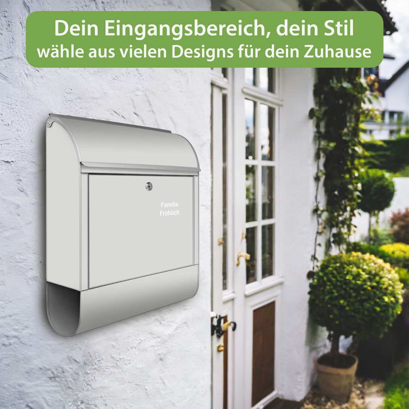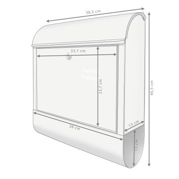 DESIGN: Der Postkasten mit Motiv Farbe Nebelgrau hat ein sehr ansprechendes und ausgefallenes Design, damit entlocken Sie Ihren Nachbarn und dem Postboten ein Lächeln. Heben Sie Sich von der tristen grauen Masse ab, ohne auf Funktionalität zu verzichten. DETAILS: Der Postkasten besteht aus pulverbeschichtetem Stahl. Er ist 38x46x12,5cm groß. Das Motiv besteht aus einer wetter- und UV-resistenten Folie, die mit einem Schutzlaminat überzogen ist, sodass der Briefkasten zusätzlich vor Kratzern geschützt ist. Der Briefkasten wird mit Montagematerial, zusätzlich zwei Schlüssel sowie einer Bohrschablone geliefert. NUTZEN: Sie können diesen Briefkasten sowohl als Wandbriefkasten montieren oder einen passenden Ständer kaufen und als Standbriefkasten einbetonieren. Die Größe bietet genügend Platz für Sendungen aller Art, der Einwurf fasst auch größere A4 Sendungen. BANJADO: Ihr Briefkasten wird in Sachsen in einer kleinen Manufaktur von Hand veredelt. Die Motivfolie ist lösungsmittelfrei und schutzlaminiert für einen langen Halt. Wir legen großen Wert auf die Verbindung von Funktionalität und Design. Sie erhalten Handarbeit aus Sachsen.