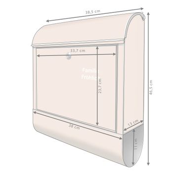 DESIGN: Der Postkasten mit Motiv Farbe Sandstein hat ein sehr ansprechendes und ausgefallenes Design, damit entlocken Sie Ihren Nachbarn und dem Postboten ein Lächeln. Heben Sie Sich von der tristen grauen Masse ab, ohne auf Funktionalität zu verzichten. DETAILS: Der Postkasten besteht aus pulverbeschichtetem Stahl. Er ist 38x46x12,5cm groß. Das Motiv besteht aus einer wetter- und UV-resistenten Folie, die mit einem Schutzlaminat überzogen ist, sodass der Briefkasten zusätzlich vor Kratzern geschützt ist. Der Briefkasten wird mit Montagematerial, zusätzlich zwei Schlüssel sowie einer Bohrschablone geliefert. NUTZEN: Sie können diesen Briefkasten sowohl als Wandbriefkasten montieren oder einen passenden Ständer kaufen und als Standbriefkasten einbetonieren. Die Größe bietet genügend Platz für Sendungen aller Art, der Einwurf fasst auch größere A4 Sendungen. BANJADO: Ihr Briefkasten wird in Sachsen in einer kleinen Manufaktur von Hand veredelt. Die Motivfolie ist lösungsmittelfrei und schutzlaminiert für einen langen Halt. Wir legen großen Wert auf die Verbindung von Funktionalität und Design. Sie erhalten Handarbeit aus Sachsen.