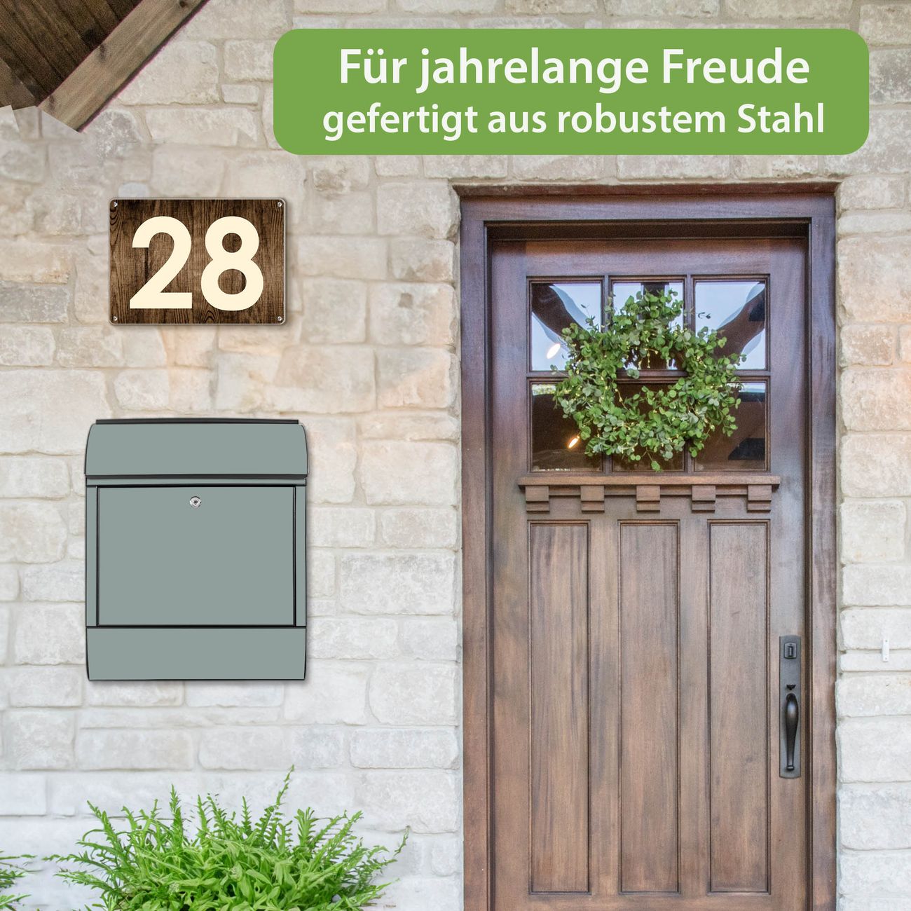 DESIGN: Der Postkasten mit Motiv Farbe Steingrau hat ein sehr ansprechendes und ausgefallenes Design, damit entlocken Sie Ihren Nachbarn und dem Postboten ein Lächeln. Heben Sie Sich von der tristen grauen Masse ab, ohne auf Funktionalität zu verzichten. DETAILS: Der Postkasten besteht aus pulverbeschichtetem Stahl. Er ist 38x46x12,5cm groß. Das Motiv besteht aus einer wetter- und UV-resistenten Folie, die mit einem Schutzlaminat überzogen ist, sodass der Briefkasten zusätzlich vor Kratzern geschützt ist. Der Briefkasten wird mit Montagematerial, zusätzlich zwei Schlüssel sowie einer Bohrschablone geliefert. NUTZEN: Sie können diesen Briefkasten sowohl als Wandbriefkasten montieren oder einen passenden Ständer kaufen und als Standbriefkasten einbetonieren. Die Größe bietet genügend Platz für Sendungen aller Art, der Einwurf fasst auch größere A4 Sendungen. BANJADO: Ihr Briefkasten wird in Sachsen in einer kleinen Manufaktur von Hand veredelt. Die Motivfolie ist lösungsmittelfrei und schutzlaminiert für einen langen Halt. Wir legen großen Wert auf die Verbindung von Funktionalität und Design. Sie erhalten Handarbeit aus Sachsen.