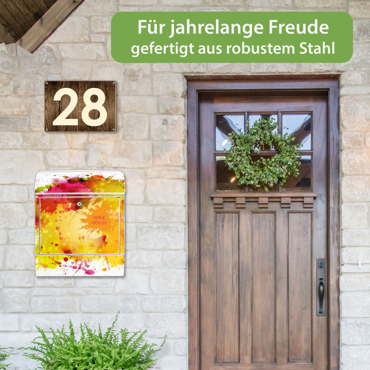 Großer Stahl Briefkasten Motiv Farbkleckse