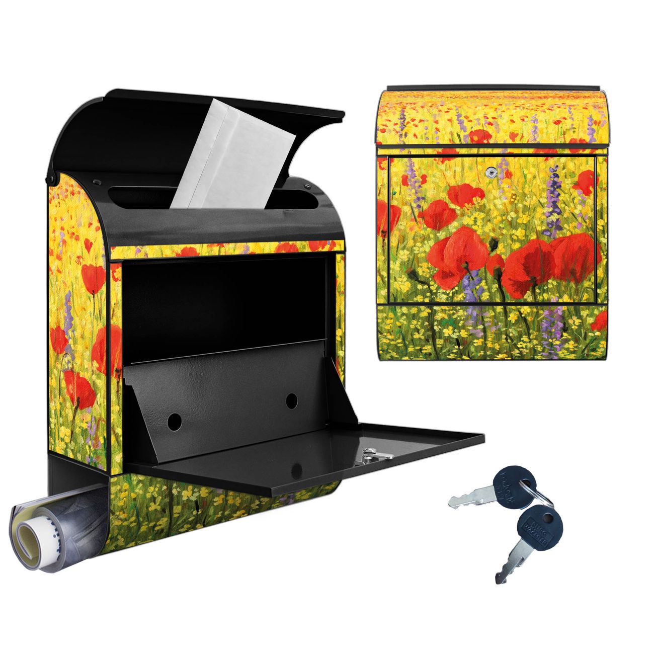 Großer Stahl Briefkasten Motiv Feld Mit Mohnblumen