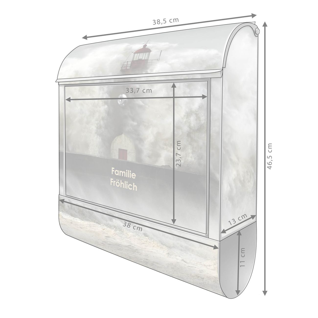 DESIGN: Der Postkasten mit Motiv Motiv Fels In Der Brandung hat ein sehr ansprechendes und ausgefallenes Design, damit entlocken Sie Ihren Nachbarn und dem Postboten ein Lächeln. Heben Sie Sich von der tristen grauen Masse ab, ohne auf Funktionalität zu verzichten. DETAILS: Der Postkasten besteht aus pulverbeschichtetem Stahl. Er ist 38x46x12,5cm groß. Das Motiv besteht aus einer wetter- und UV-resistenten Folie, die mit einem Schutzlaminat überzogen ist, sodass der Briefkasten zusätzlich vor Kratzern geschützt ist. Der Briefkasten wird mit Montagematerial, zusätzlich zwei Schlüssel sowie einer Bohrschablone geliefert. NUTZEN: Sie können diesen Briefkasten sowohl als Wandbriefkasten montieren oder einen passenden Ständer kaufen und als Standbriefkasten einbetonieren. Die Größe bietet genügend Platz für Sendungen aller Art, der Einwurf fasst auch größere A4 Sendungen. BANJADO: Ihr Briefkasten wird in Sachsen in einer kleinen Manufaktur von Hand veredelt. Die Motivfolie ist lösungsmittelfrei und schutzlaminiert für einen langen Halt. Wir legen großen Wert auf die Verbindung von Funktionalität und Design. Sie erhalten Handarbeit aus Sachsen.