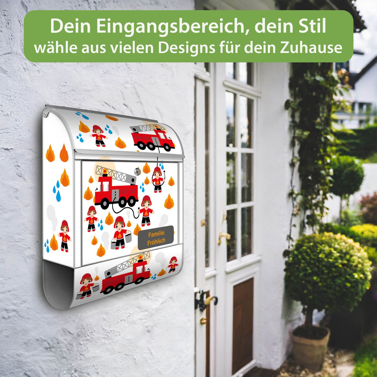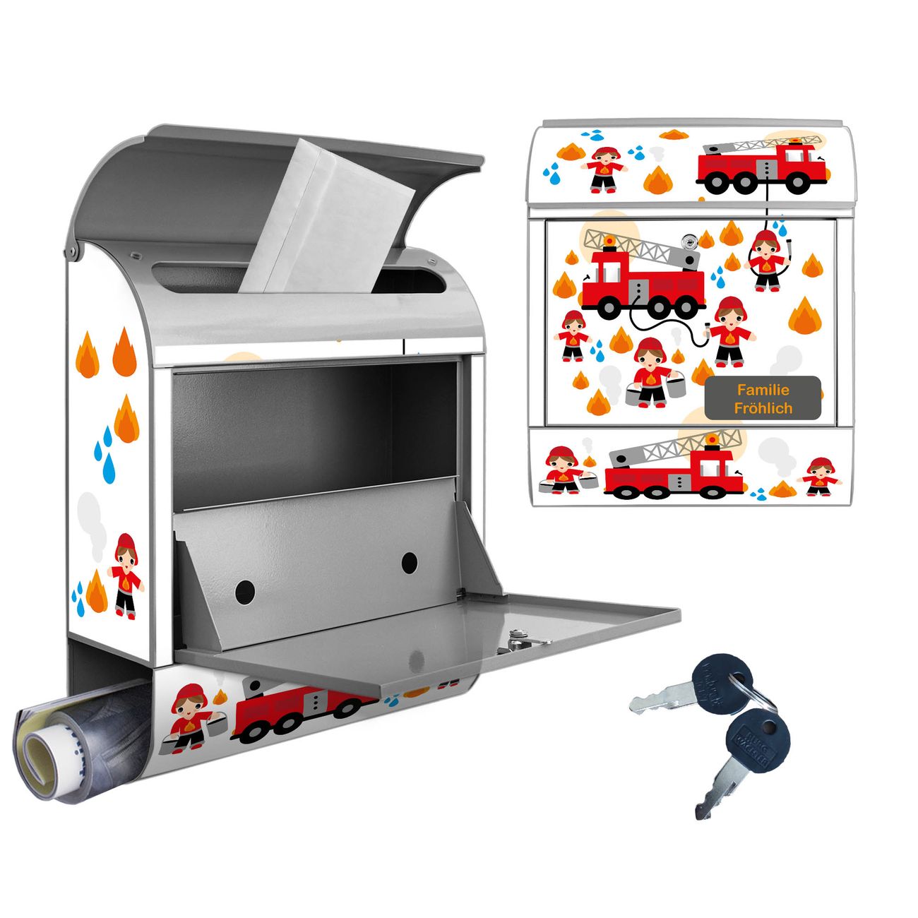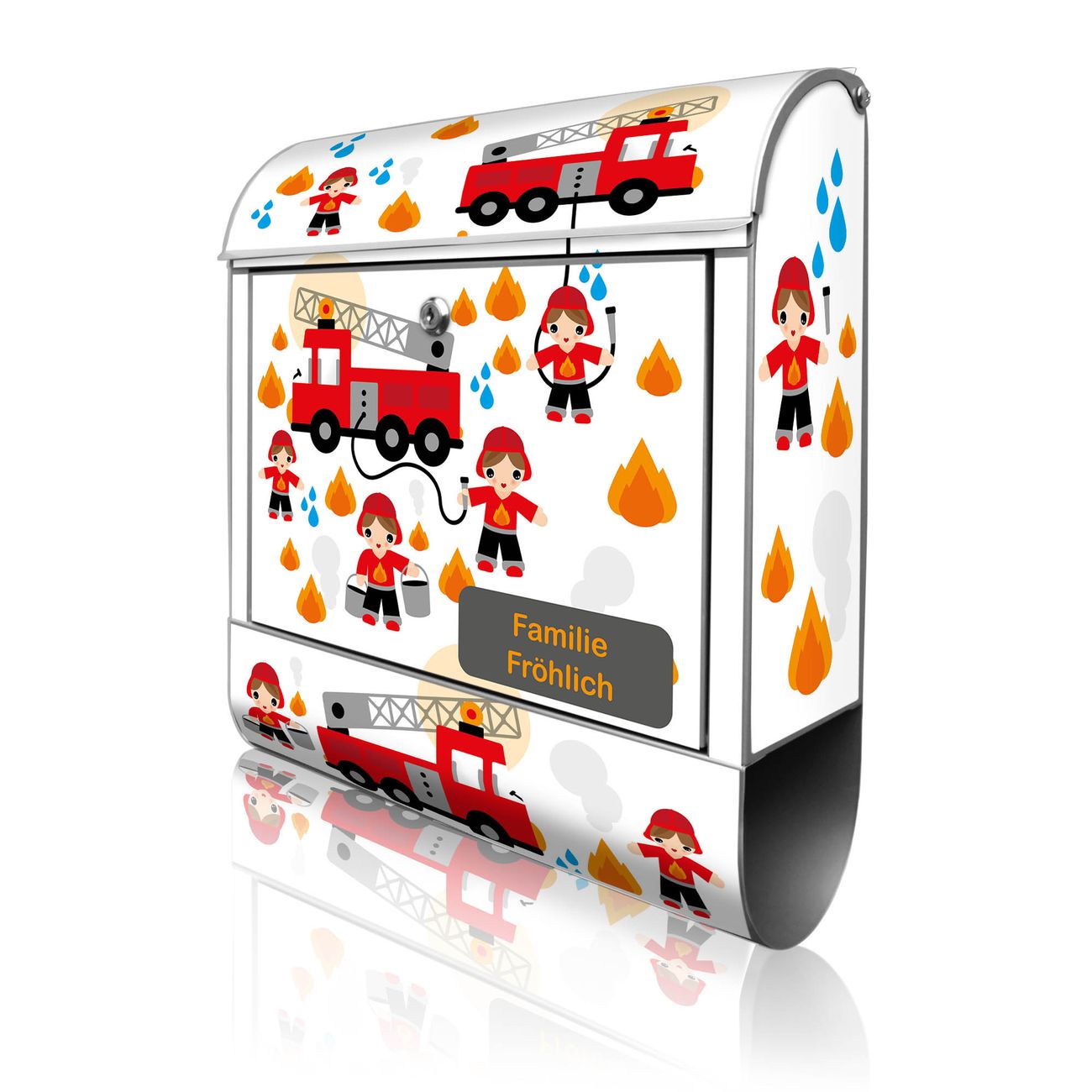 Großer Stahl Briefkasten Motiv Feuerwehr