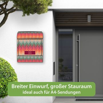 DESIGN: Der Postkasten mit Motiv Motiv Fischgräten hat ein sehr ansprechendes und ausgefallenes Design, damit entlocken Sie Ihren Nachbarn und dem Postboten ein Lächeln. Heben Sie Sich von der tristen grauen Masse ab, ohne auf Funktionalität zu verzichten. DETAILS: Der Postkasten besteht aus pulverbeschichtetem Stahl. Er ist 38x46x12,5cm groß. Das Motiv besteht aus einer wetter- und UV-resistenten Folie, die mit einem Schutzlaminat überzogen ist, sodass der Briefkasten zusätzlich vor Kratzern geschützt ist. Der Briefkasten wird mit Montagematerial, zusätzlich zwei Schlüssel sowie einer Bohrschablone geliefert. NUTZEN: Sie können diesen Briefkasten sowohl als Wandbriefkasten montieren oder einen passenden Ständer kaufen und als Standbriefkasten einbetonieren. Die Größe bietet genügend Platz für Sendungen aller Art, der Einwurf fasst auch größere A4 Sendungen. BANJADO: Ihr Briefkasten wird in Sachsen in einer kleinen Manufaktur von Hand veredelt. Die Motivfolie ist lösungsmittelfrei und schutzlaminiert für einen langen Halt. Wir legen großen Wert auf die Verbindung von Funktionalität und Design. Sie erhalten Handarbeit aus Sachsen.
