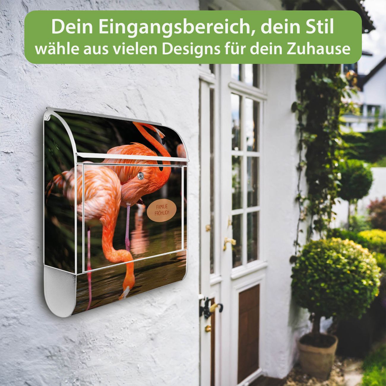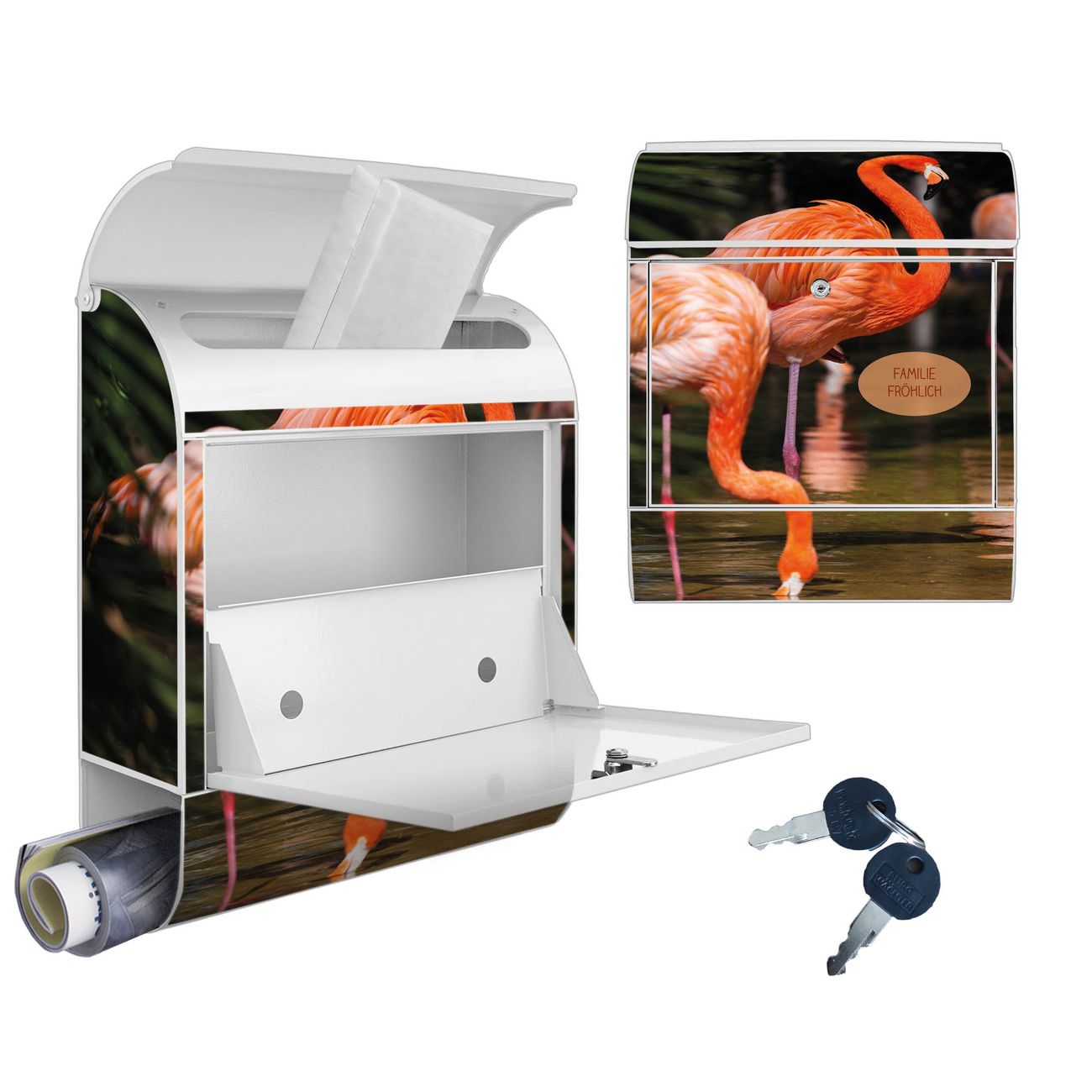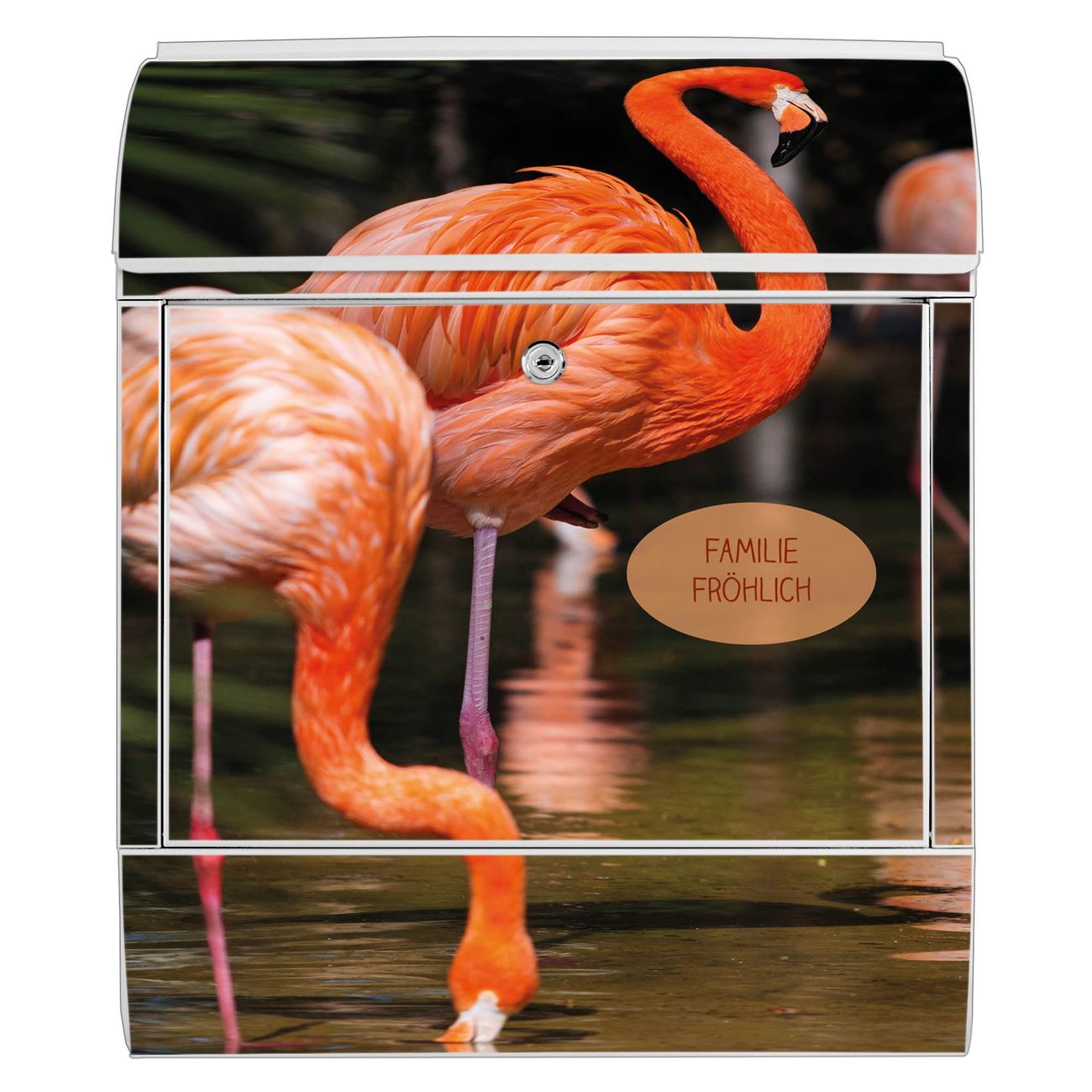 Großer Stahl Briefkasten Motiv Flamingo