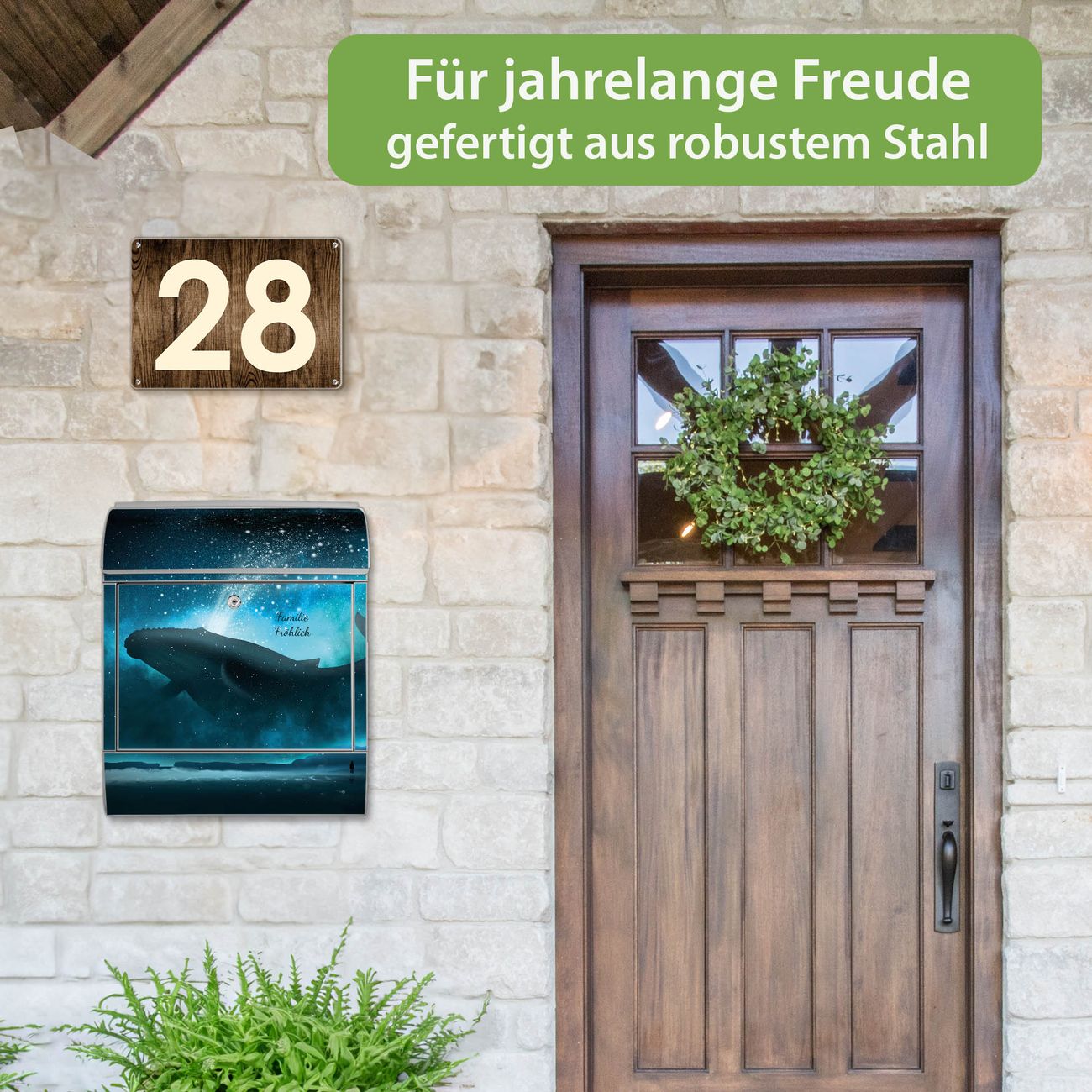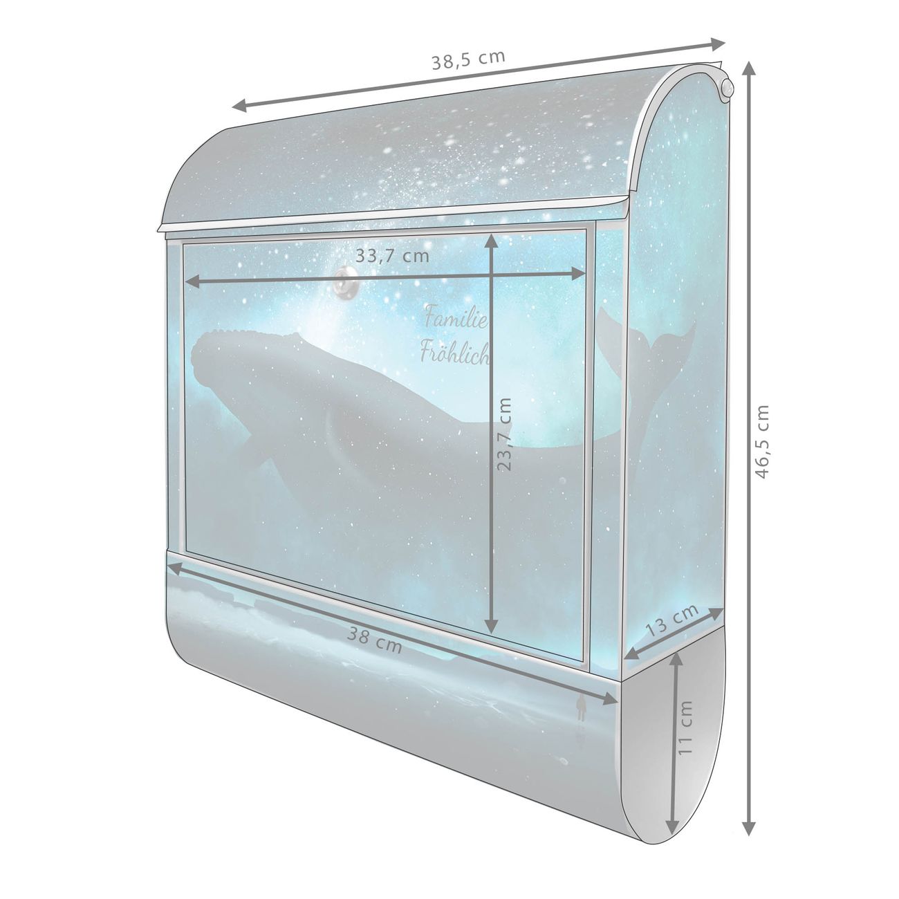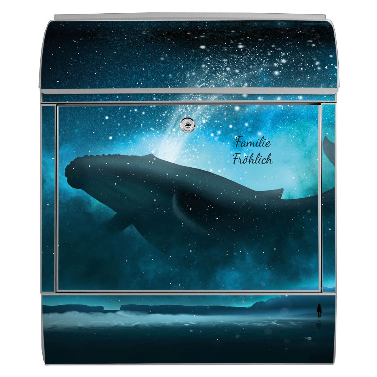 Großer Stahl Briefkasten Motiv fliegender Wal