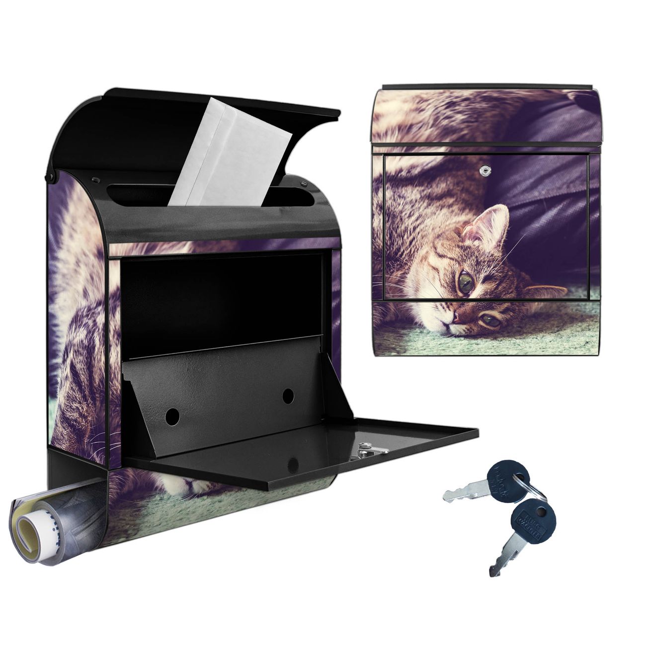 DESIGN: Der Postkasten mit Motiv Motiv Florian hat ein sehr ansprechendes und ausgefallenes Design, damit entlocken Sie Ihren Nachbarn und dem Postboten ein Lächeln. Heben Sie Sich von der tristen grauen Masse ab, ohne auf Funktionalität zu verzichten. DETAILS: Der Postkasten besteht aus pulverbeschichtetem Stahl. Er ist 38x46x12,5cm groß. Das Motiv besteht aus einer wetter- und UV-resistenten Folie, die mit einem Schutzlaminat überzogen ist, sodass der Briefkasten zusätzlich vor Kratzern geschützt ist. Der Briefkasten wird mit Montagematerial, zusätzlich zwei Schlüssel sowie einer Bohrschablone geliefert. NUTZEN: Sie können diesen Briefkasten sowohl als Wandbriefkasten montieren oder einen passenden Ständer kaufen und als Standbriefkasten einbetonieren. Die Größe bietet genügend Platz für Sendungen aller Art, der Einwurf fasst auch größere A4 Sendungen. BANJADO: Ihr Briefkasten wird in Sachsen in einer kleinen Manufaktur von Hand veredelt. Die Motivfolie ist lösungsmittelfrei und schutzlaminiert für einen langen Halt. Wir legen großen Wert auf die Verbindung von Funktionalität und Design. Sie erhalten Handarbeit aus Sachsen.