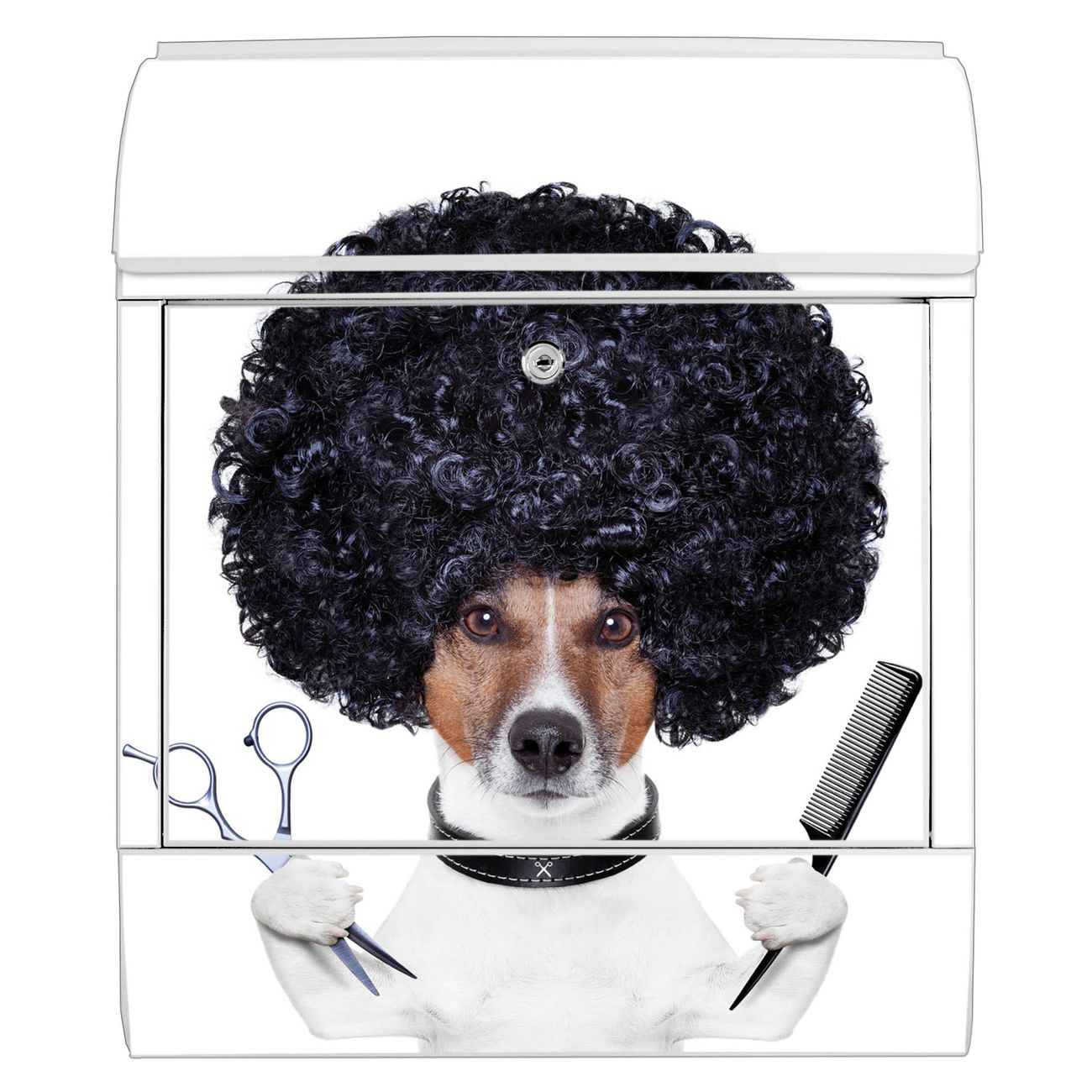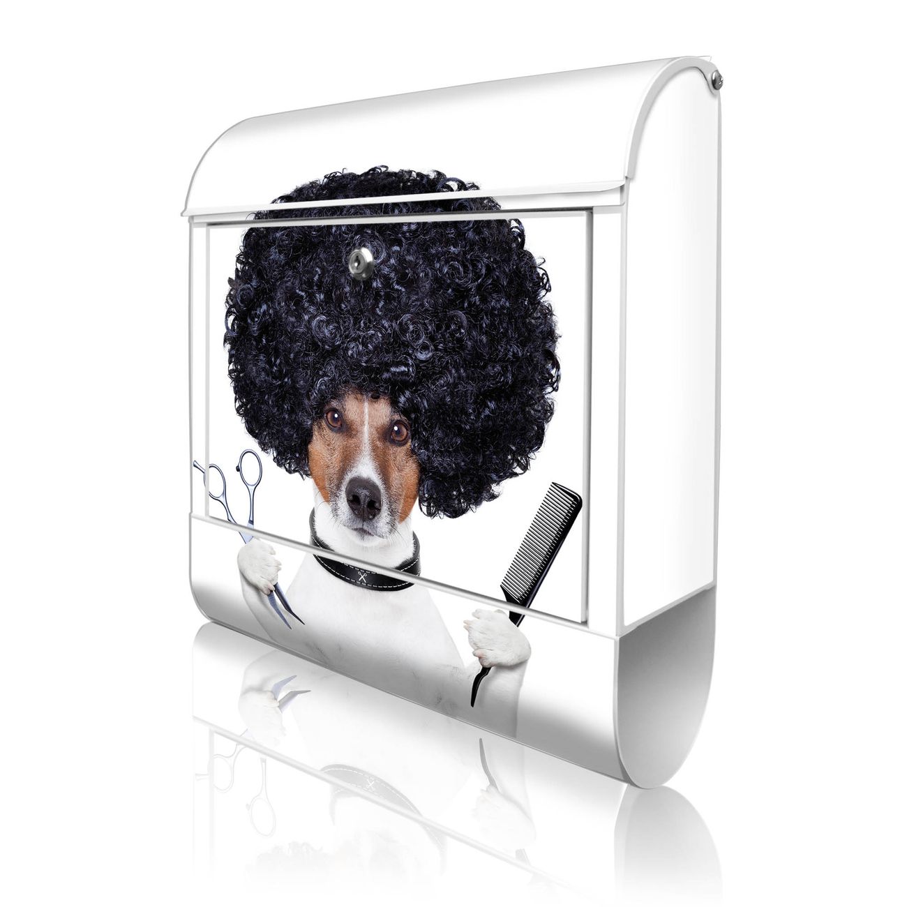 Großer Stahl Briefkasten Motiv Friseur Jack Russel