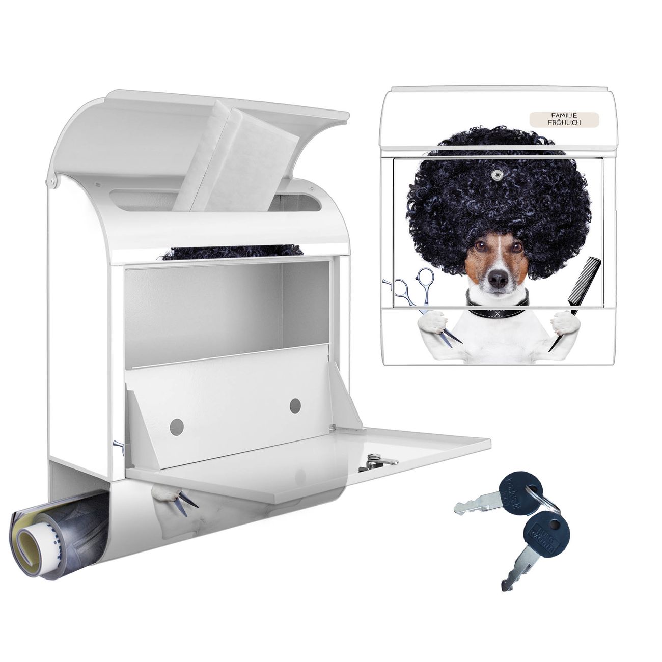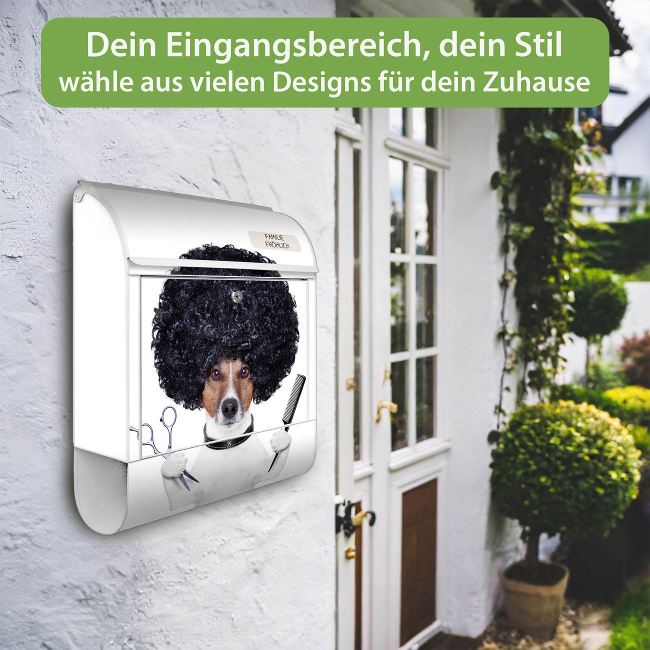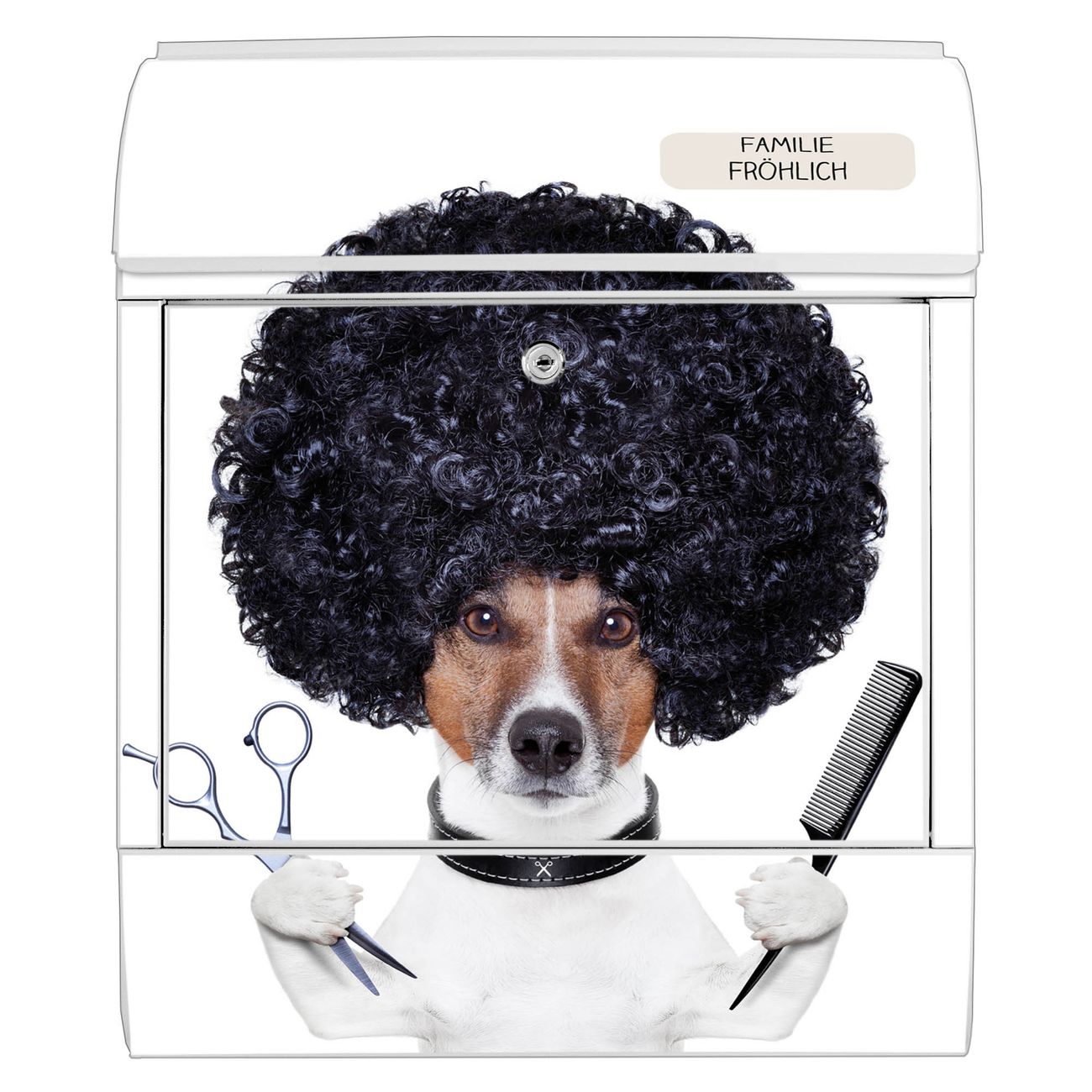 Großer Stahl Briefkasten Motiv Friseur Jack Russel