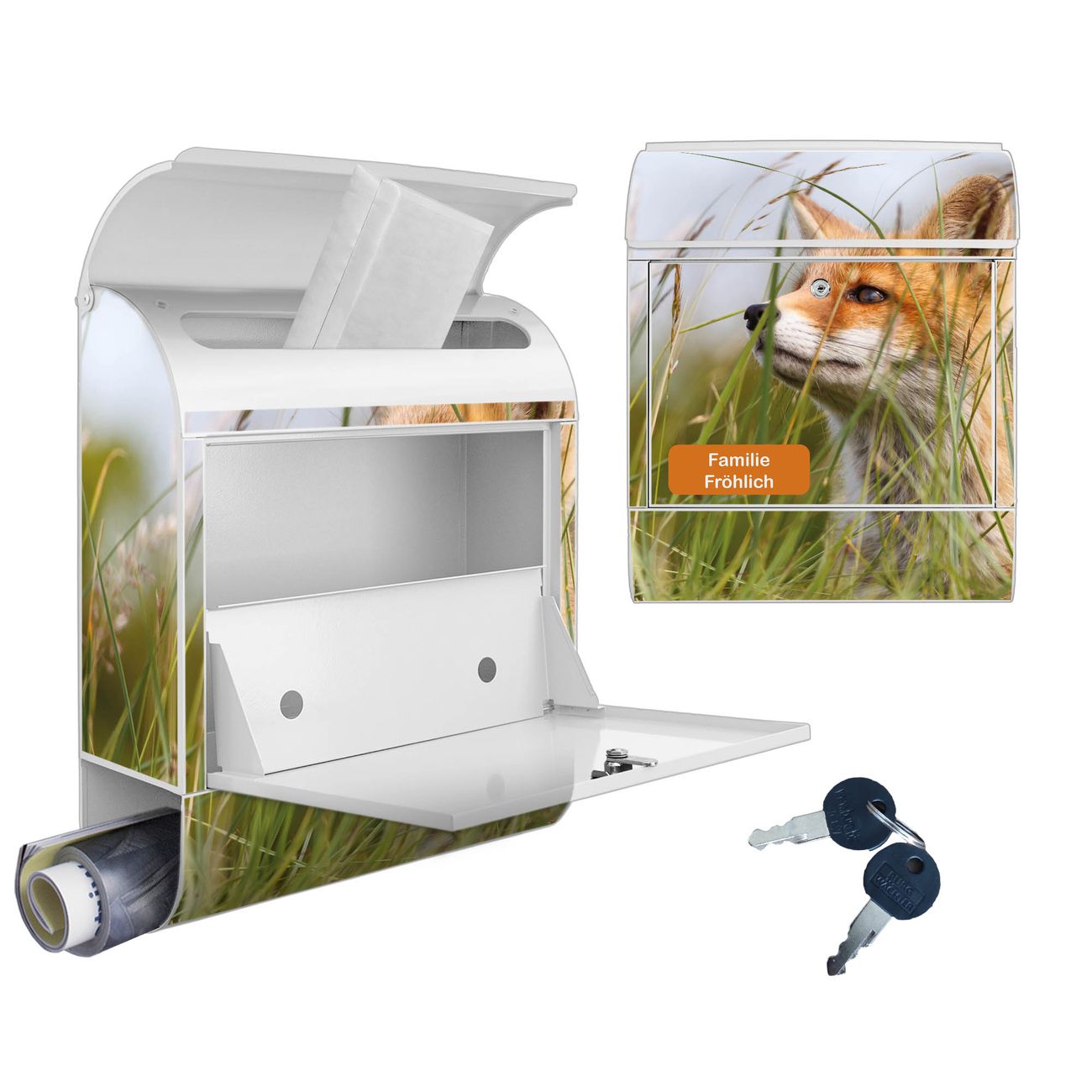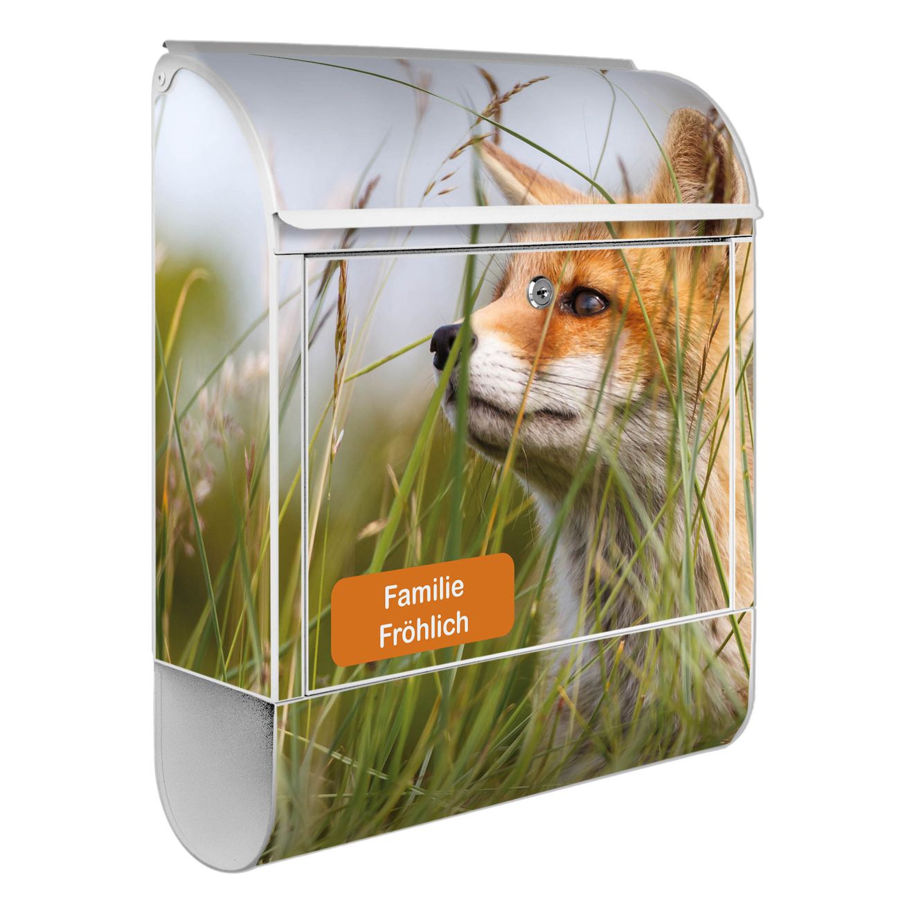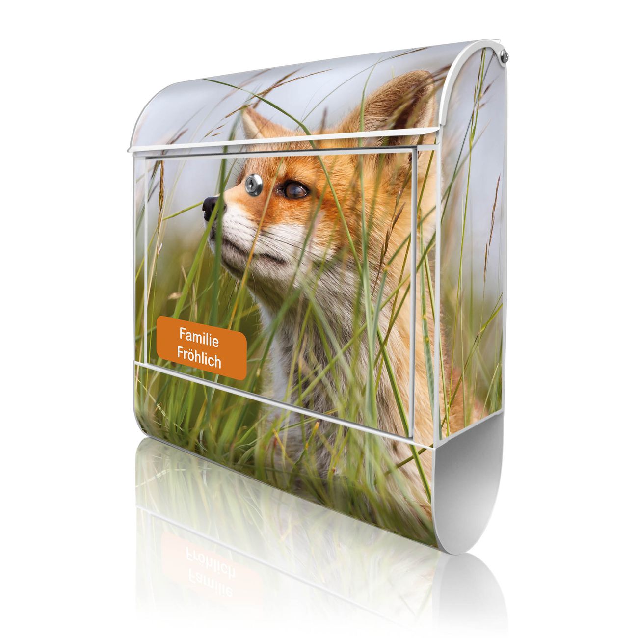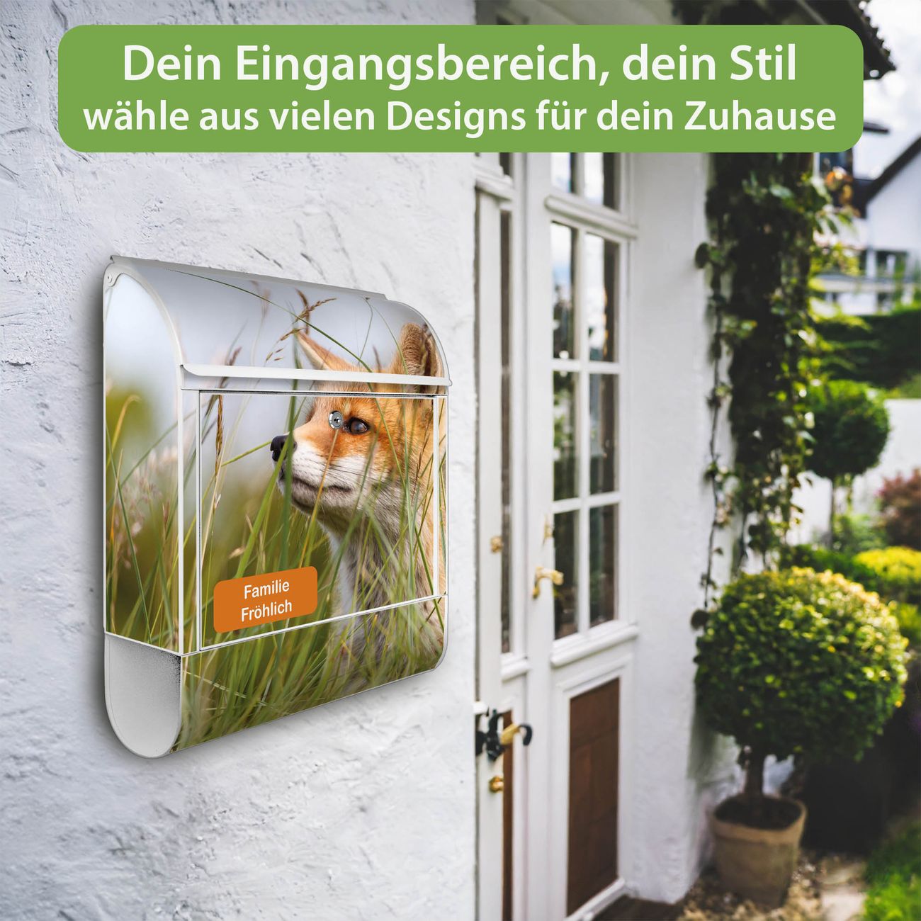 DESIGN: Der Postkasten mit Motiv Motiv Fuchs hat ein sehr ansprechendes und ausgefallenes Design, damit entlocken Sie Ihren Nachbarn und dem Postboten ein Lächeln. Heben Sie Sich von der tristen grauen Masse ab, ohne auf Funktionalität zu verzichten. DETAILS: Der Postkasten besteht aus pulverbeschichtetem Stahl. Er ist 38x46x12,5cm groß. Das Motiv besteht aus einer wetter- und UV-resistenten Folie, die mit einem Schutzlaminat überzogen ist, sodass der Briefkasten zusätzlich vor Kratzern geschützt ist. Der Briefkasten wird mit Montagematerial, zusätzlich zwei Schlüssel sowie einer Bohrschablone geliefert. NUTZEN: Sie können diesen Briefkasten sowohl als Wandbriefkasten montieren oder einen passenden Ständer kaufen und als Standbriefkasten einbetonieren. Die Größe bietet genügend Platz für Sendungen aller Art, der Einwurf fasst auch größere A4 Sendungen. BANJADO: Ihr Briefkasten wird in Sachsen in einer kleinen Manufaktur von Hand veredelt. Die Motivfolie ist lösungsmittelfrei und schutzlaminiert für einen langen Halt. Wir legen großen Wert auf die Verbindung von Funktionalität und Design. Sie erhalten Handarbeit aus Sachsen.