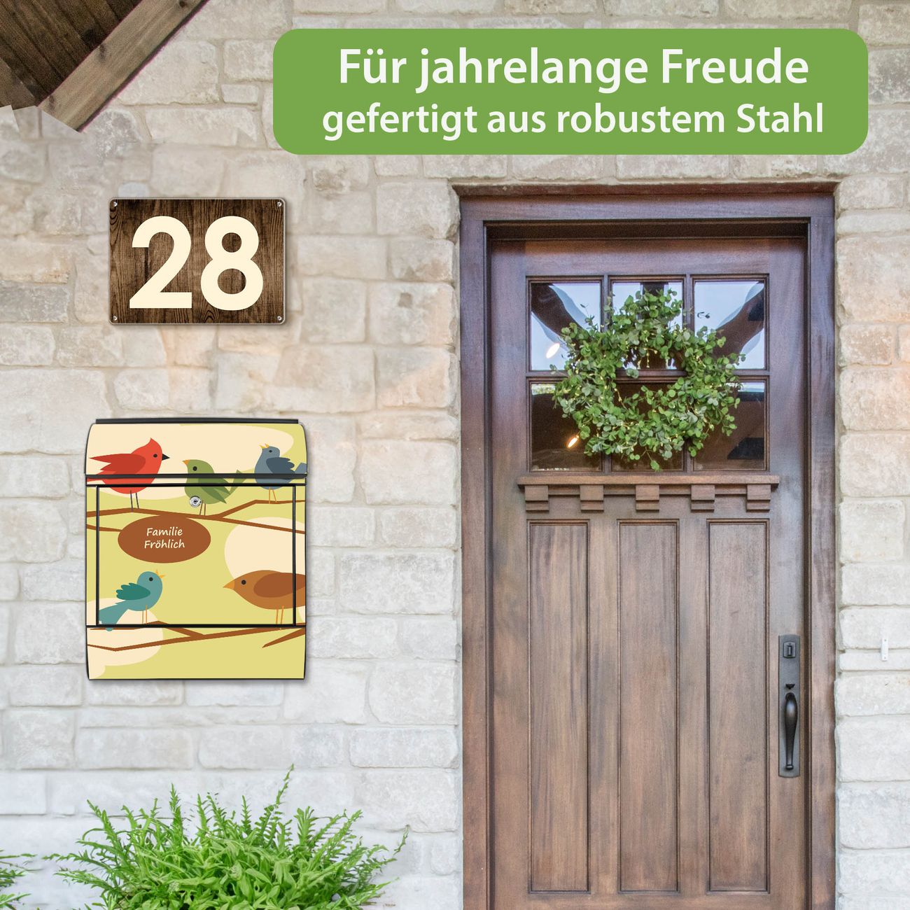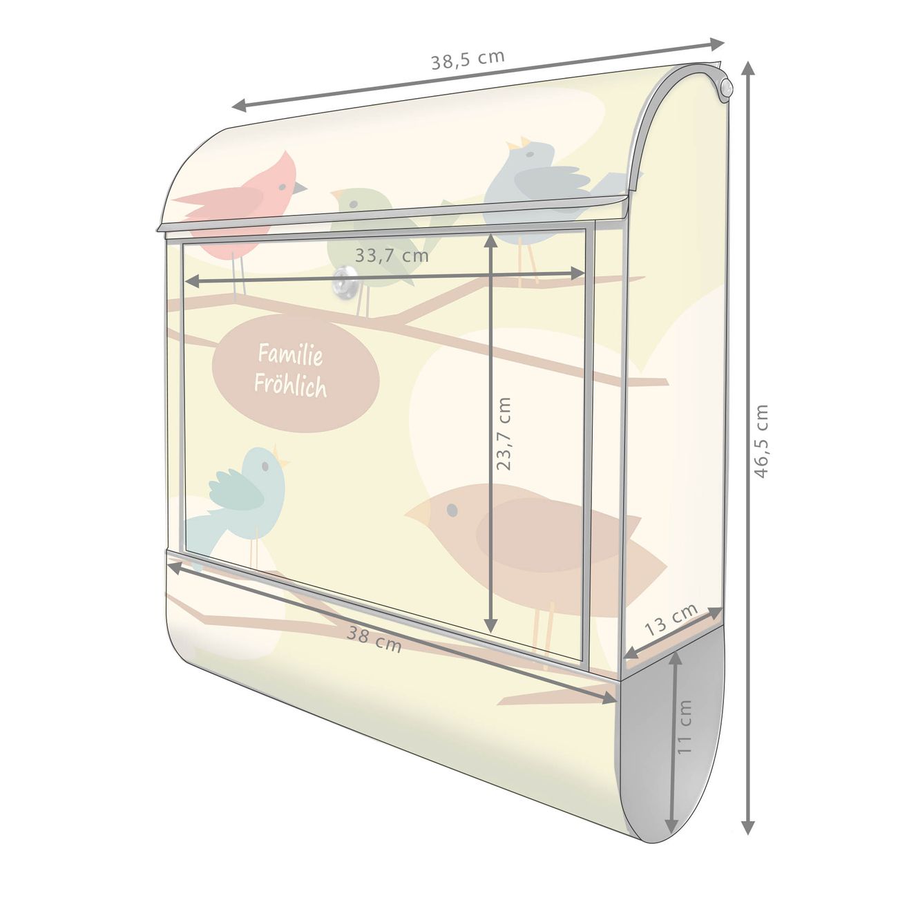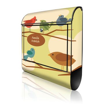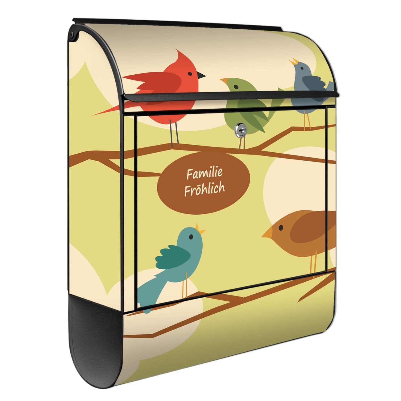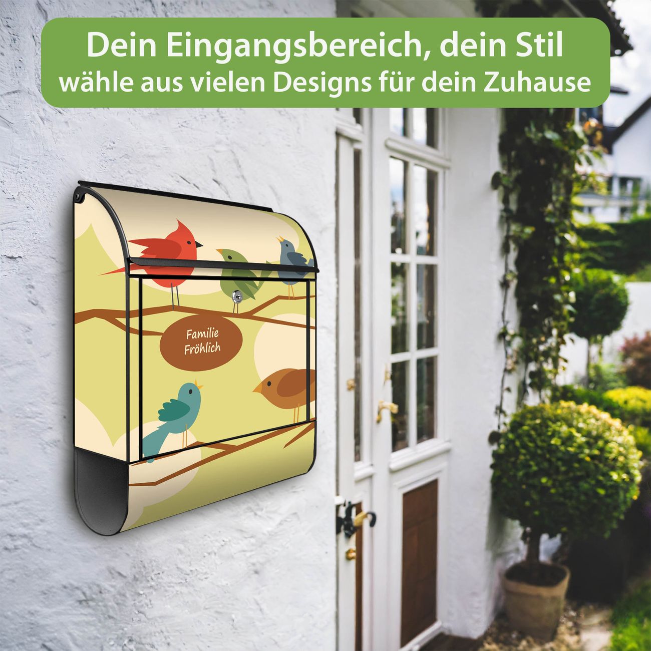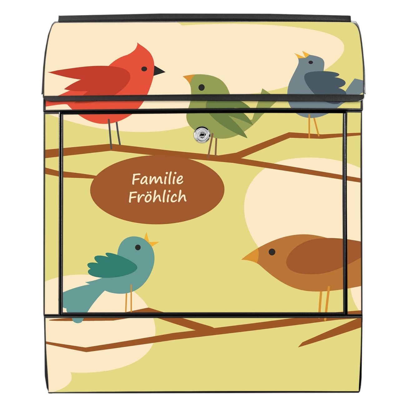 Großer Stahl Briefkasten Motiv Fünf Vögel