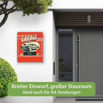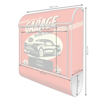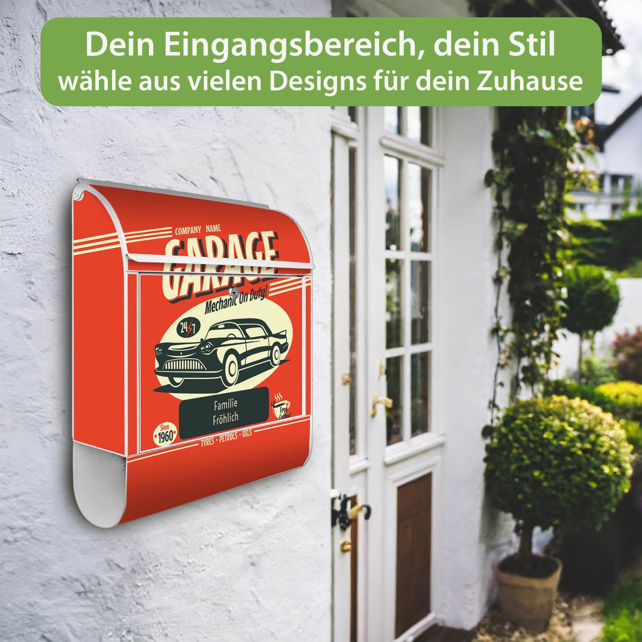 DESIGN: Der Postkasten mit Motiv Motiv Full Service hat ein sehr ansprechendes und ausgefallenes Design, damit entlocken Sie Ihren Nachbarn und dem Postboten ein Lächeln. Heben Sie Sich von der tristen grauen Masse ab, ohne auf Funktionalität zu verzichten. DETAILS: Der Postkasten besteht aus pulverbeschichtetem Stahl. Er ist 38x46x12,5cm groß. Das Motiv besteht aus einer wetter- und UV-resistenten Folie, die mit einem Schutzlaminat überzogen ist, sodass der Briefkasten zusätzlich vor Kratzern geschützt ist. Der Briefkasten wird mit Montagematerial, zusätzlich zwei Schlüssel sowie einer Bohrschablone geliefert. NUTZEN: Sie können diesen Briefkasten sowohl als Wandbriefkasten montieren oder einen passenden Ständer kaufen und als Standbriefkasten einbetonieren. Die Größe bietet genügend Platz für Sendungen aller Art, der Einwurf fasst auch größere A4 Sendungen. BANJADO: Ihr Briefkasten wird in Sachsen in einer kleinen Manufaktur von Hand veredelt. Die Motivfolie ist lösungsmittelfrei und schutzlaminiert für einen langen Halt. Wir legen großen Wert auf die Verbindung von Funktionalität und Design. Sie erhalten Handarbeit aus Sachsen.