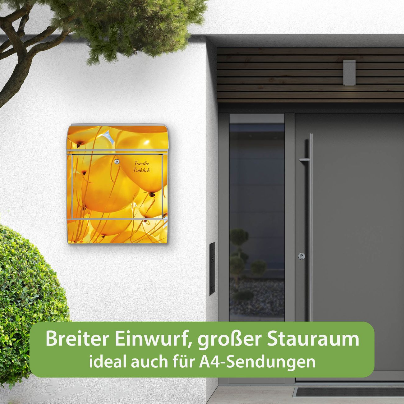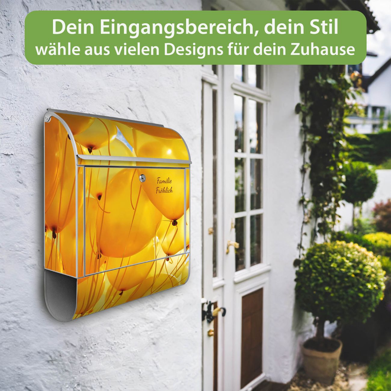 Großer Stahl Briefkasten Motiv Gelbe Luftballons