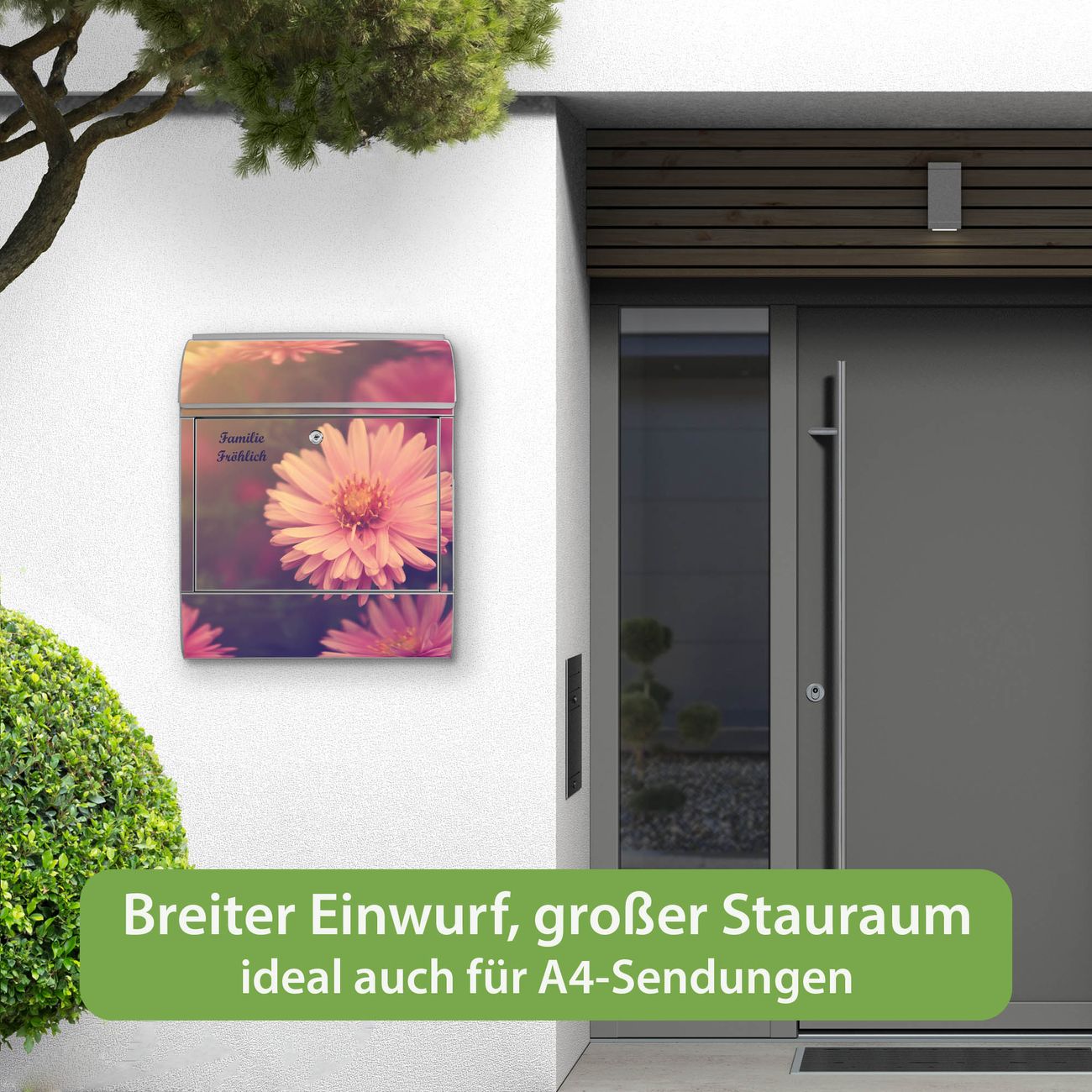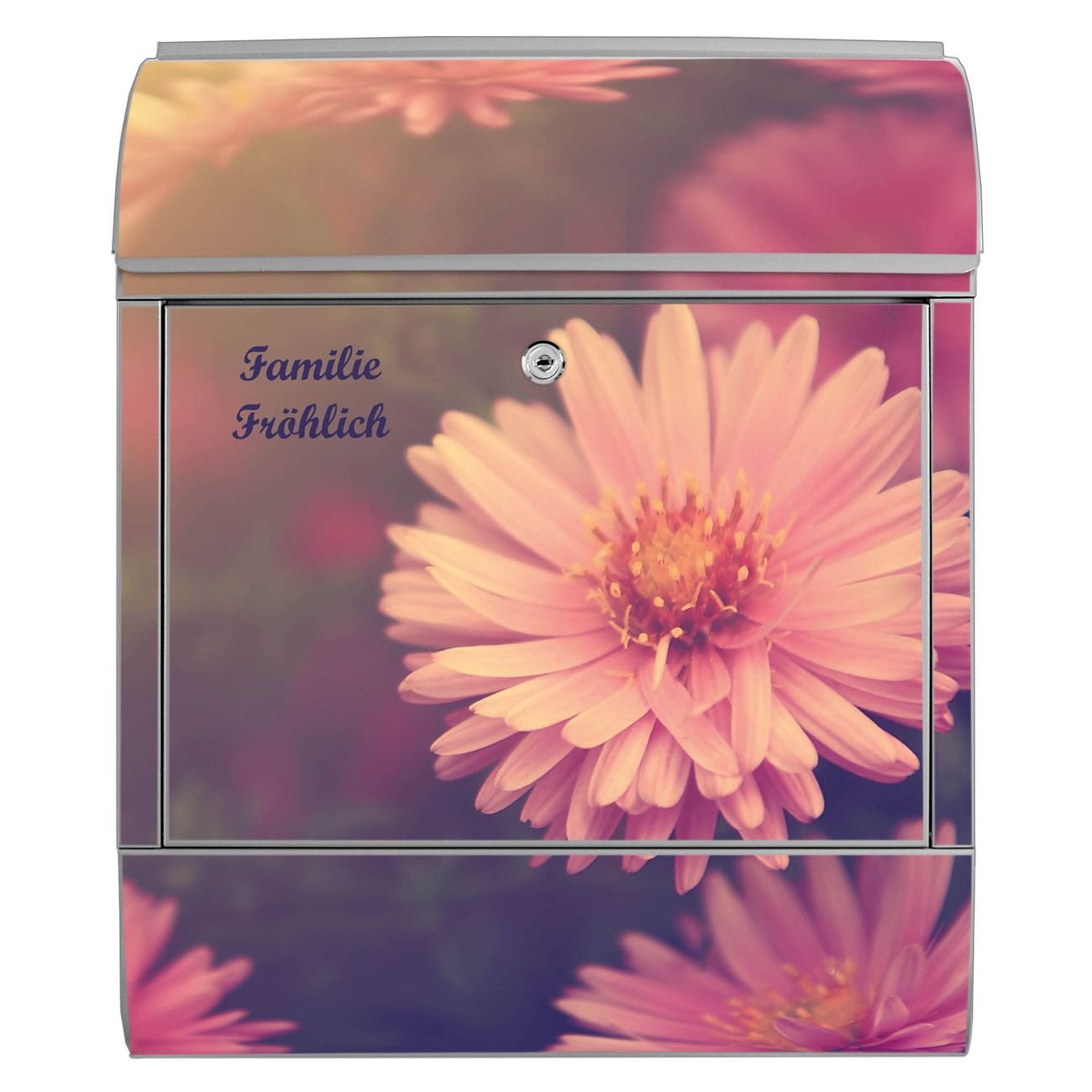 Großer Stahl Briefkasten Motiv Gerbera 2