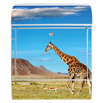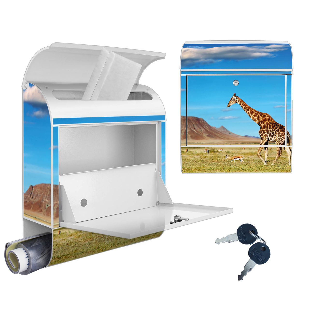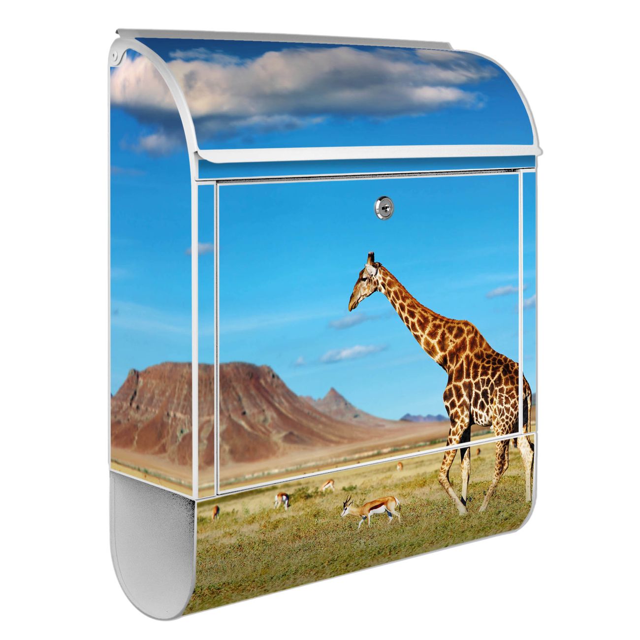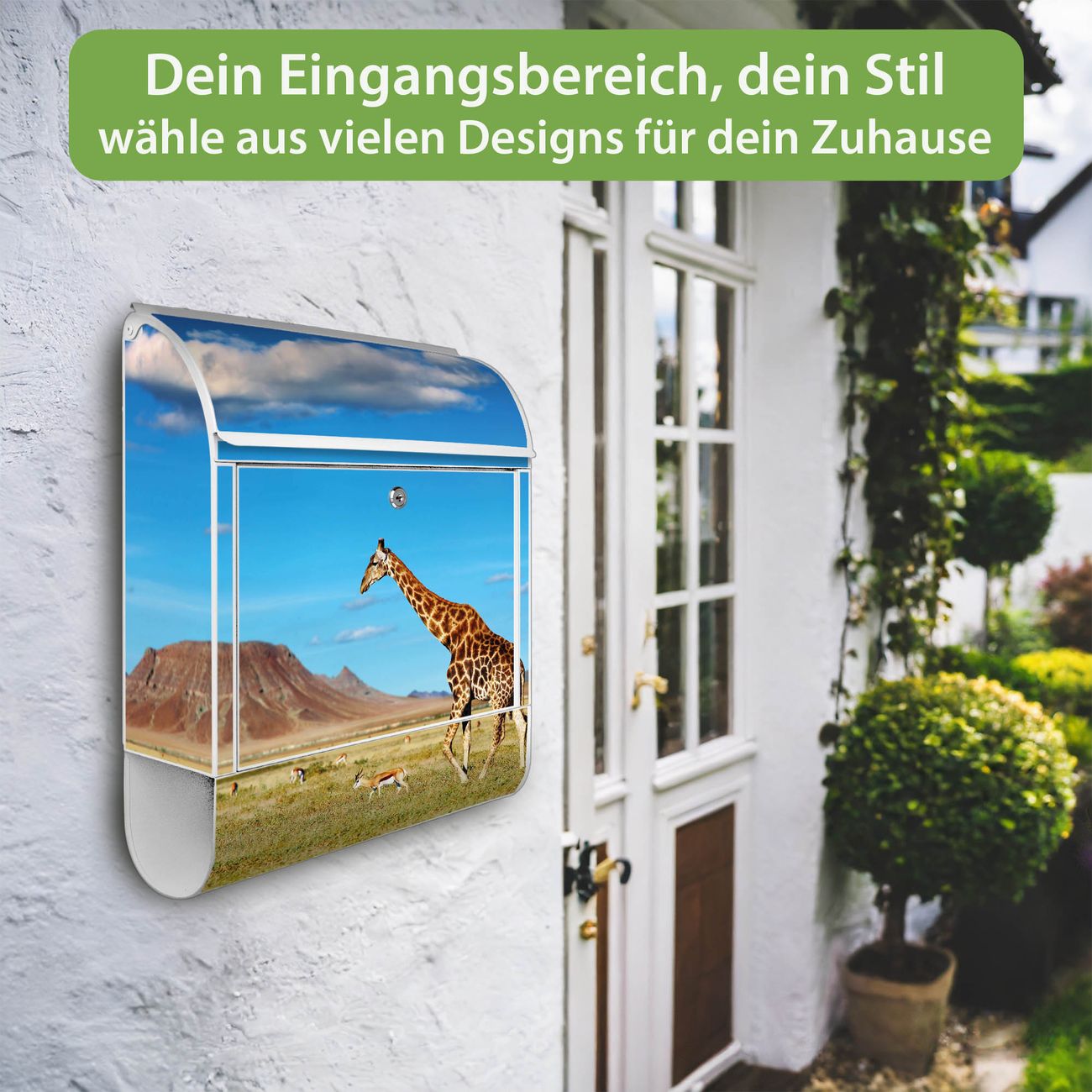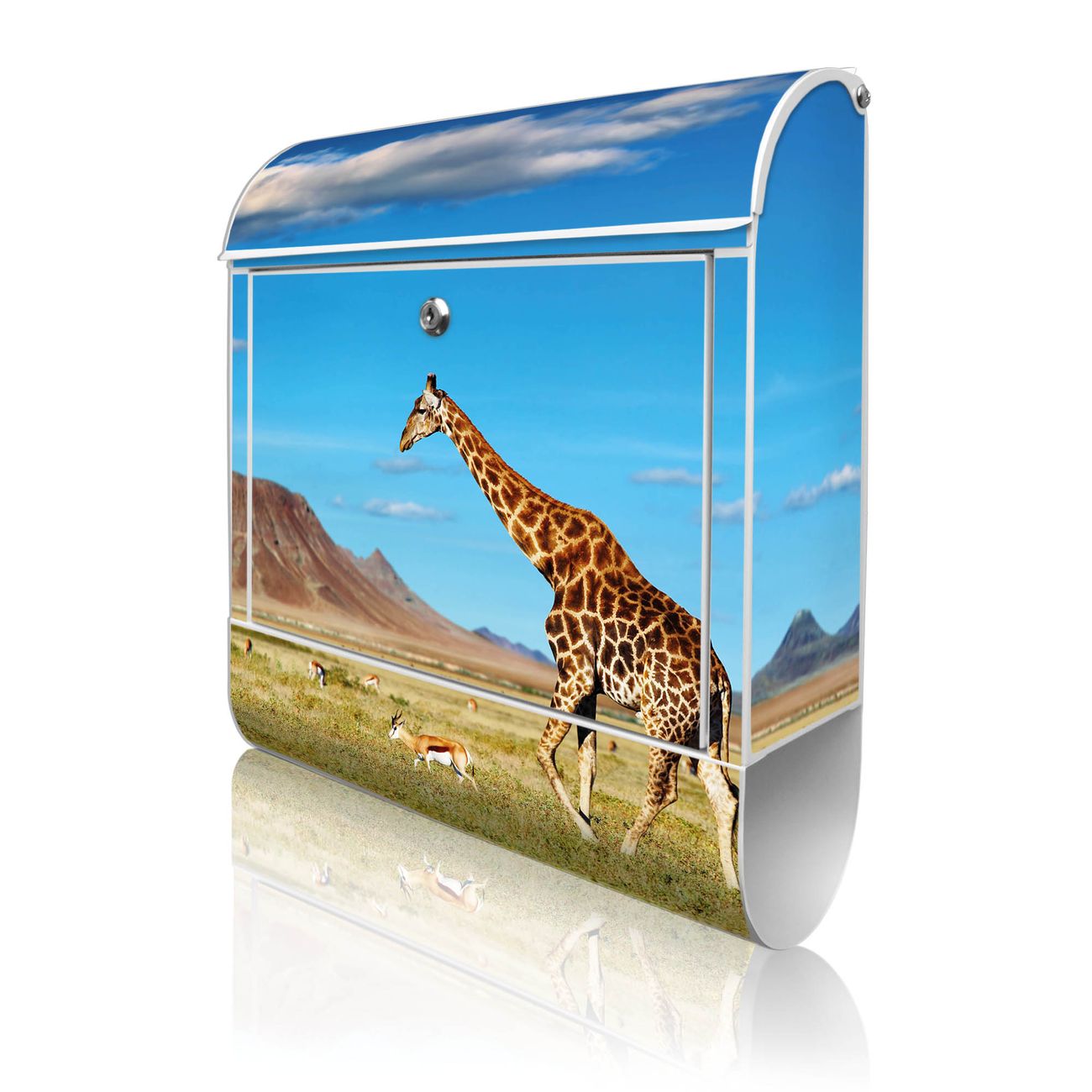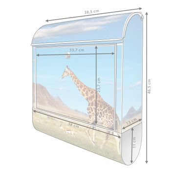 DESIGN: Der Postkasten mit Motiv Motiv Giraffe hat ein sehr ansprechendes und ausgefallenes Design, damit entlocken Sie Ihren Nachbarn und dem Postboten ein Lächeln. Heben Sie Sich von der tristen grauen Masse ab, ohne auf Funktionalität zu verzichten. DETAILS: Der Postkasten besteht aus pulverbeschichtetem Stahl. Er ist 38x46x12,5cm groß. Das Motiv besteht aus einer wetter- und UV-resistenten Folie, die mit einem Schutzlaminat überzogen ist, sodass der Briefkasten zusätzlich vor Kratzern geschützt ist. Der Briefkasten wird mit Montagematerial, zusätzlich zwei Schlüssel sowie einer Bohrschablone geliefert. NUTZEN: Sie können diesen Briefkasten sowohl als Wandbriefkasten montieren oder einen passenden Ständer kaufen und als Standbriefkasten einbetonieren. Die Größe bietet genügend Platz für Sendungen aller Art, der Einwurf fasst auch größere A4 Sendungen. BANJADO: Ihr Briefkasten wird in Sachsen in einer kleinen Manufaktur von Hand veredelt. Die Motivfolie ist lösungsmittelfrei und schutzlaminiert für einen langen Halt. Wir legen großen Wert auf die Verbindung von Funktionalität und Design. Sie erhalten Handarbeit aus Sachsen.