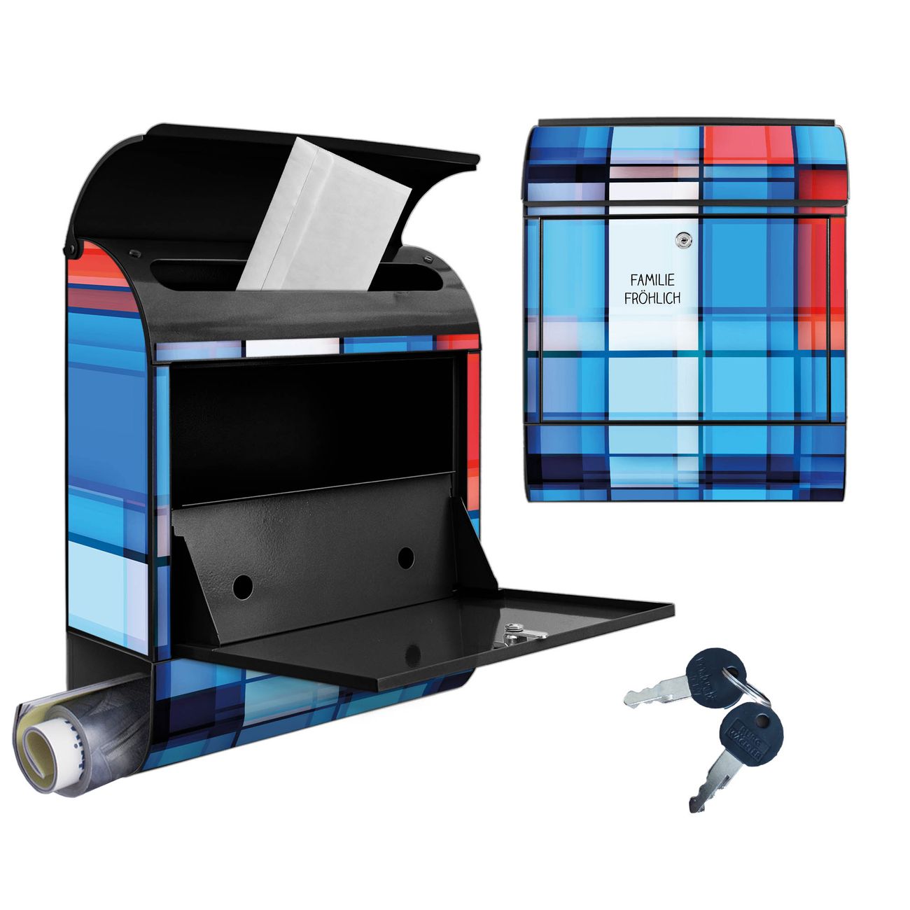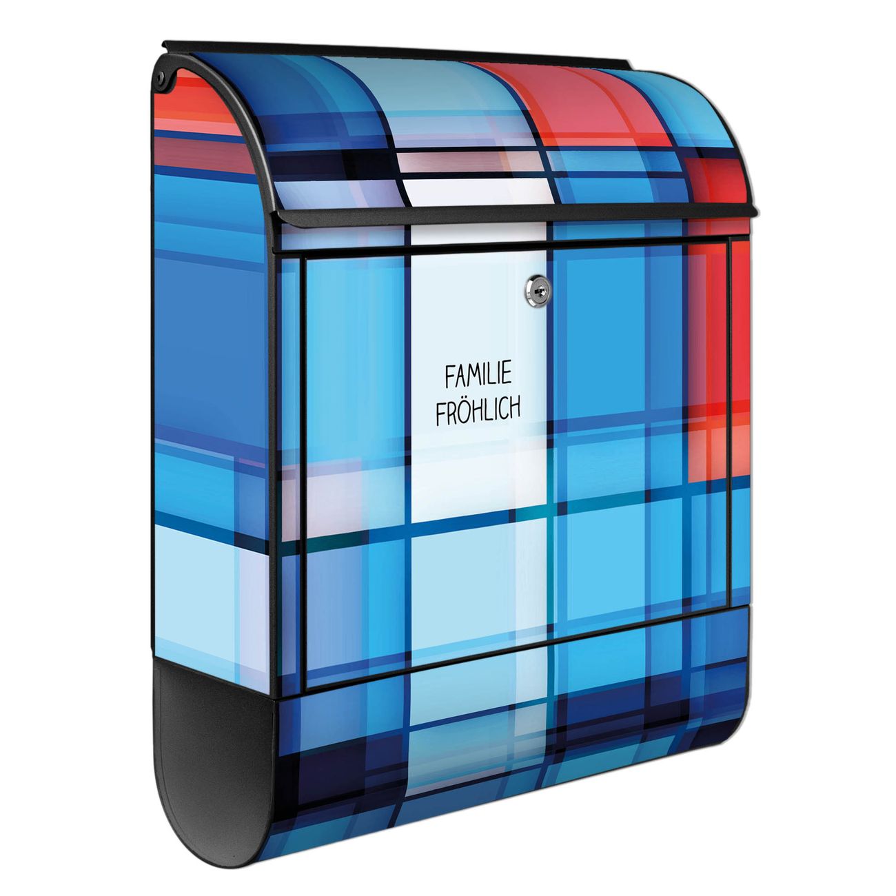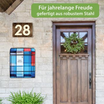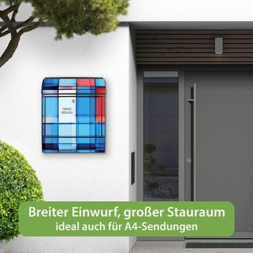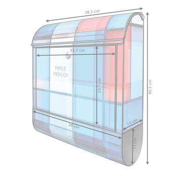DESIGN: Der Postkasten mit Motiv Motiv Gläserne Stadt hat ein sehr ansprechendes und ausgefallenes Design, damit entlocken Sie Ihren Nachbarn und dem Postboten ein Lächeln. Heben Sie Sich von der tristen grauen Masse ab, ohne auf Funktionalität zu verzichten. DETAILS: Der Postkasten besteht aus pulverbeschichtetem Stahl. Er ist 38x46x12,5cm groß. Das Motiv besteht aus einer wetter- und UV-resistenten Folie, die mit einem Schutzlaminat überzogen ist, sodass der Briefkasten zusätzlich vor Kratzern geschützt ist. Der Briefkasten wird mit Montagematerial, zusätzlich zwei Schlüssel sowie einer Bohrschablone geliefert. NUTZEN: Sie können diesen Briefkasten sowohl als Wandbriefkasten montieren oder einen passenden Ständer kaufen und als Standbriefkasten einbetonieren. Die Größe bietet genügend Platz für Sendungen aller Art, der Einwurf fasst auch größere A4 Sendungen. BANJADO: Ihr Briefkasten wird in Sachsen in einer kleinen Manufaktur von Hand veredelt. Die Motivfolie ist lösungsmittelfrei und schutzlaminiert für einen langen Halt. Wir legen großen Wert auf die Verbindung von Funktionalität und Design. Sie erhalten Handarbeit aus Sachsen.