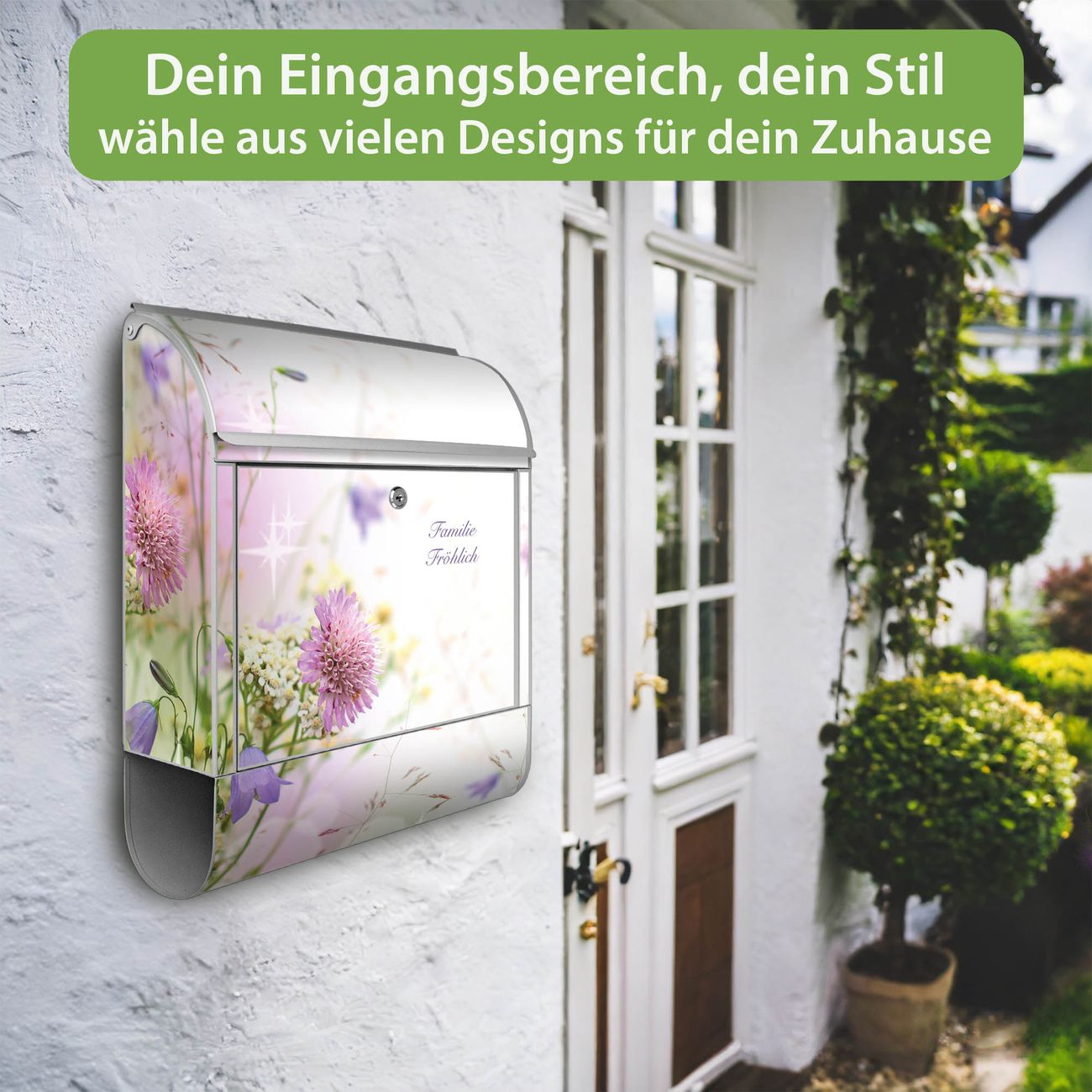Großer Stahl Briefkasten Motiv Glitzernde Wiese