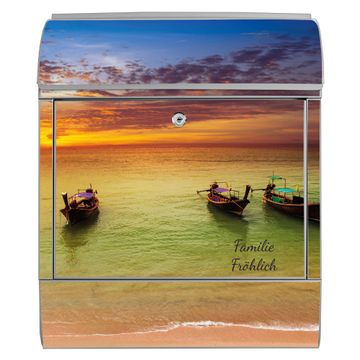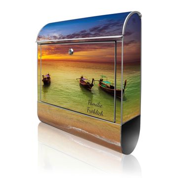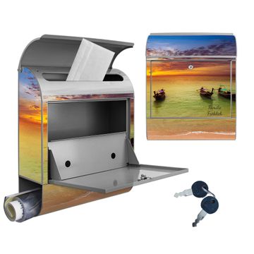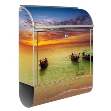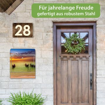 DESIGN: Der Postkasten mit Motiv Motiv Golf Von Thailand hat ein sehr ansprechendes und ausgefallenes Design, damit entlocken Sie Ihren Nachbarn und dem Postboten ein Lächeln. Heben Sie Sich von der tristen grauen Masse ab, ohne auf Funktionalität zu verzichten. DETAILS: Der Postkasten besteht aus pulverbeschichtetem Stahl. Er ist 38x46x12,5cm groß. Das Motiv besteht aus einer wetter- und UV-resistenten Folie, die mit einem Schutzlaminat überzogen ist, sodass der Briefkasten zusätzlich vor Kratzern geschützt ist. Der Briefkasten wird mit Montagematerial, zusätzlich zwei Schlüssel sowie einer Bohrschablone geliefert. NUTZEN: Sie können diesen Briefkasten sowohl als Wandbriefkasten montieren oder einen passenden Ständer kaufen und als Standbriefkasten einbetonieren. Die Größe bietet genügend Platz für Sendungen aller Art, der Einwurf fasst auch größere A4 Sendungen. BANJADO: Ihr Briefkasten wird in Sachsen in einer kleinen Manufaktur von Hand veredelt. Die Motivfolie ist lösungsmittelfrei und schutzlaminiert für einen langen Halt. Wir legen großen Wert auf die Verbindung von Funktionalität und Design. Sie erhalten Handarbeit aus Sachsen.