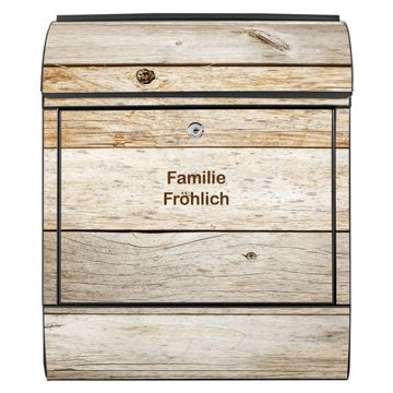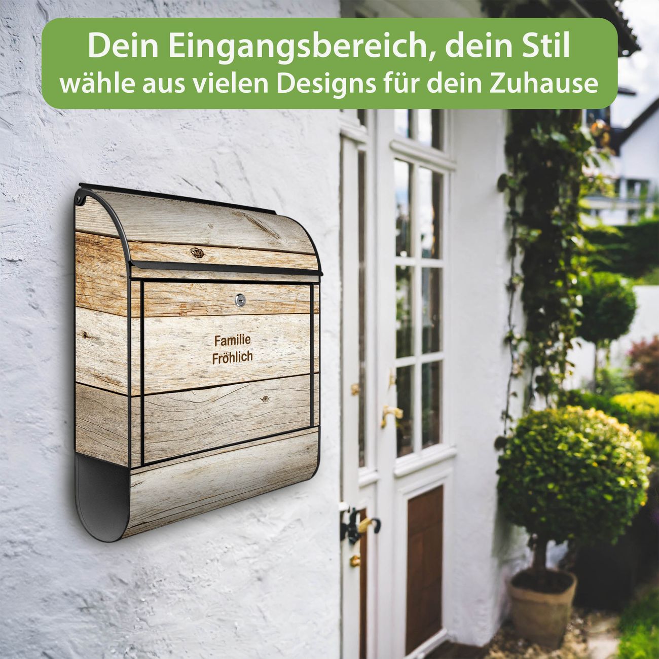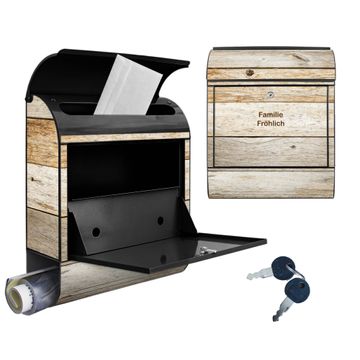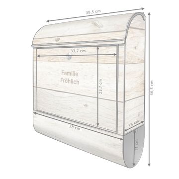 DESIGN: Der Postkasten mit Motiv Motiv Graues Holz hat ein sehr ansprechendes und ausgefallenes Design, damit entlocken Sie Ihren Nachbarn und dem Postboten ein Lächeln. Heben Sie Sich von der tristen grauen Masse ab, ohne auf Funktionalität zu verzichten. DETAILS: Der Postkasten besteht aus pulverbeschichtetem Stahl. Er ist 38x46x12,5cm groß. Das Motiv besteht aus einer wetter- und UV-resistenten Folie, die mit einem Schutzlaminat überzogen ist, sodass der Briefkasten zusätzlich vor Kratzern geschützt ist. Der Briefkasten wird mit Montagematerial, zusätzlich zwei Schlüssel sowie einer Bohrschablone geliefert. NUTZEN: Sie können diesen Briefkasten sowohl als Wandbriefkasten montieren oder einen passenden Ständer kaufen und als Standbriefkasten einbetonieren. Die Größe bietet genügend Platz für Sendungen aller Art, der Einwurf fasst auch größere A4 Sendungen. BANJADO: Ihr Briefkasten wird in Sachsen in einer kleinen Manufaktur von Hand veredelt. Die Motivfolie ist lösungsmittelfrei und schutzlaminiert für einen langen Halt. Wir legen großen Wert auf die Verbindung von Funktionalität und Design. Sie erhalten Handarbeit aus Sachsen.