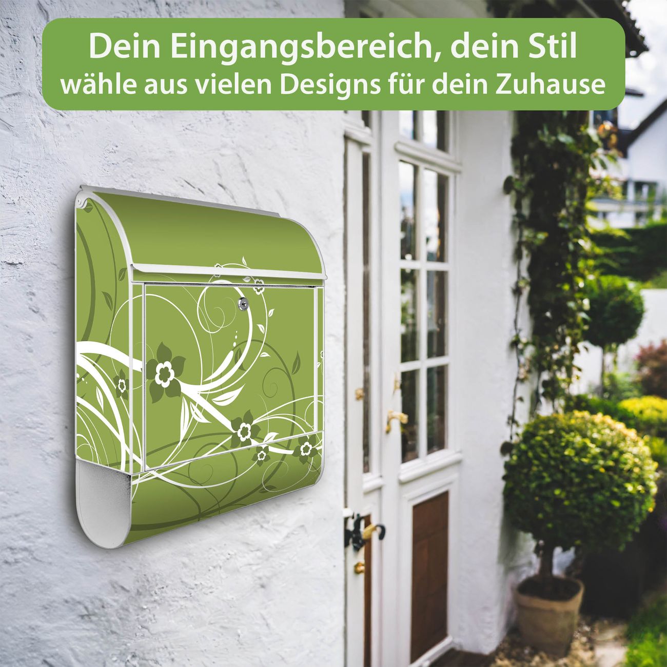 Großer Stahl Briefkasten Motiv Grüne Blüten