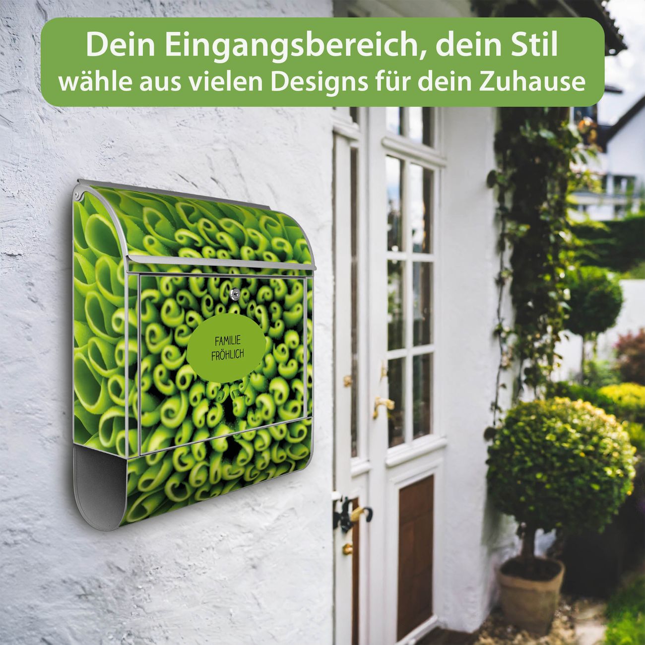 Großer Stahl Briefkasten Motiv Grüne Chrysantheme