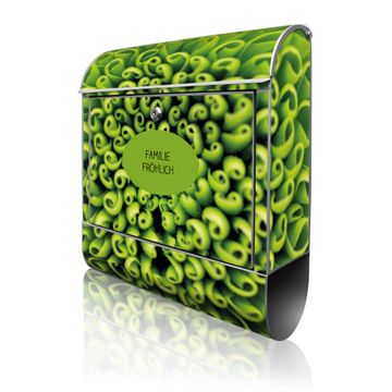 DESIGN: Der Postkasten mit Motiv Motiv Grüne Chrysantheme hat ein sehr ansprechendes und ausgefallenes Design, damit entlocken Sie Ihren Nachbarn und dem Postboten ein Lächeln. Heben Sie Sich von der tristen grauen Masse ab, ohne auf Funktionalität zu verzichten. DETAILS: Der Postkasten besteht aus pulverbeschichtetem Stahl. Er ist 38x46x12,5cm groß. Das Motiv besteht aus einer wetter- und UV-resistenten Folie, die mit einem Schutzlaminat überzogen ist, sodass der Briefkasten zusätzlich vor Kratzern geschützt ist. Der Briefkasten wird mit Montagematerial, zusätzlich zwei Schlüssel sowie einer Bohrschablone geliefert. NUTZEN: Sie können diesen Briefkasten sowohl als Wandbriefkasten montieren oder einen passenden Ständer kaufen und als Standbriefkasten einbetonieren. Die Größe bietet genügend Platz für Sendungen aller Art, der Einwurf fasst auch größere A4 Sendungen. BANJADO: Ihr Briefkasten wird in Sachsen in einer kleinen Manufaktur von Hand veredelt. Die Motivfolie ist lösungsmittelfrei und schutzlaminiert für einen langen Halt. Wir legen großen Wert auf die Verbindung von Funktionalität und Design. Sie erhalten Handarbeit aus Sachsen.