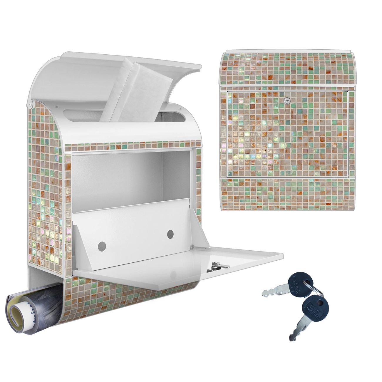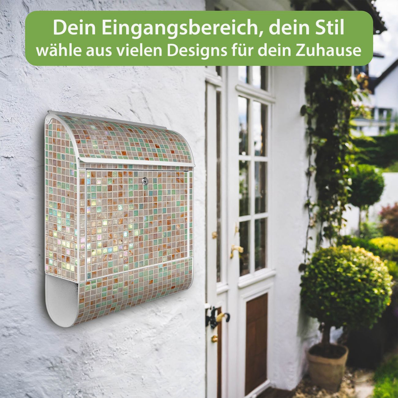 Großer Stahl Briefkasten Motiv Grüne Fliesen