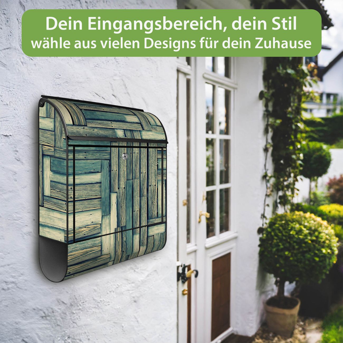 Großer Stahl Briefkasten Motiv Grüne Planken
