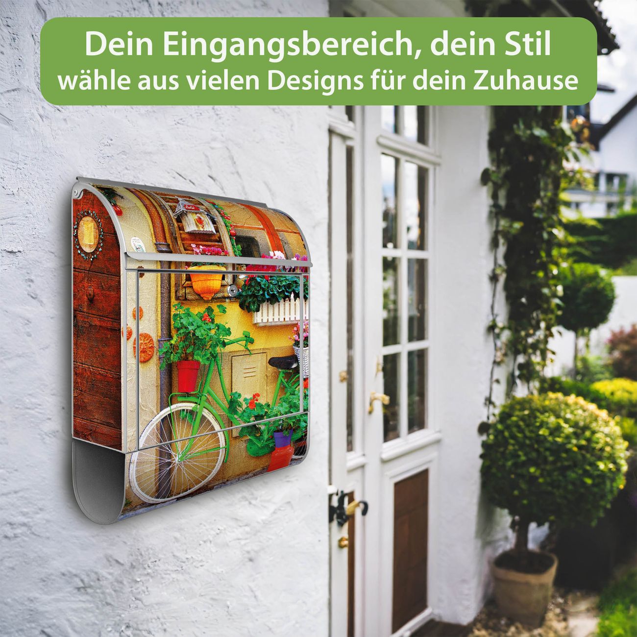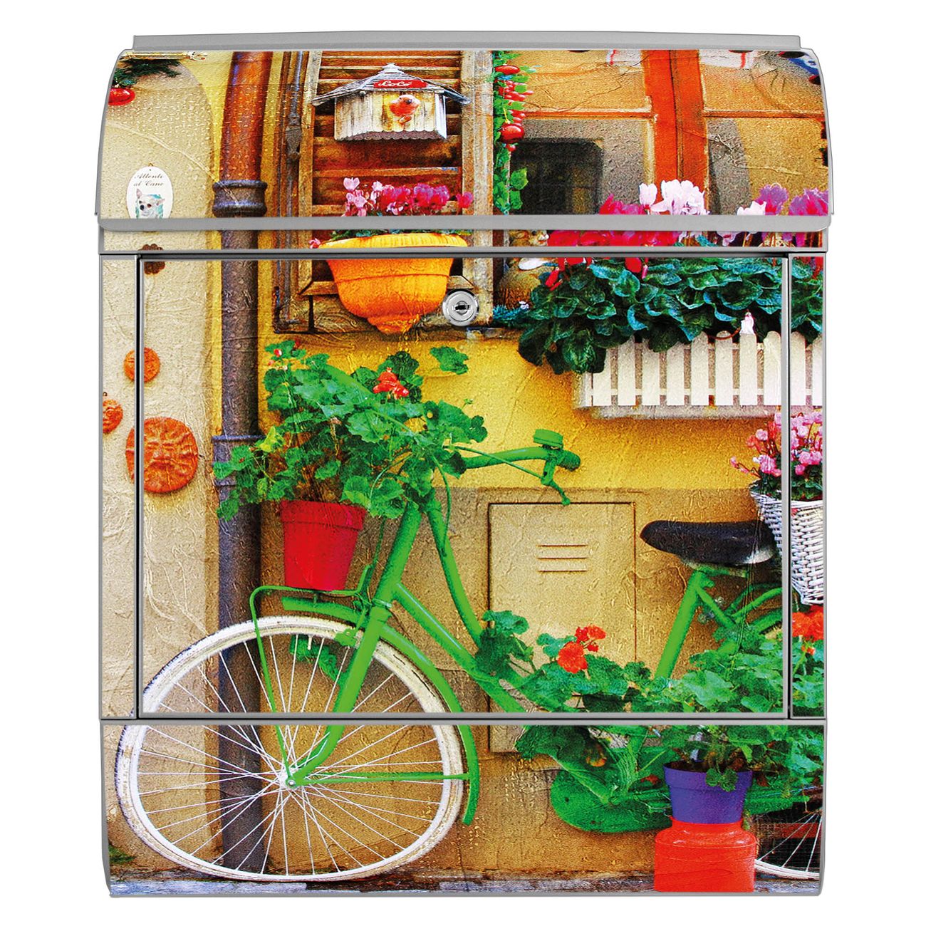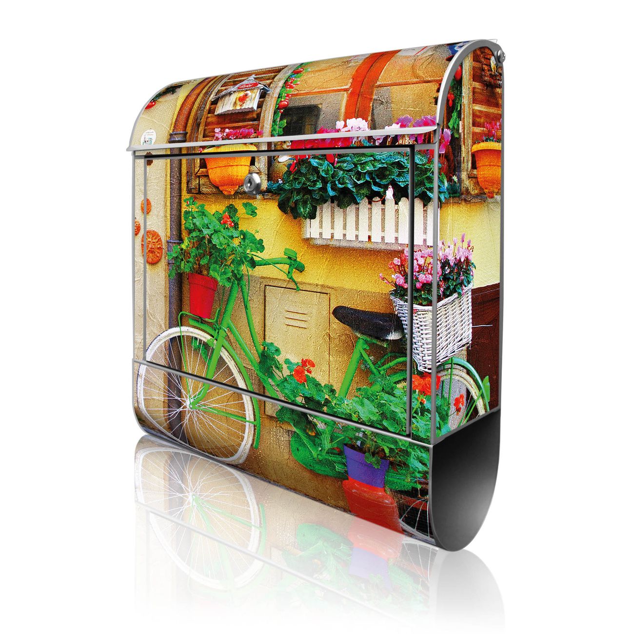 Großer Stahl Briefkasten Motiv Grünes Fahrrad