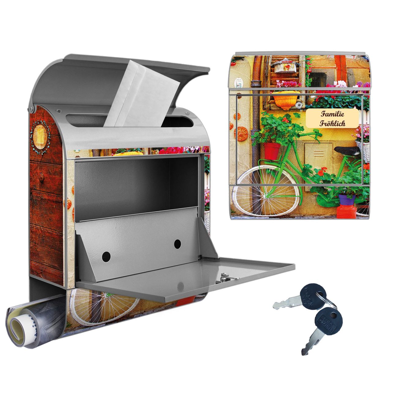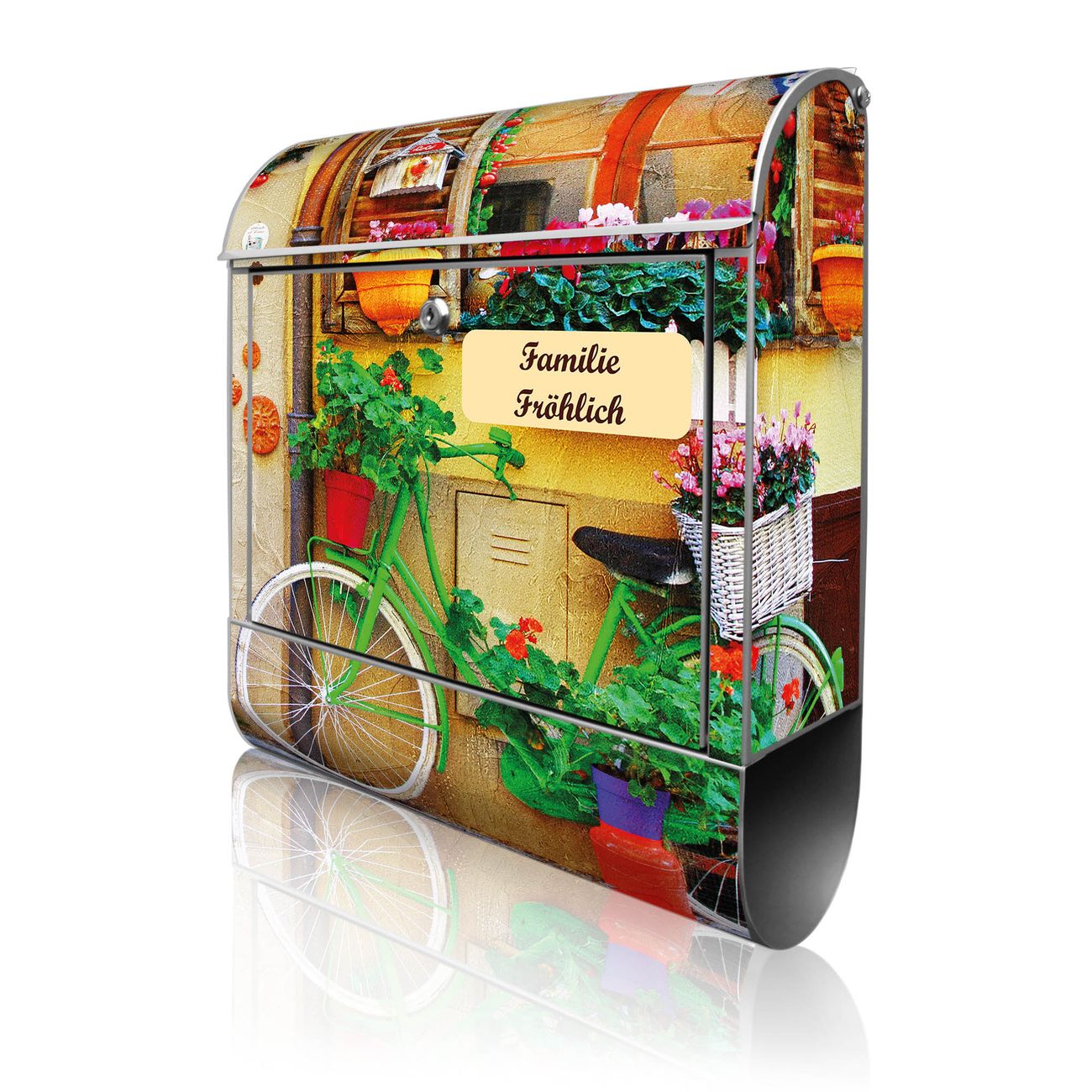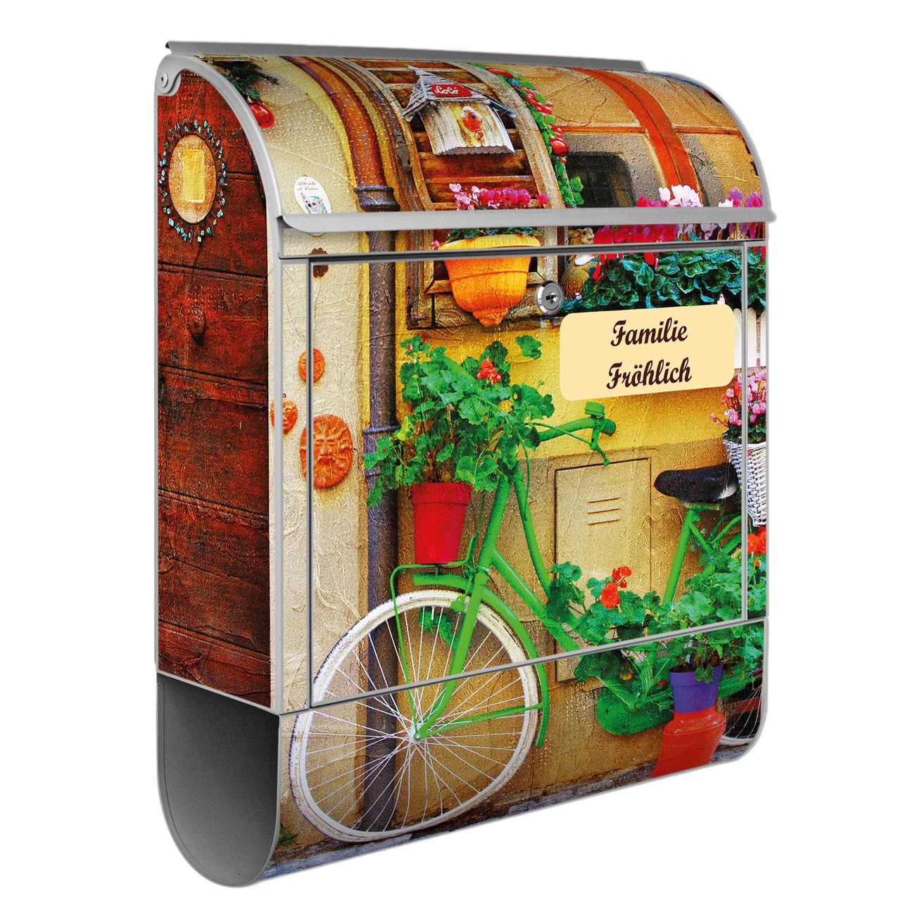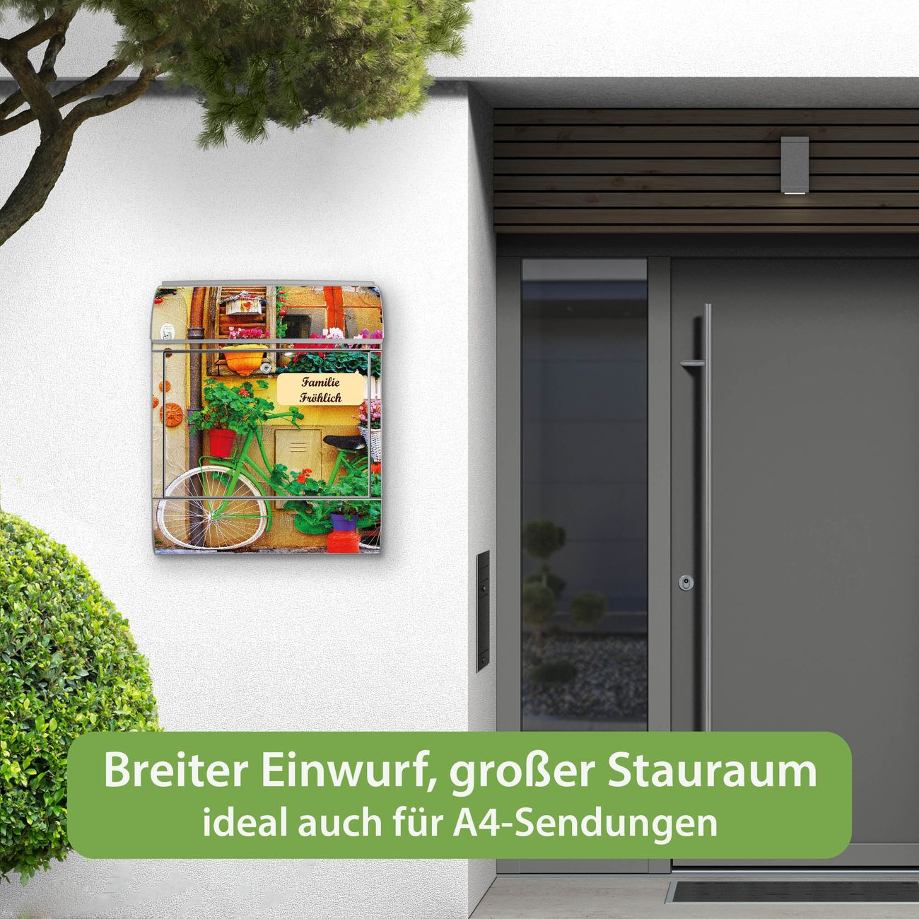 Großer Stahl Briefkasten Motiv Grünes Fahrrad