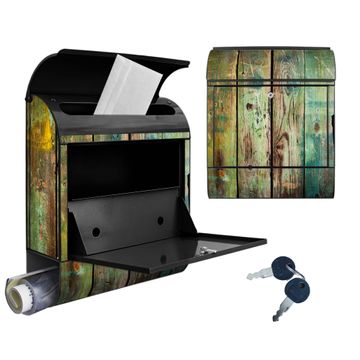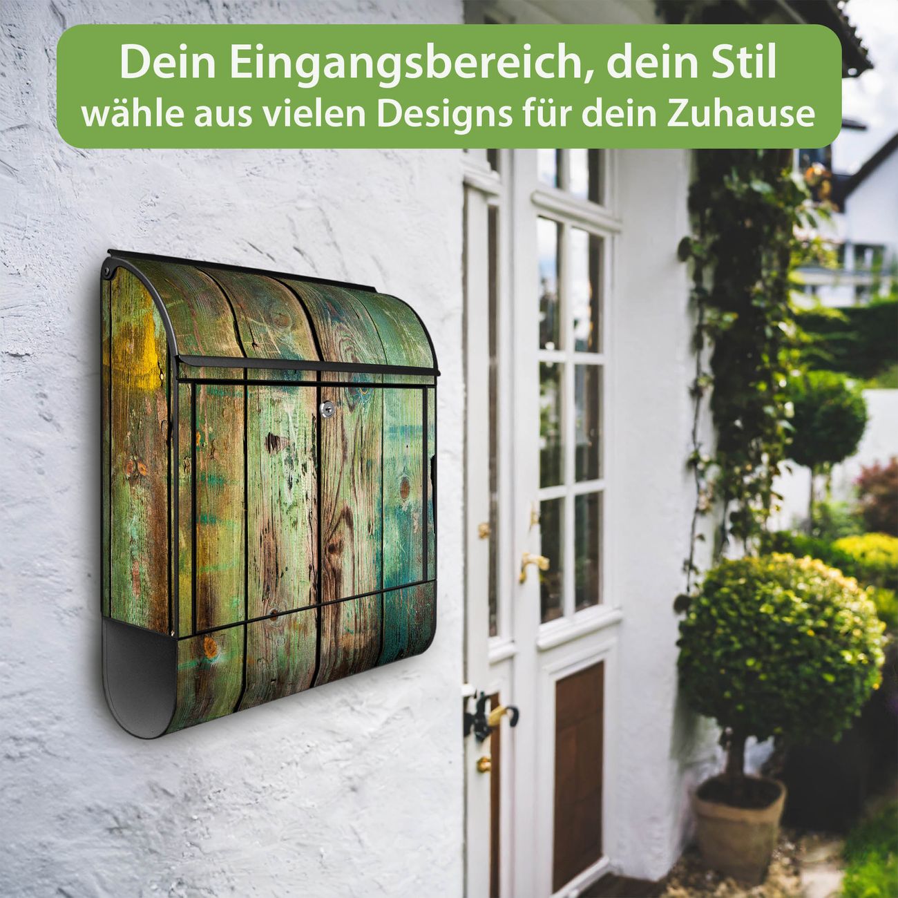 Großer Stahl Briefkasten Motiv Grünes Holz