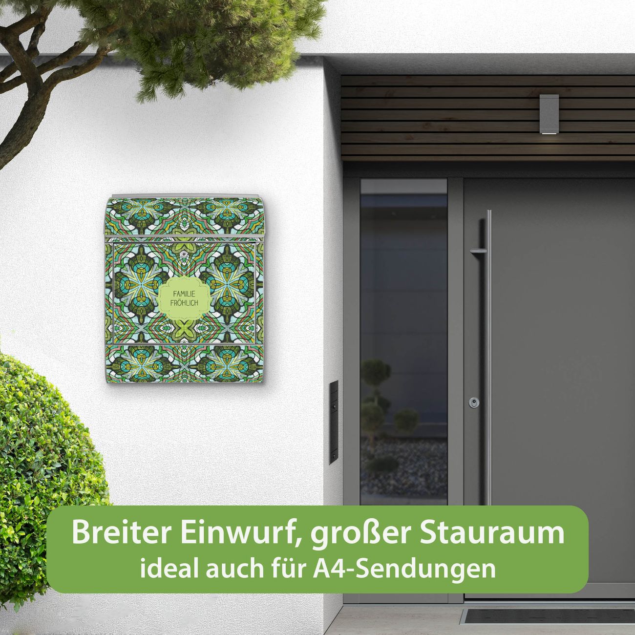 Großer Stahl Briefkasten Motiv Grünes Muster