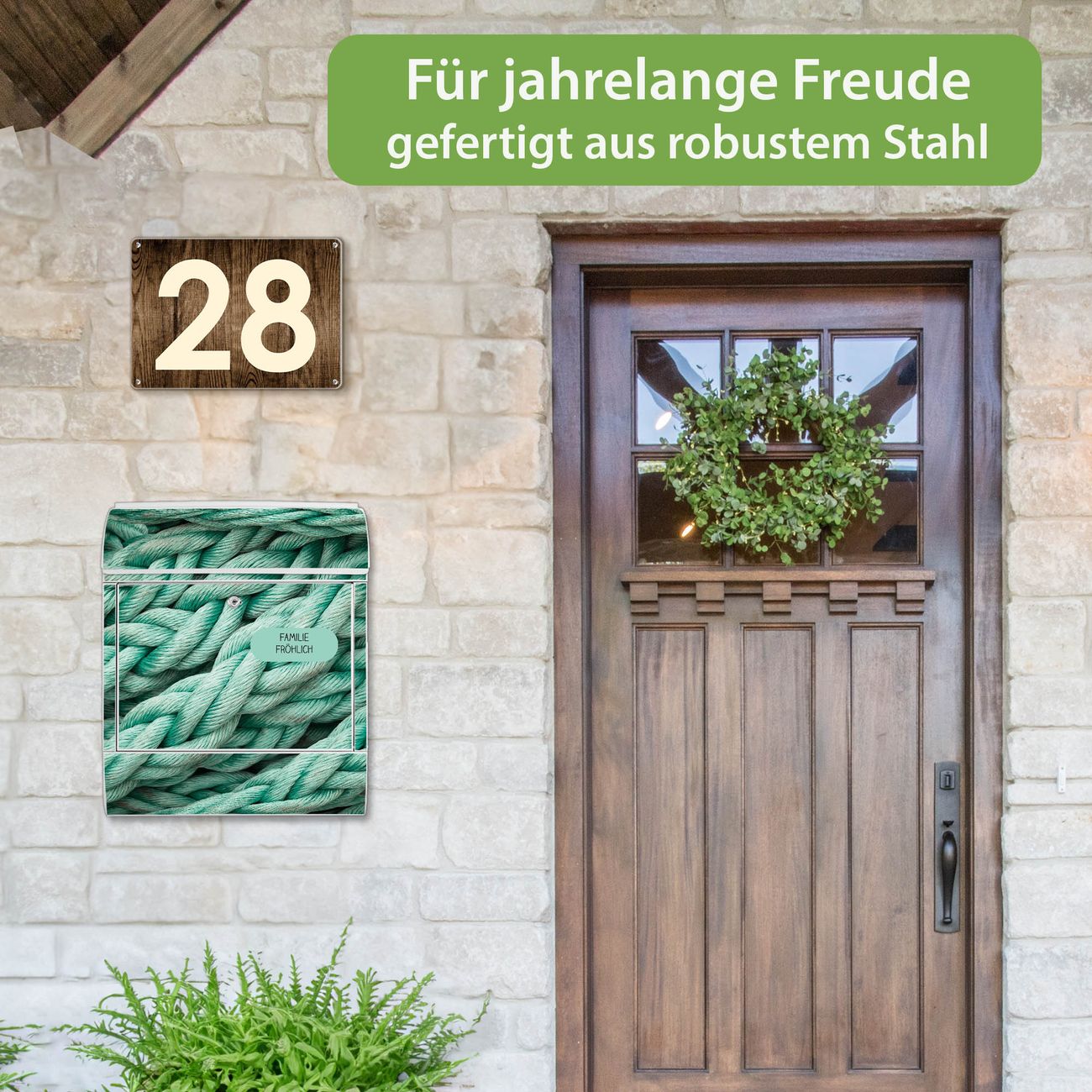 Großer Stahl Briefkasten Motiv Grünes Tau