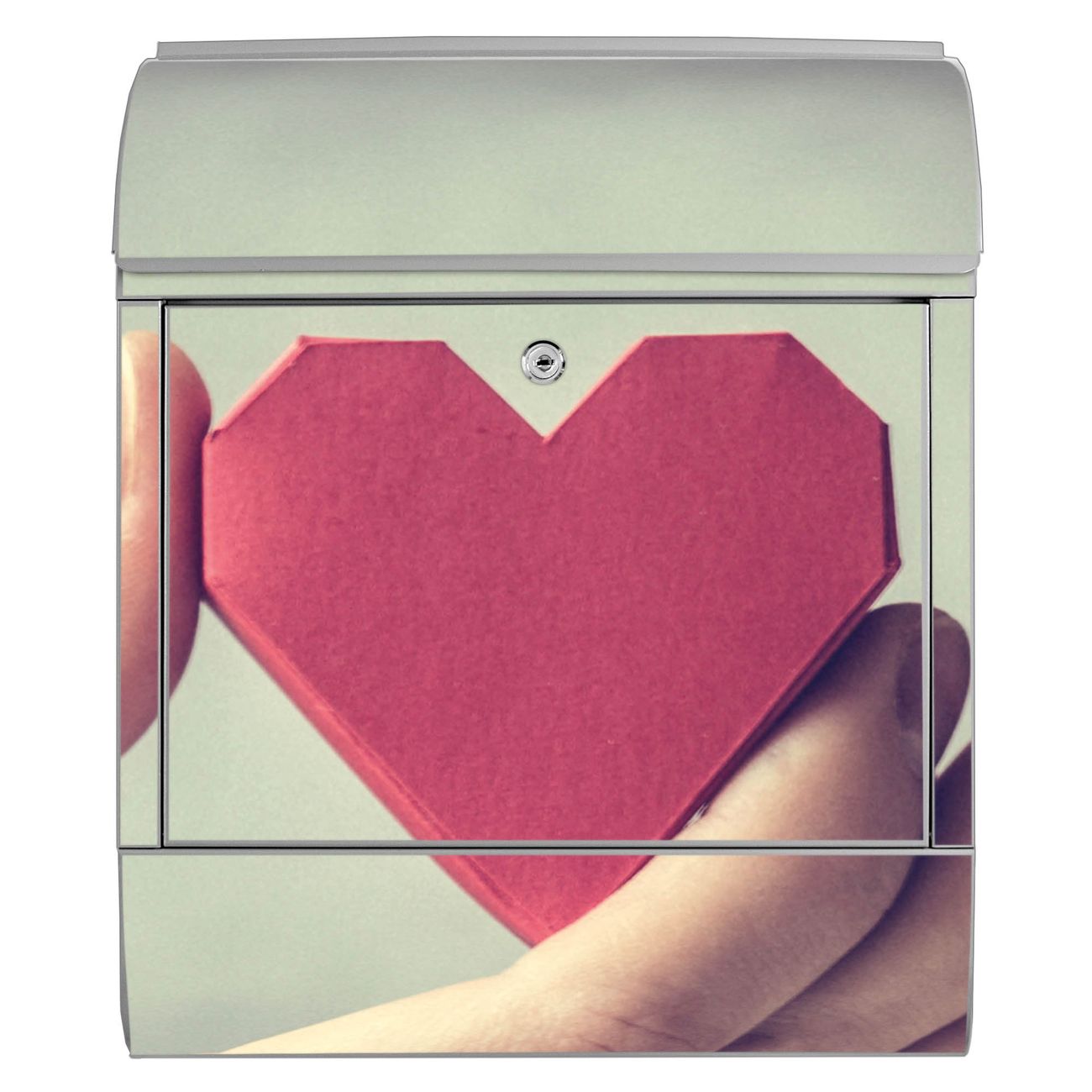 Großer Stahl Briefkasten Motiv Hand Aufs Herz