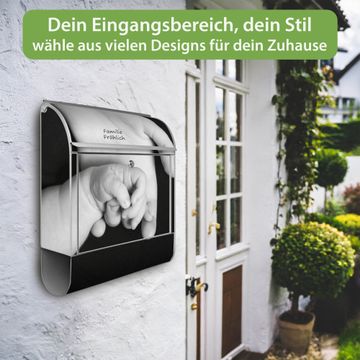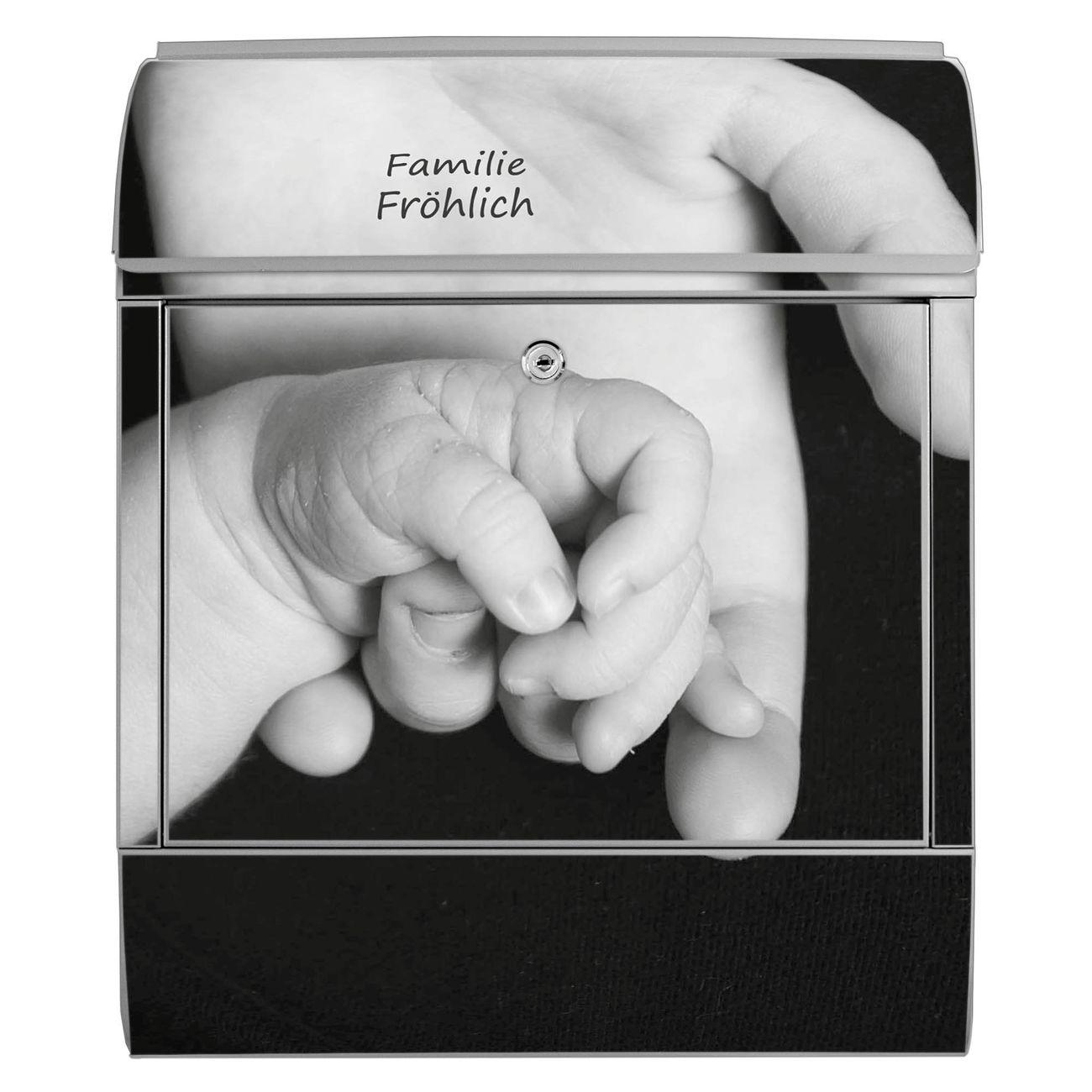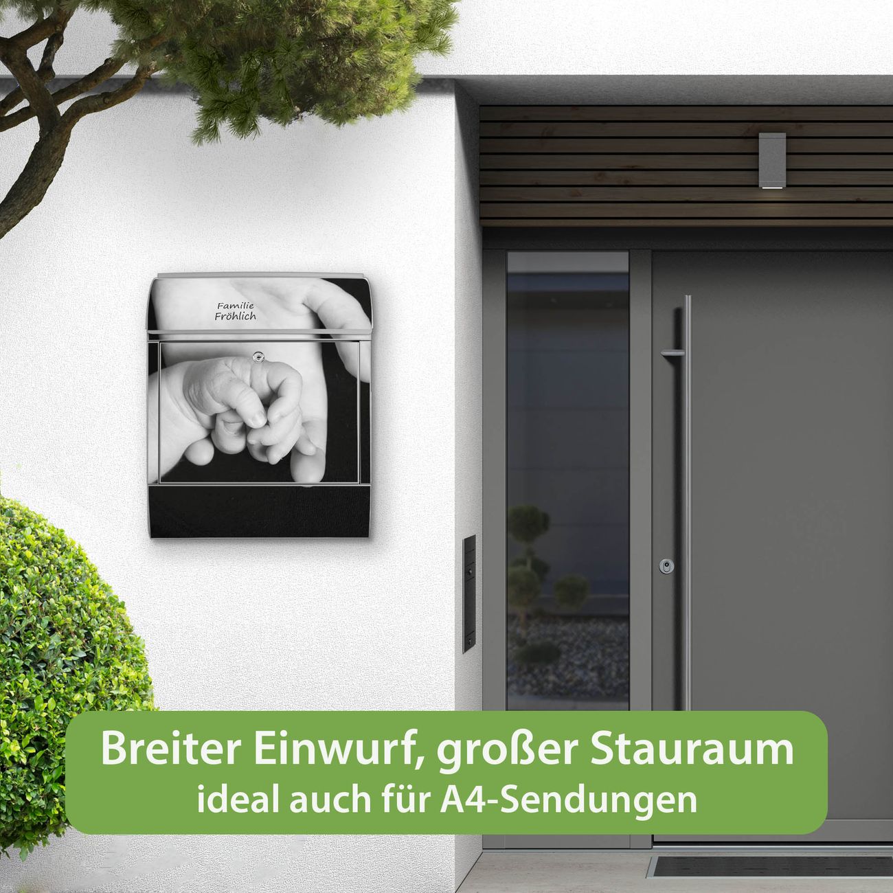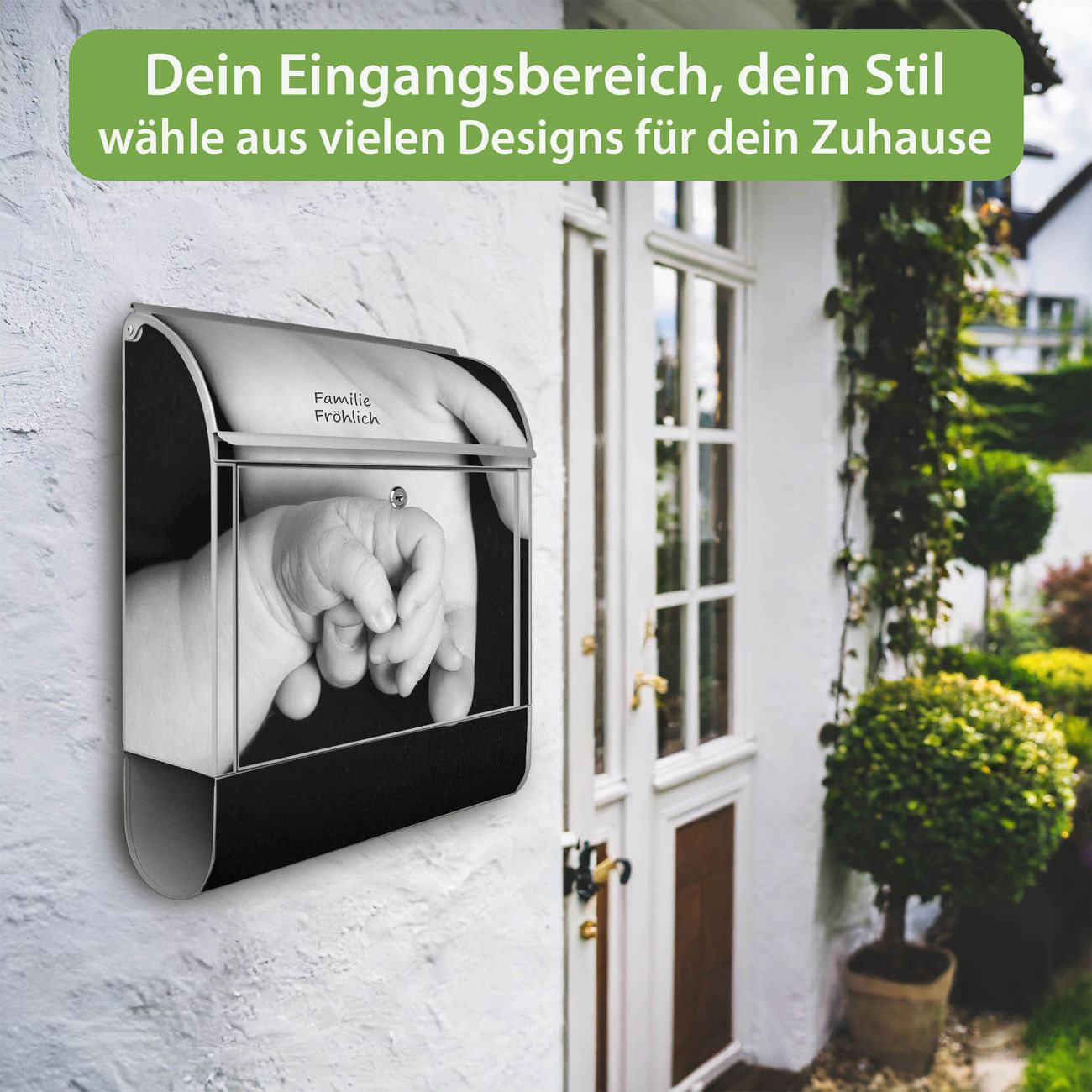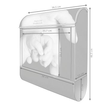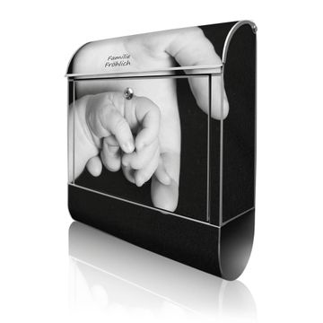DESIGN: Der Postkasten mit Motiv Motiv Hands hat ein sehr ansprechendes und ausgefallenes Design, damit entlocken Sie Ihren Nachbarn und dem Postboten ein Lächeln. Heben Sie Sich von der tristen grauen Masse ab, ohne auf Funktionalität zu verzichten. DETAILS: Der Postkasten besteht aus pulverbeschichtetem Stahl. Er ist 38x46x12,5cm groß. Das Motiv besteht aus einer wetter- und UV-resistenten Folie, die mit einem Schutzlaminat überzogen ist, sodass der Briefkasten zusätzlich vor Kratzern geschützt ist. Der Briefkasten wird mit Montagematerial, zusätzlich zwei Schlüssel sowie einer Bohrschablone geliefert. NUTZEN: Sie können diesen Briefkasten sowohl als Wandbriefkasten montieren oder einen passenden Ständer kaufen und als Standbriefkasten einbetonieren. Die Größe bietet genügend Platz für Sendungen aller Art, der Einwurf fasst auch größere A4 Sendungen. BANJADO: Ihr Briefkasten wird in Sachsen in einer kleinen Manufaktur von Hand veredelt. Die Motivfolie ist lösungsmittelfrei und schutzlaminiert für einen langen Halt. Wir legen großen Wert auf die Verbindung von Funktionalität und Design. Sie erhalten Handarbeit aus Sachsen.